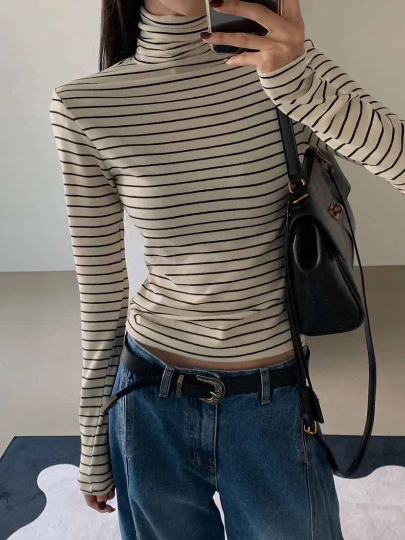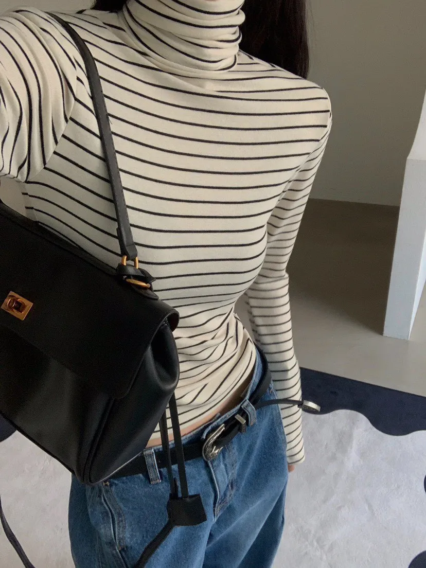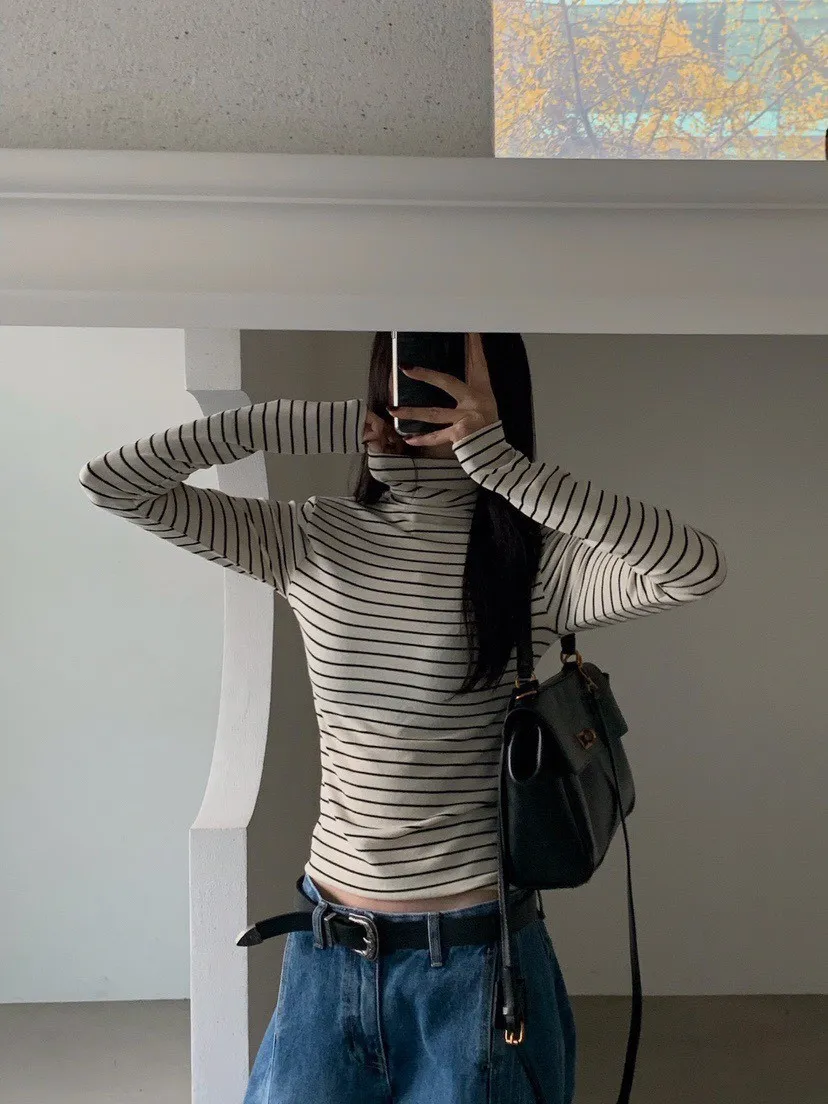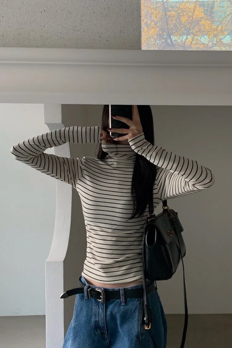 好搭條紋高領上衣