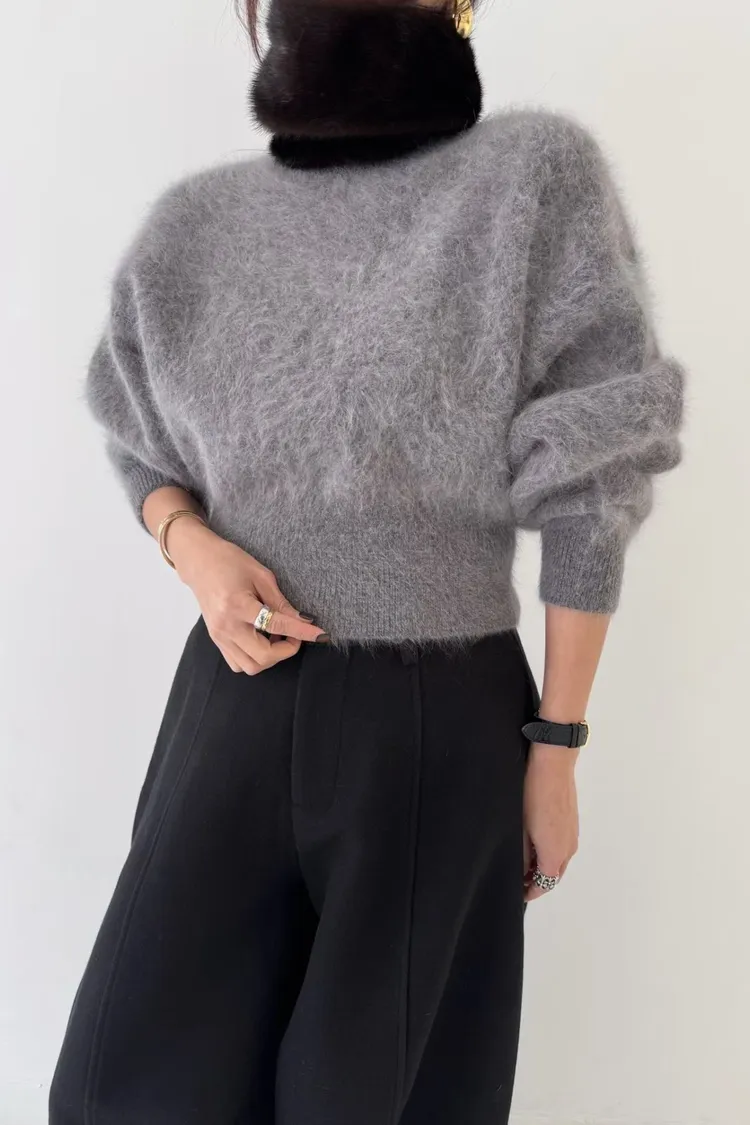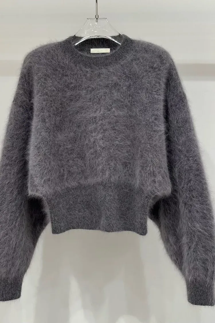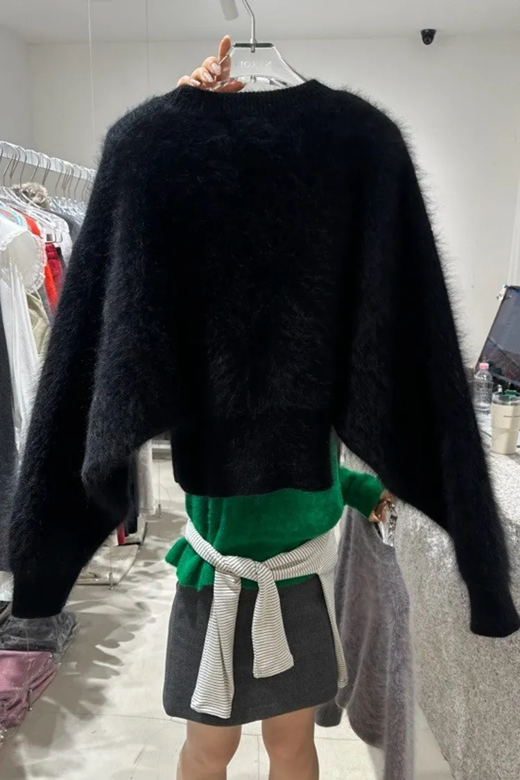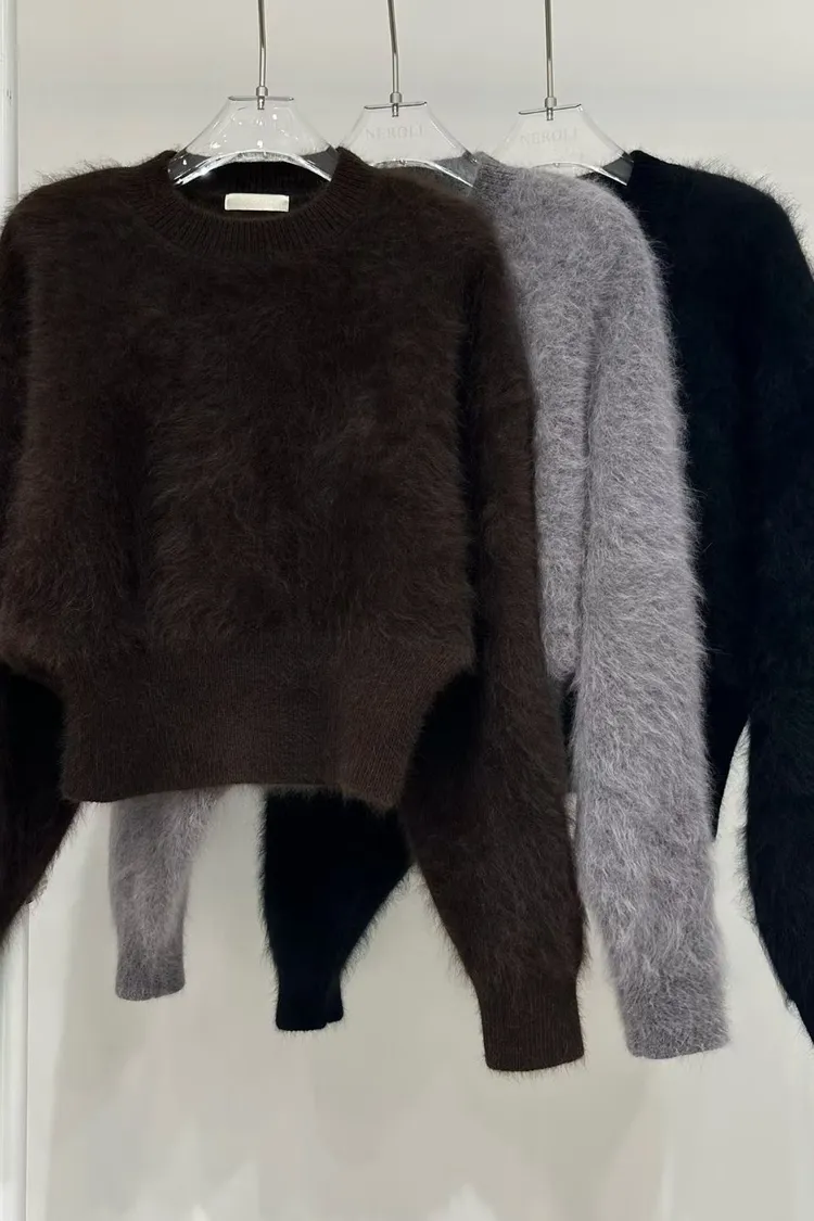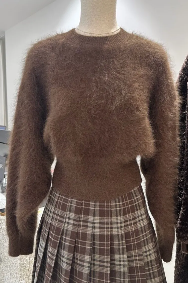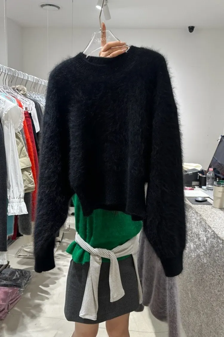 柔霧感兔毛短版上衣