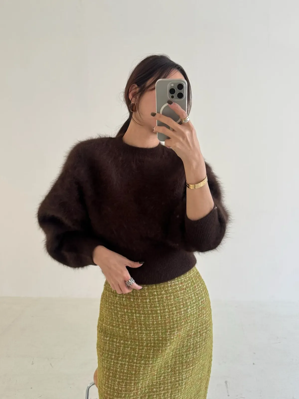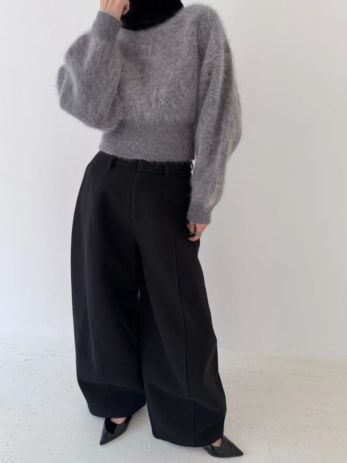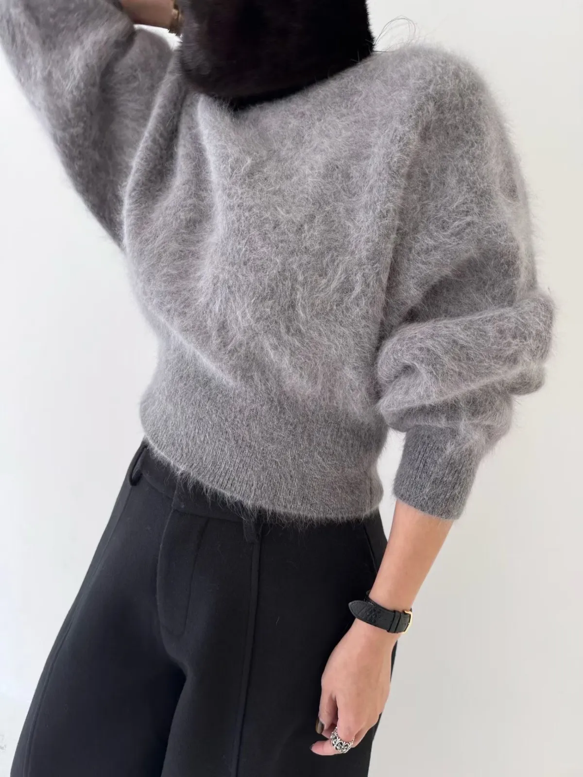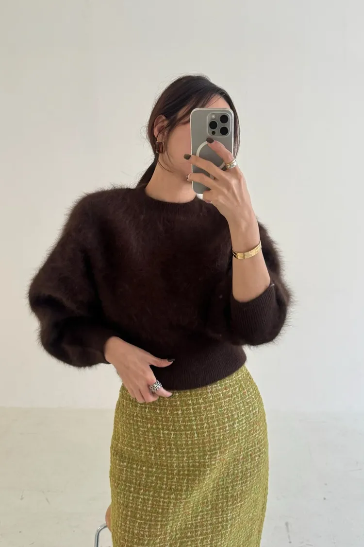 柔霧感兔毛短版上衣