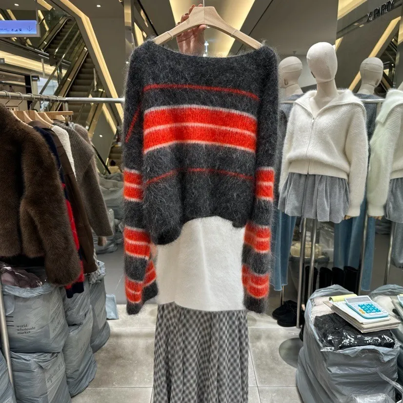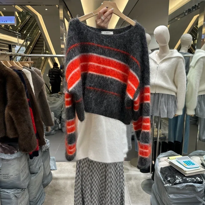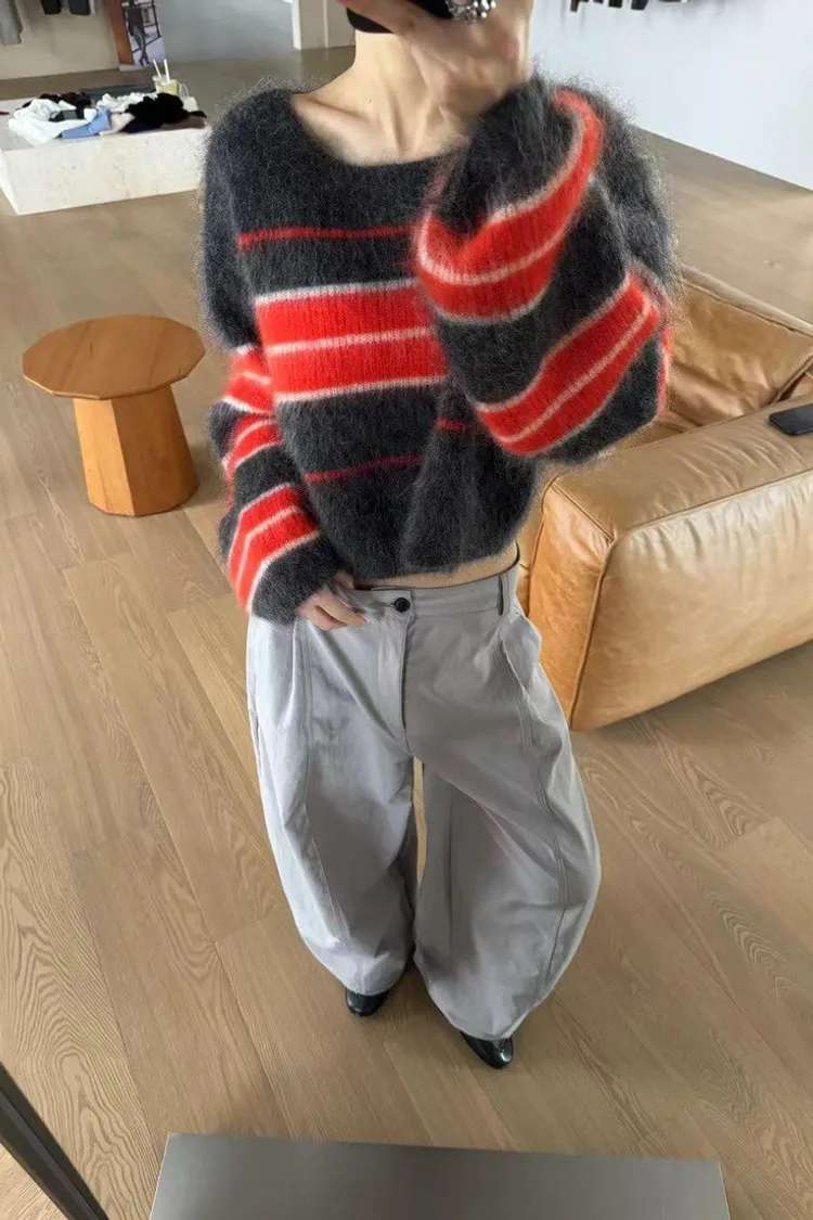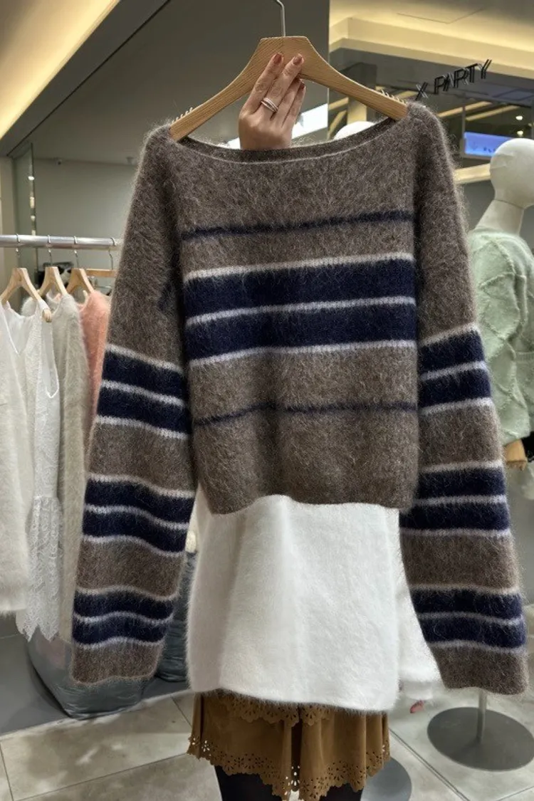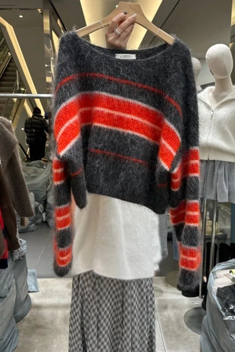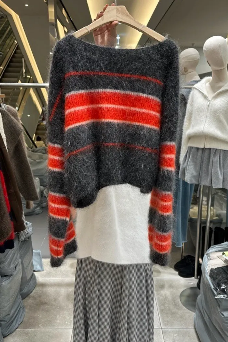 慵懶條紋刷針織上衣