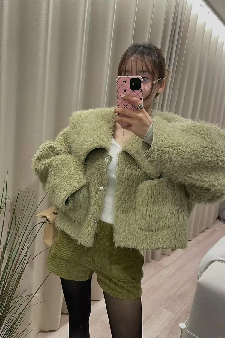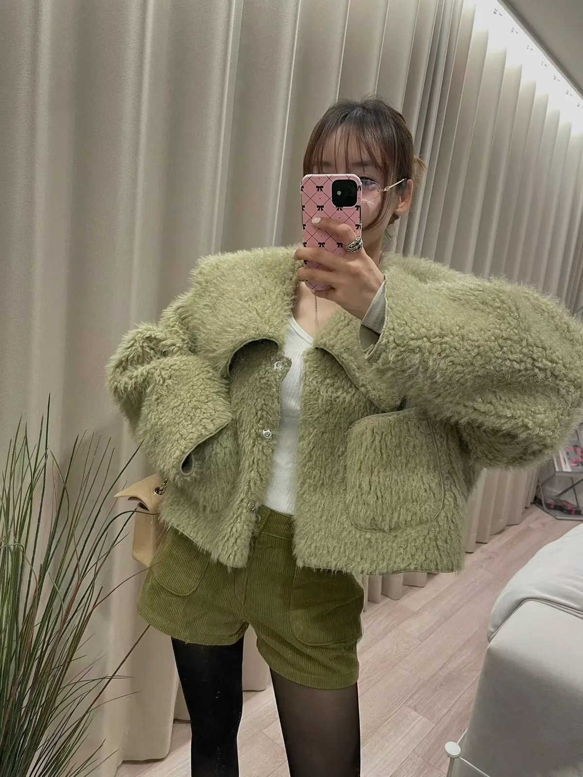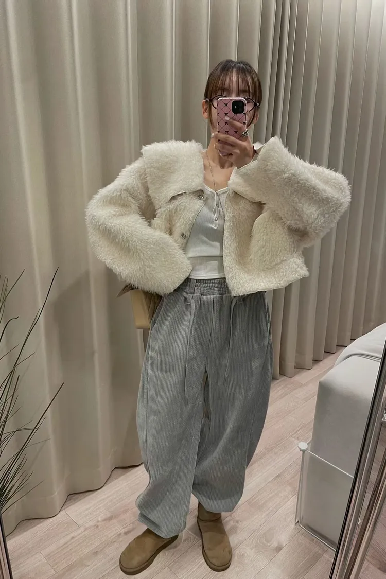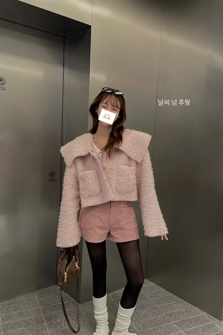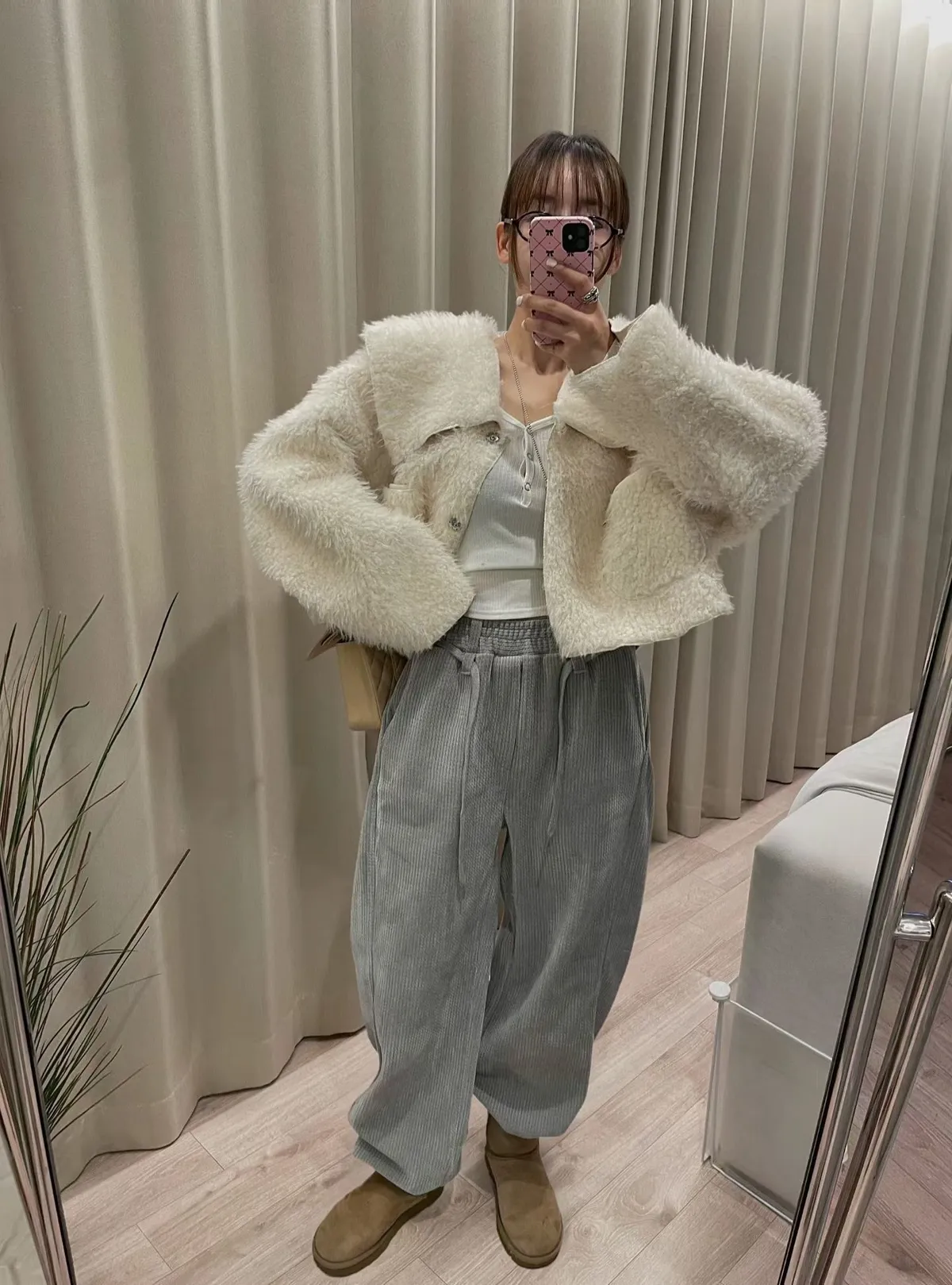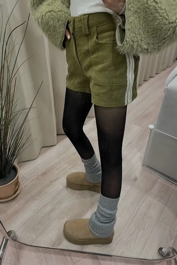 復古甜美側蕾絲拼接燈芯絨顯瘦短褲