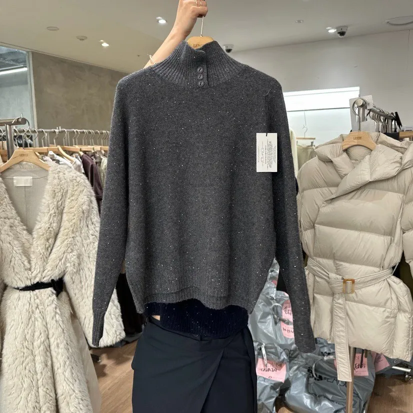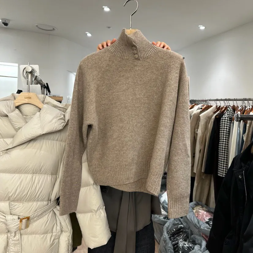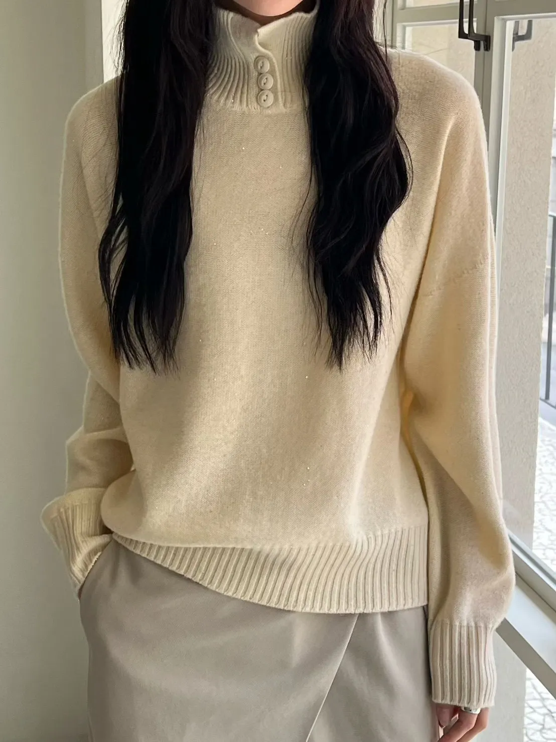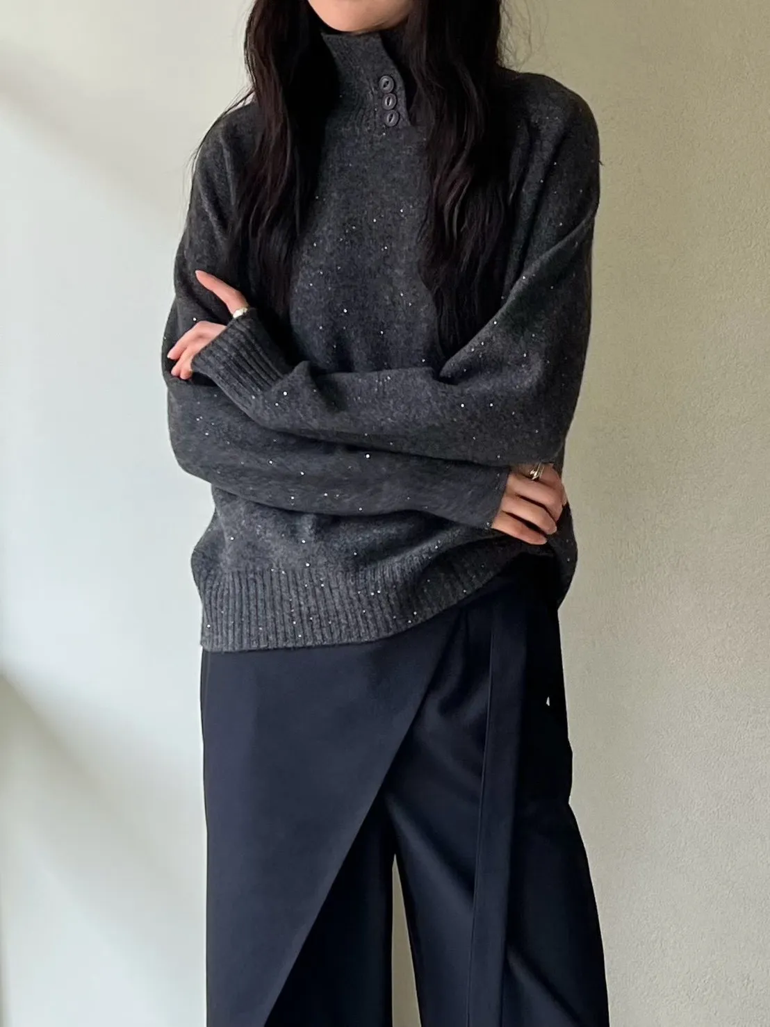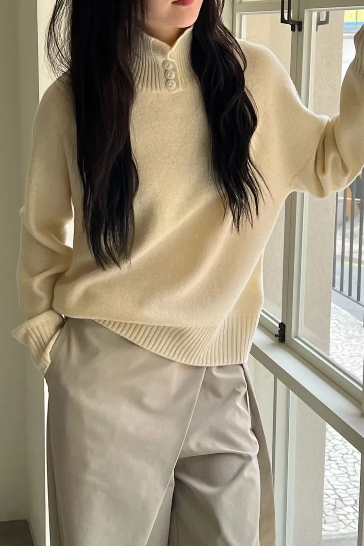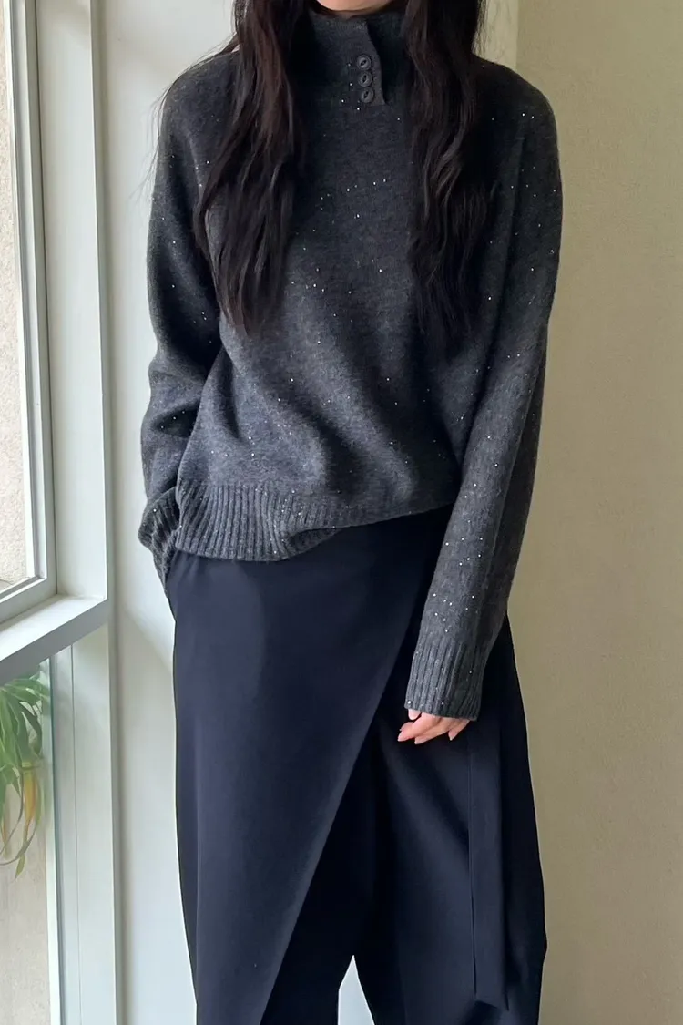領口排釦細閃羊毛上衣