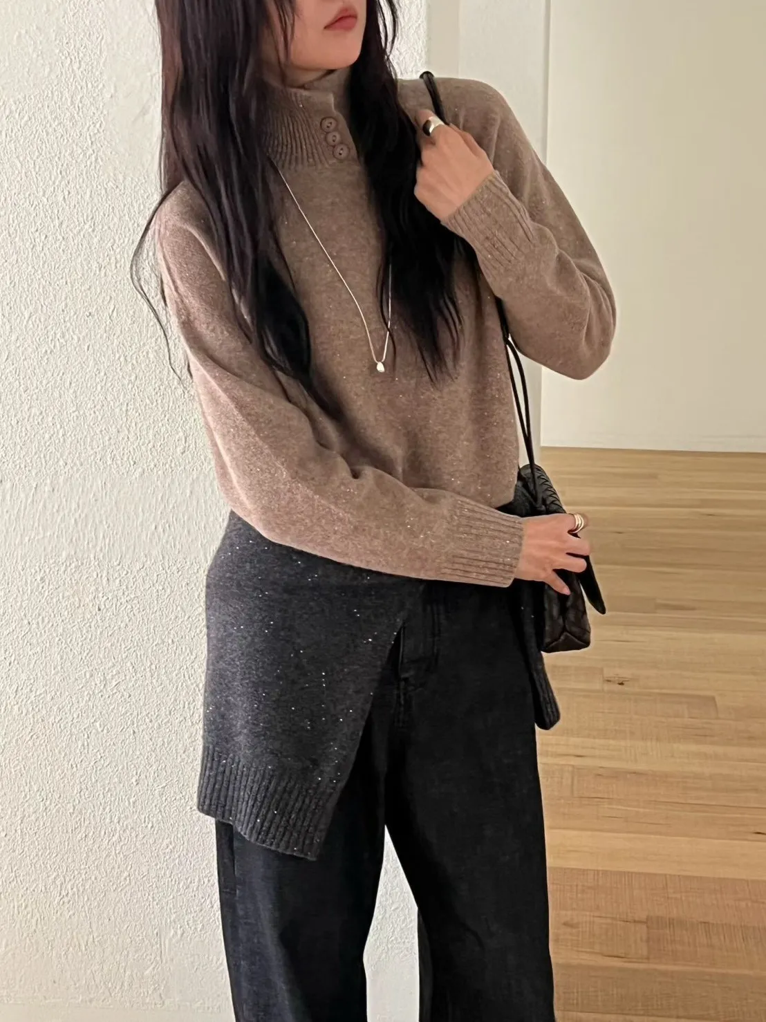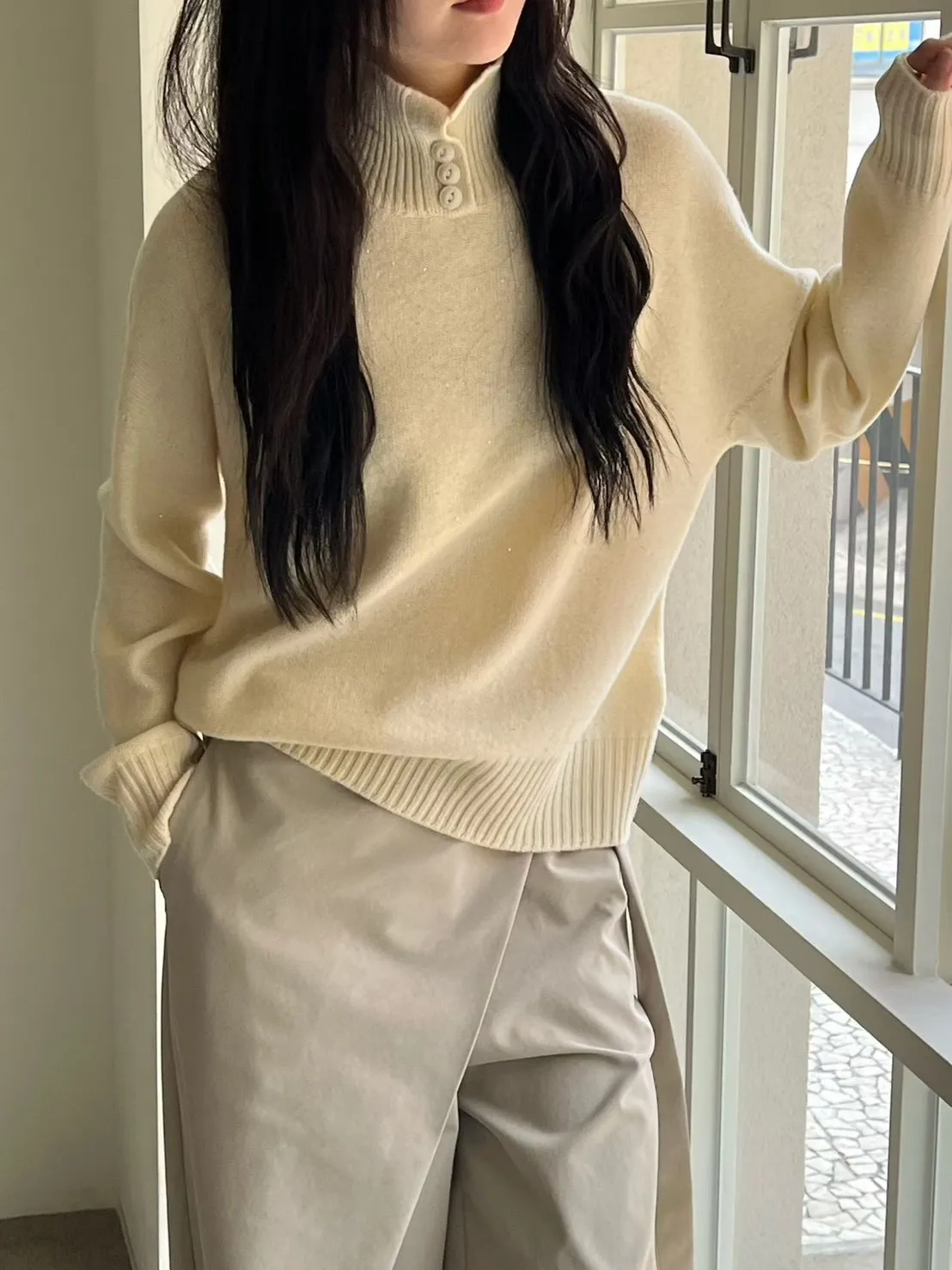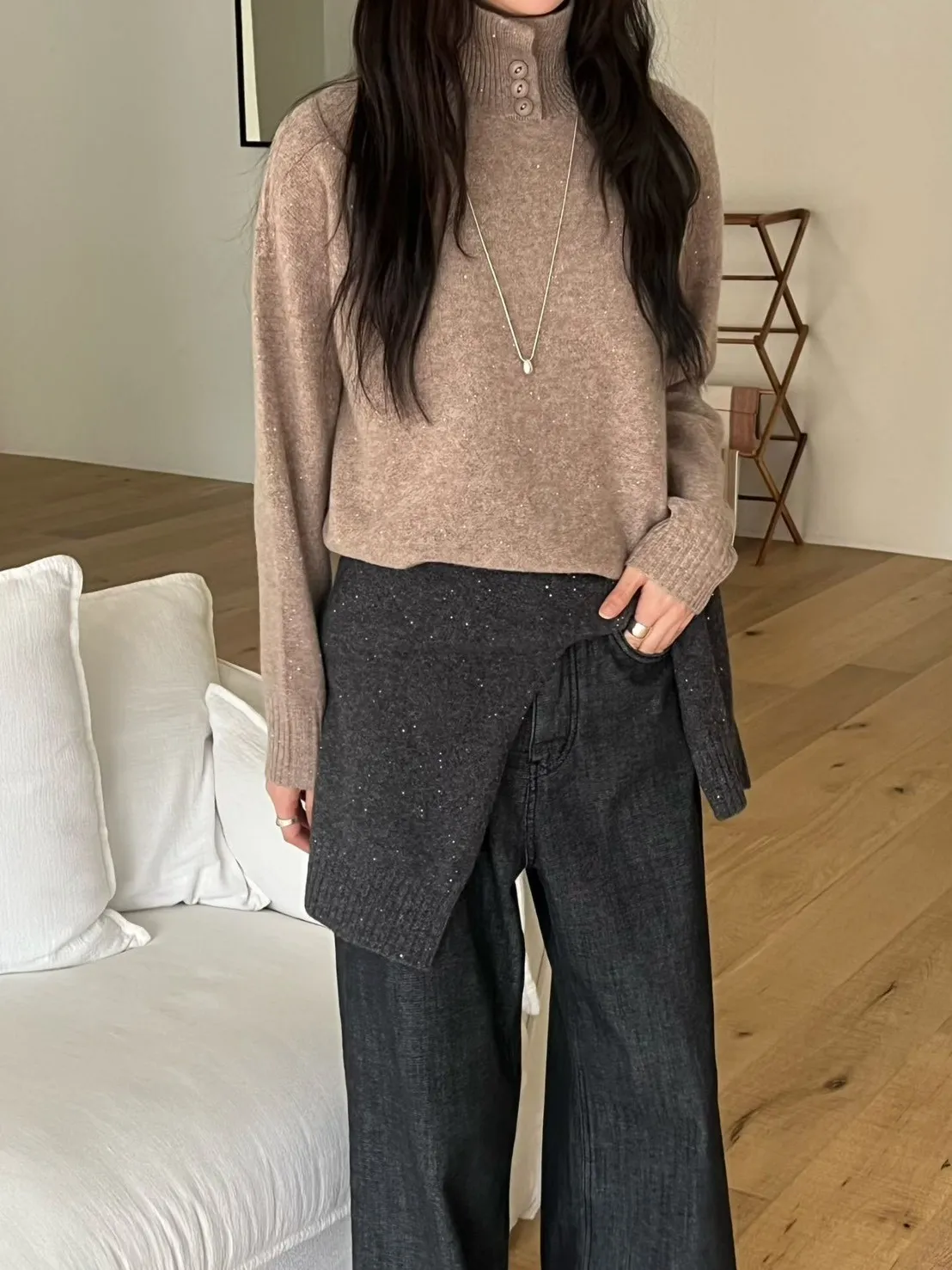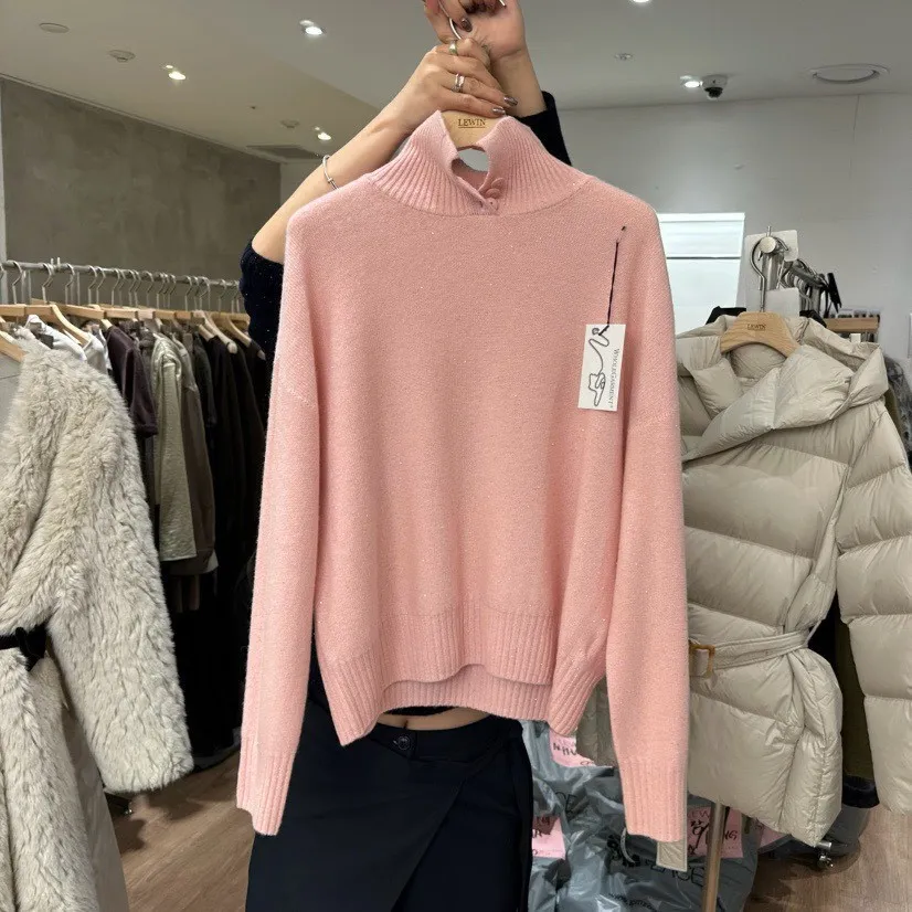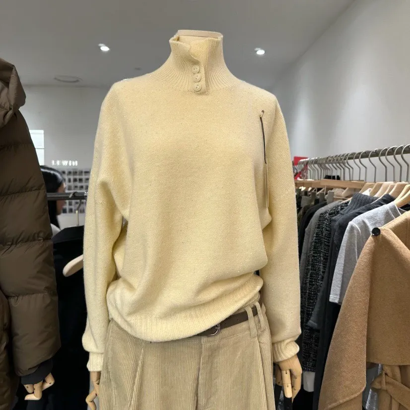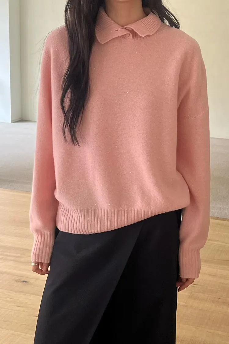 領口排釦細閃羊毛上衣