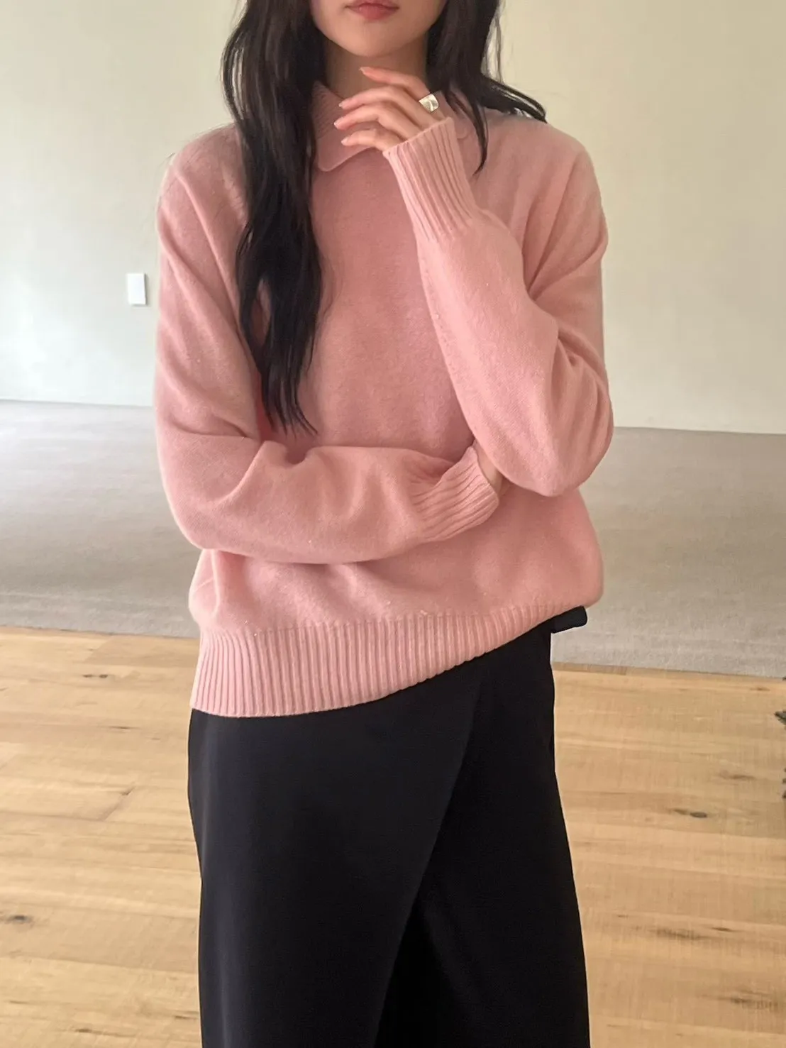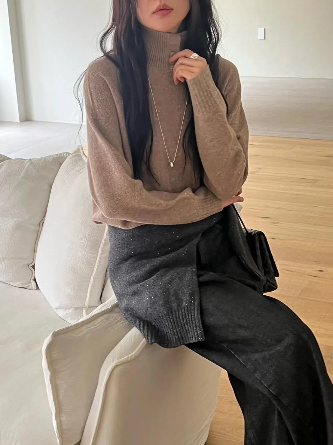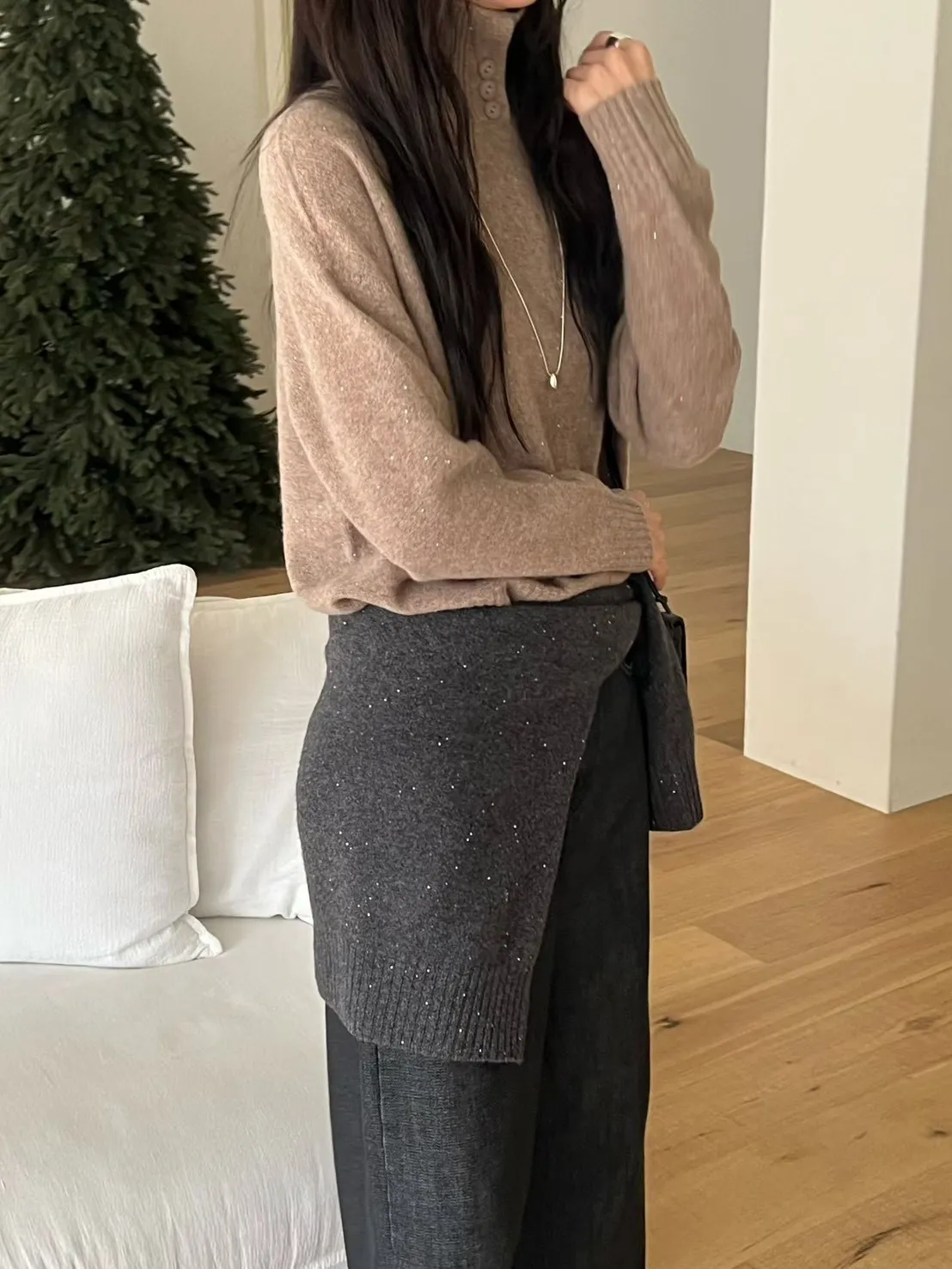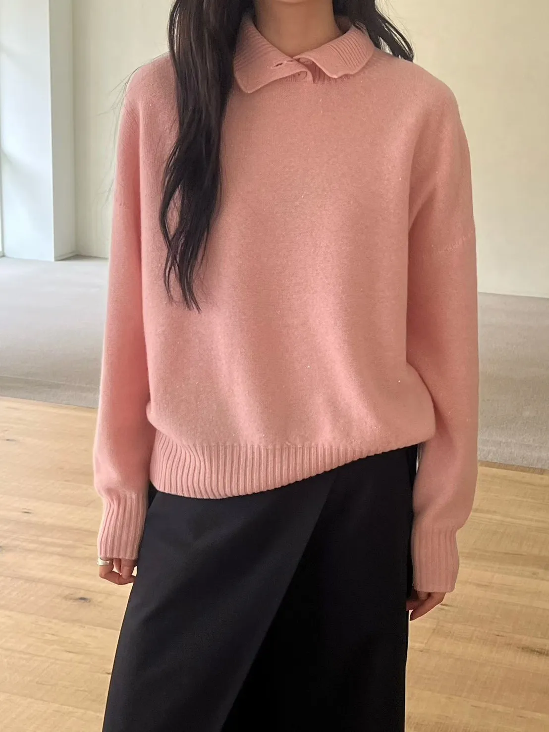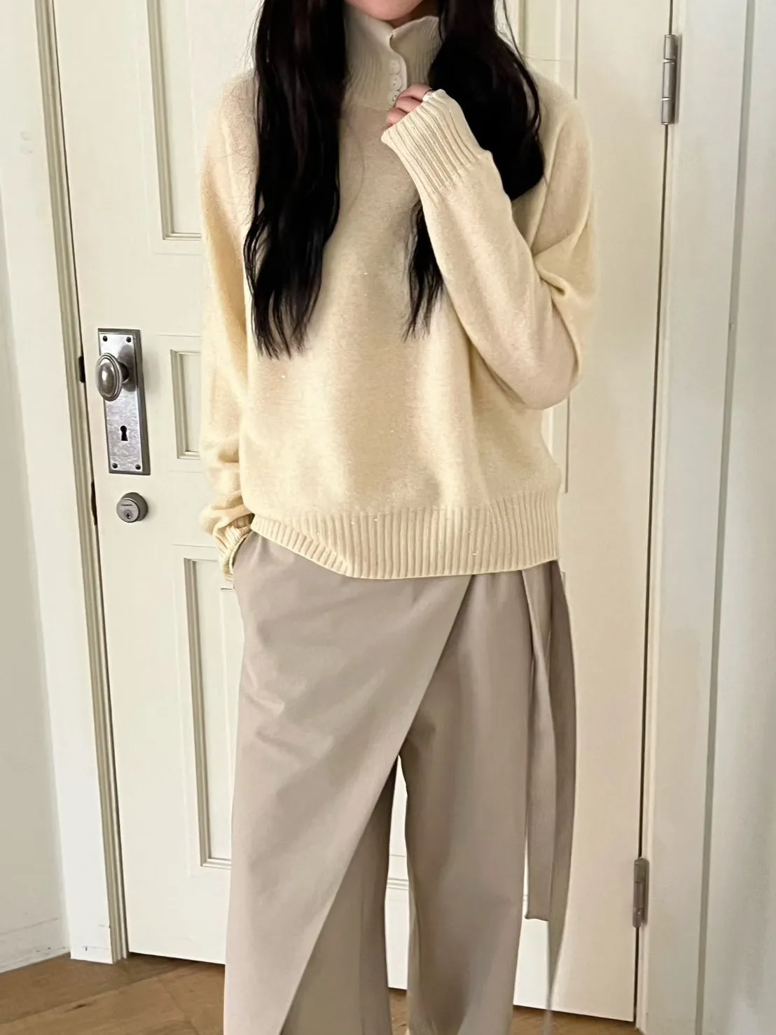 領口排釦細閃羊毛上衣
