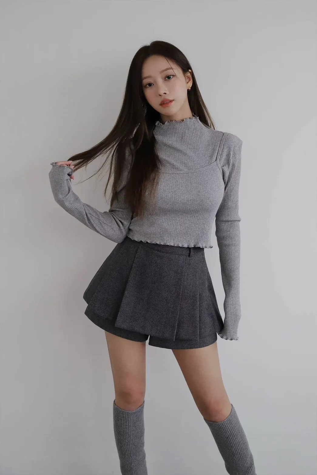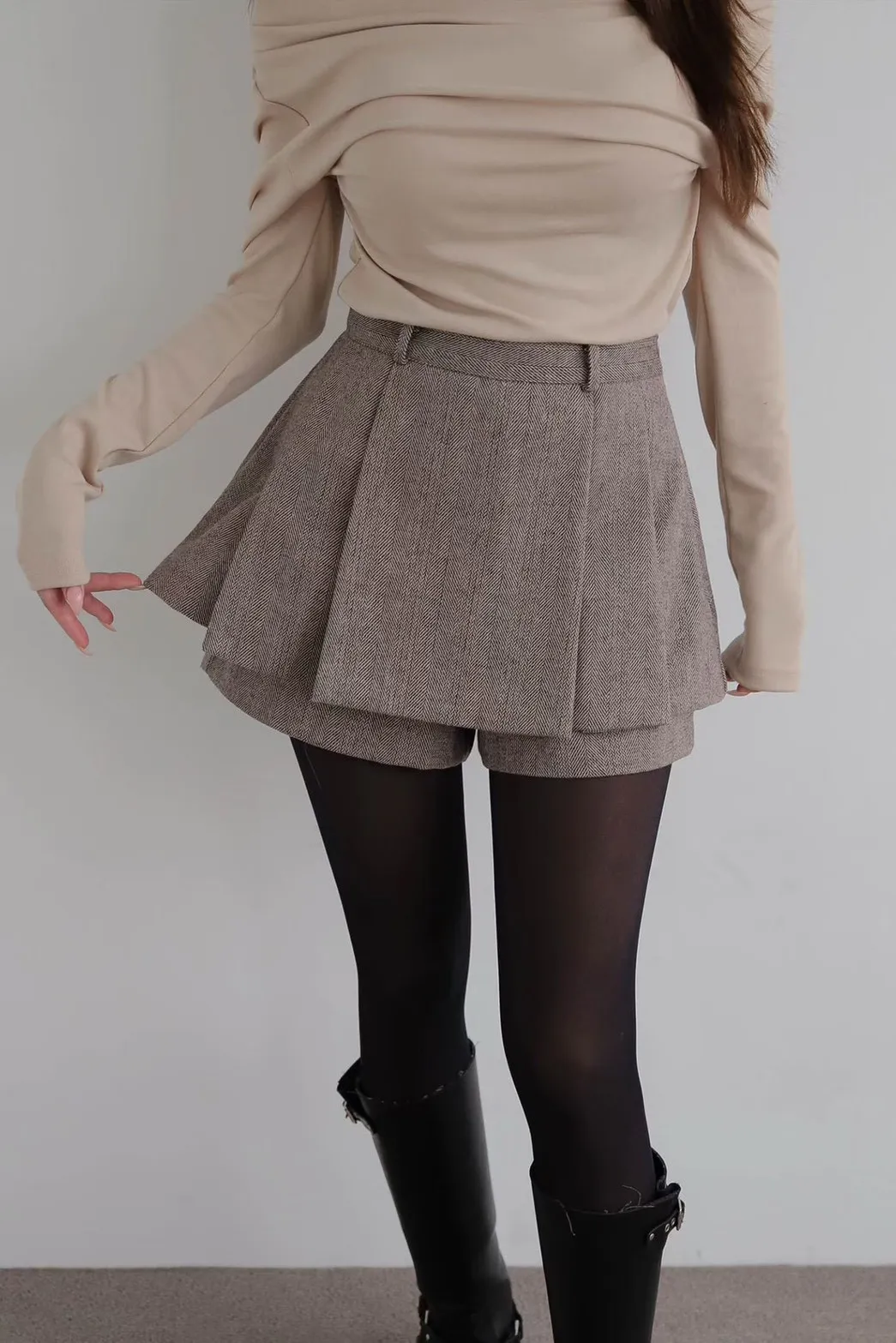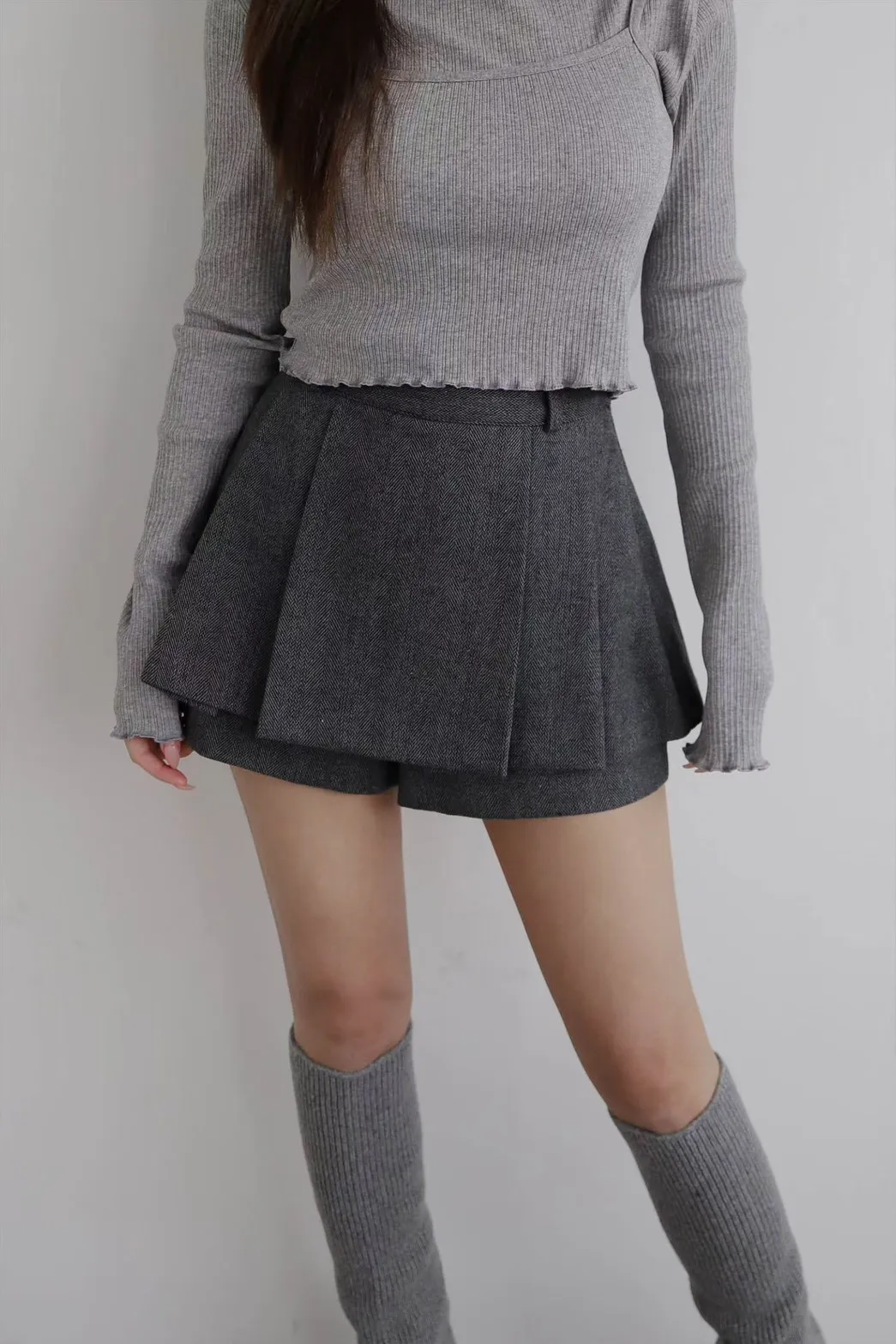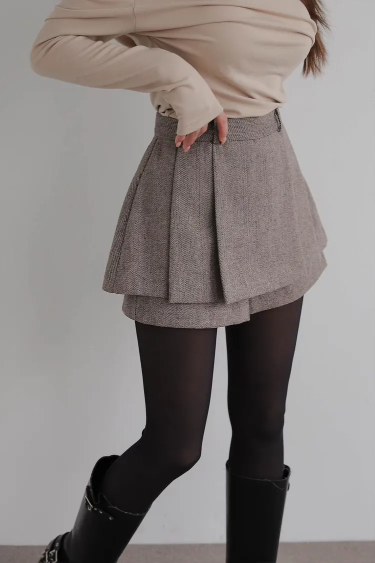 雙層打摺寬褲裙