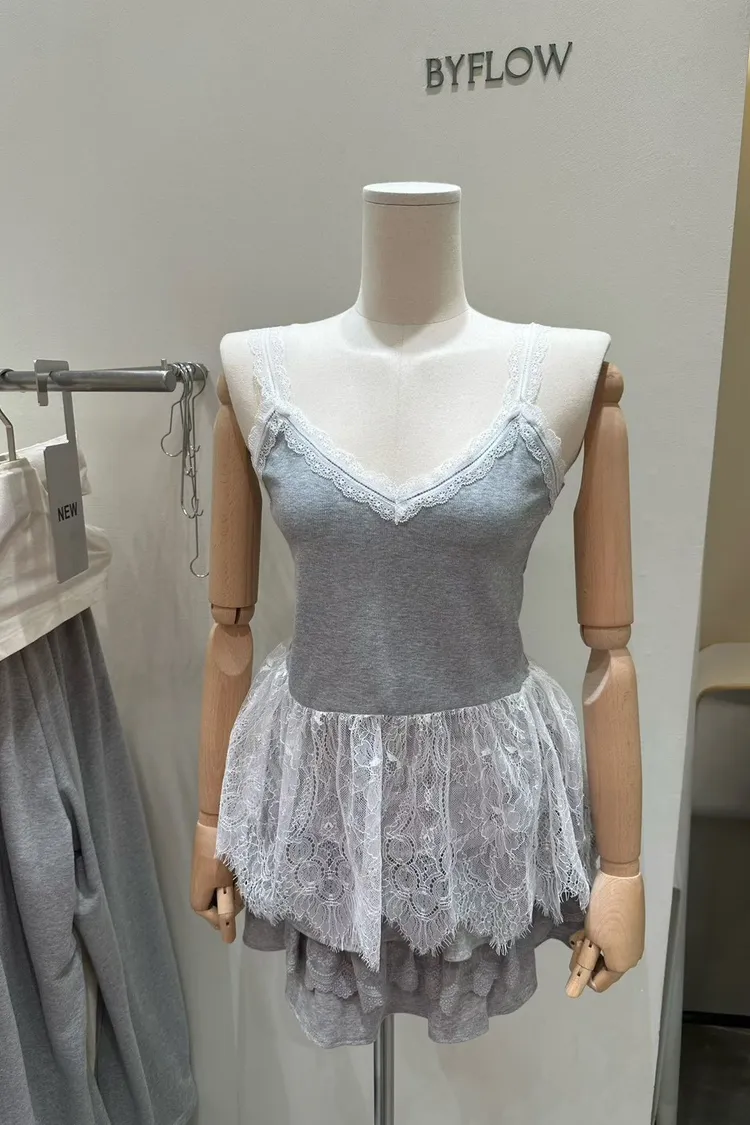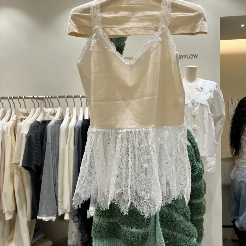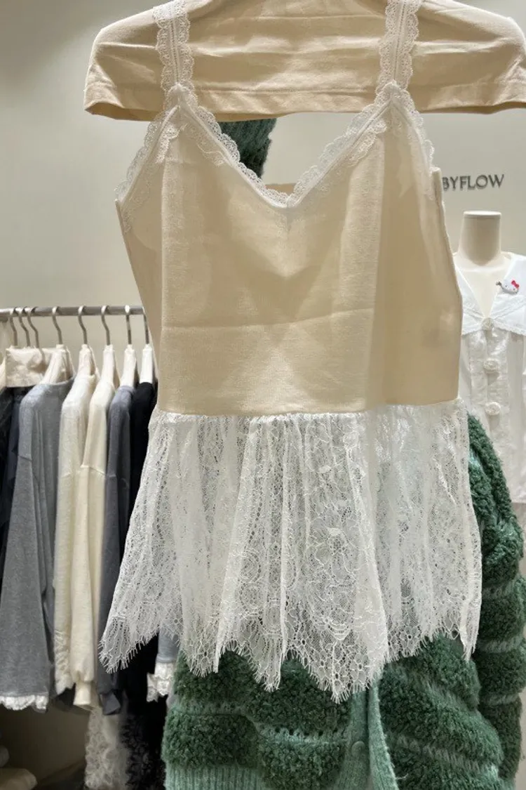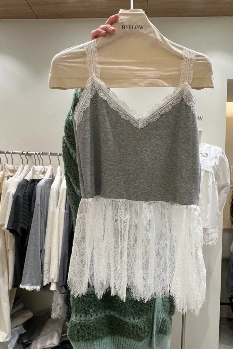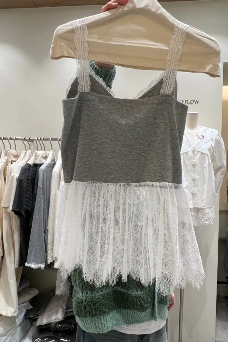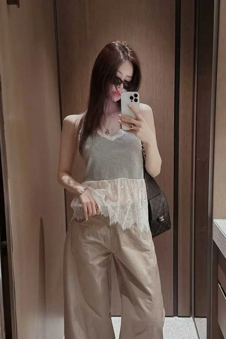 V領蕾絲拼接背心