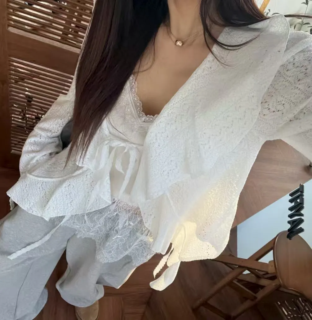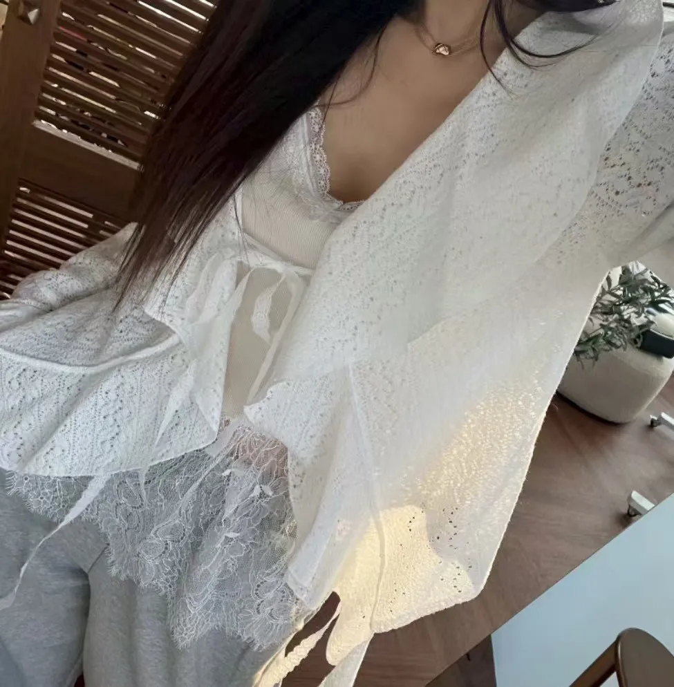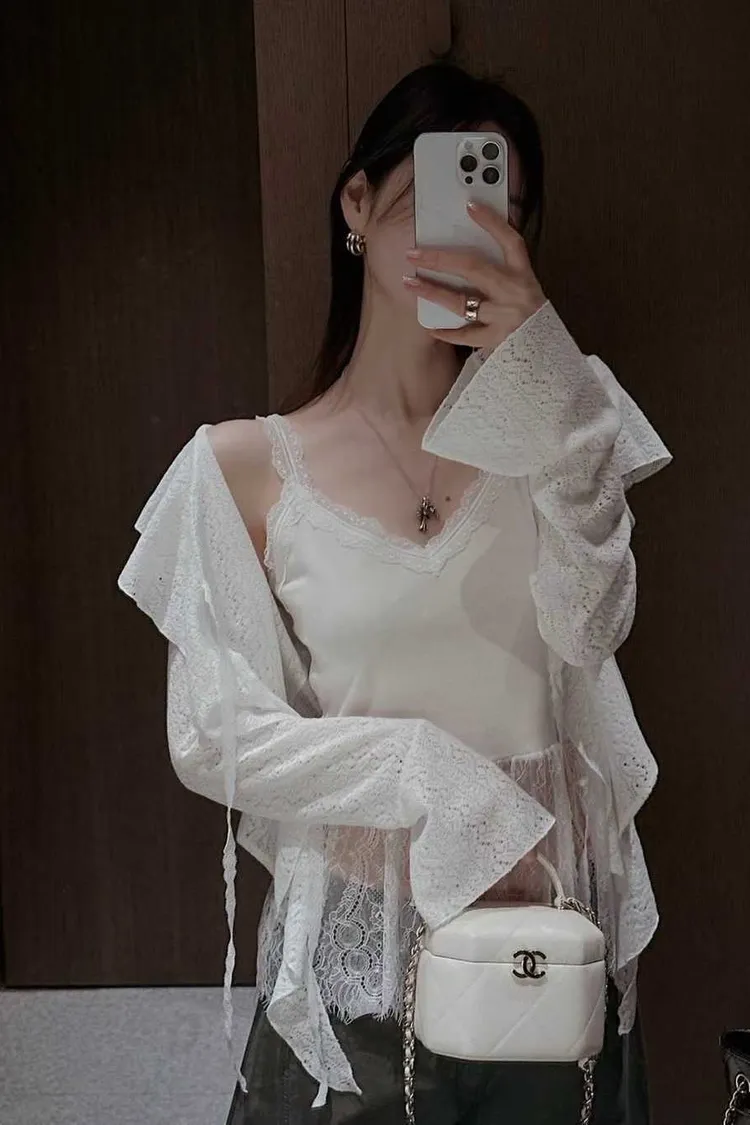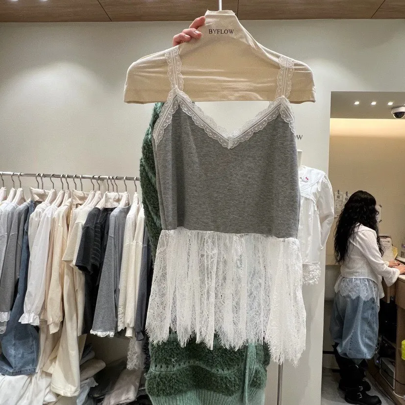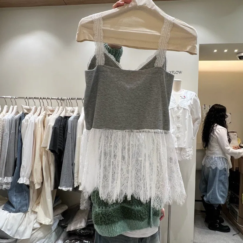 V領蕾絲拼接背心