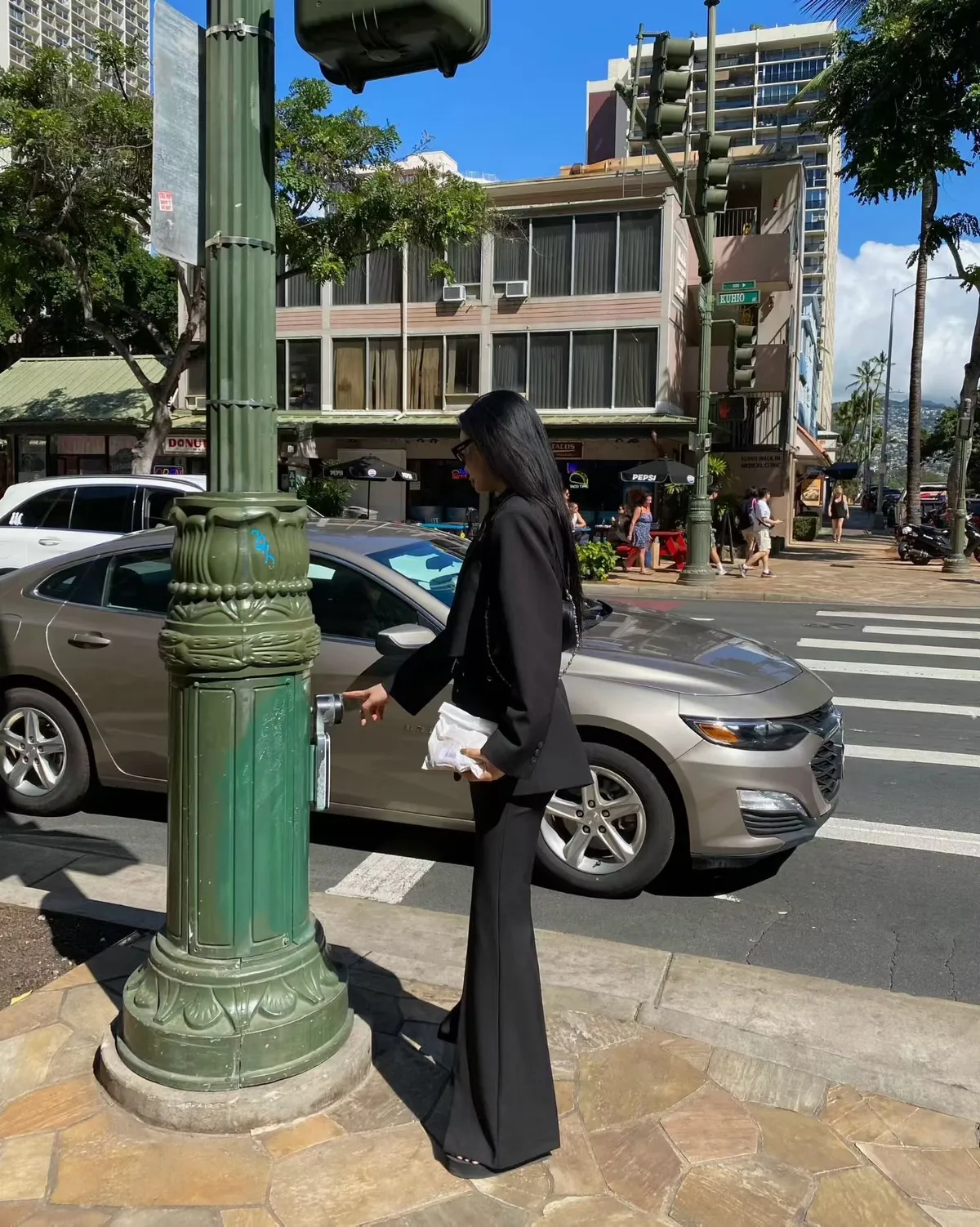 垂墜喇叭開叉西裝長褲