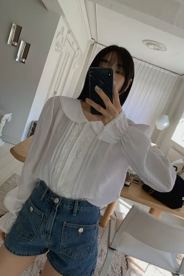 復古布蕾絲拼接娃娃領襯衫