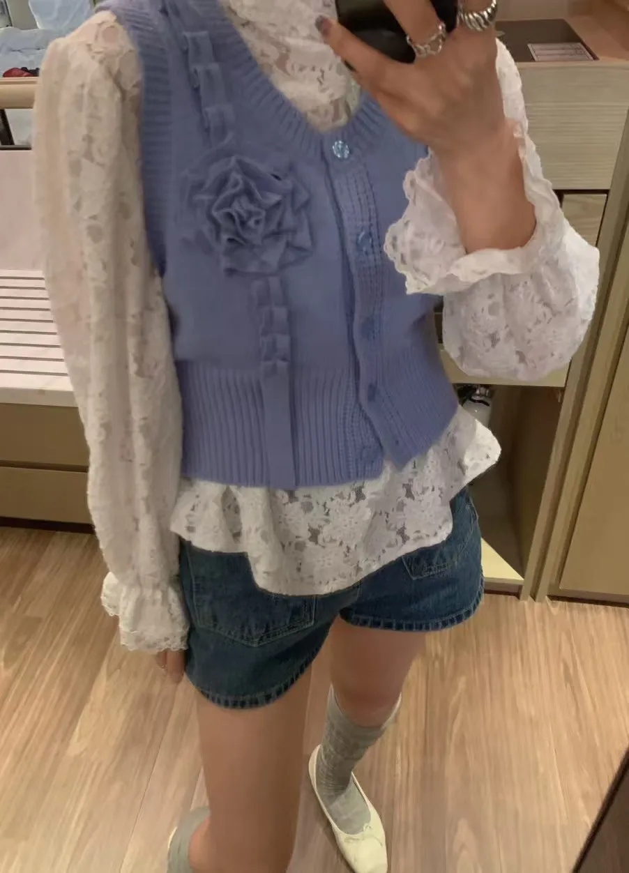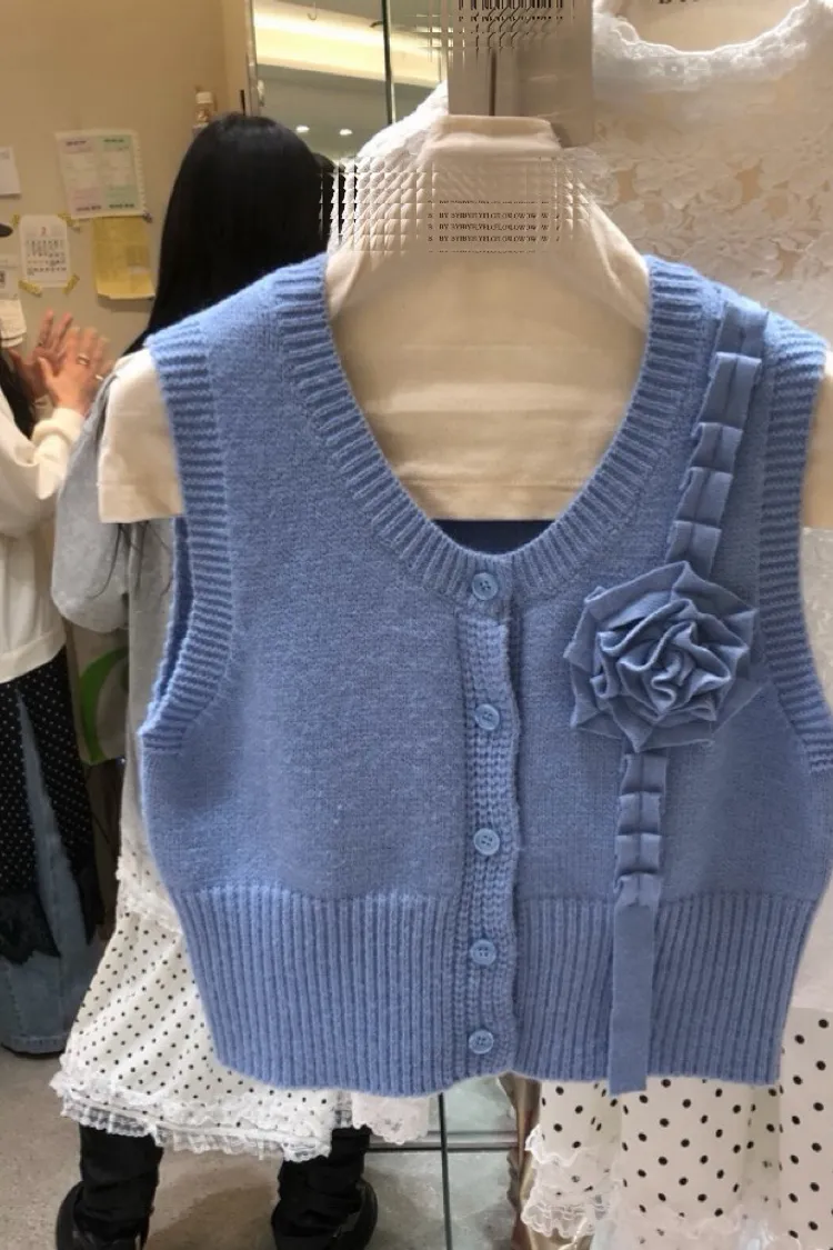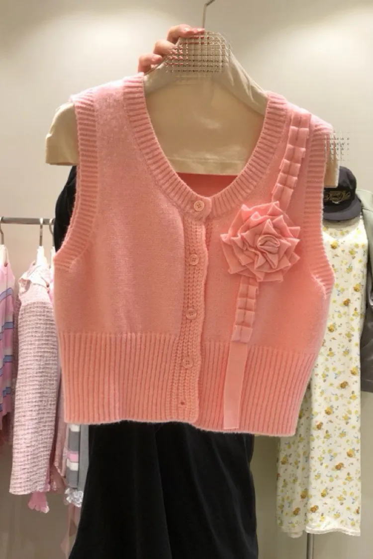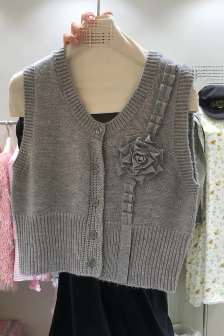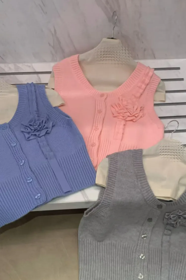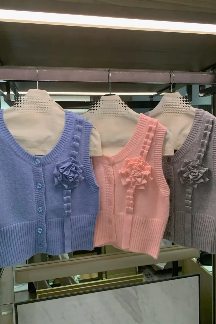 立體玫瑰花針織排釦背心