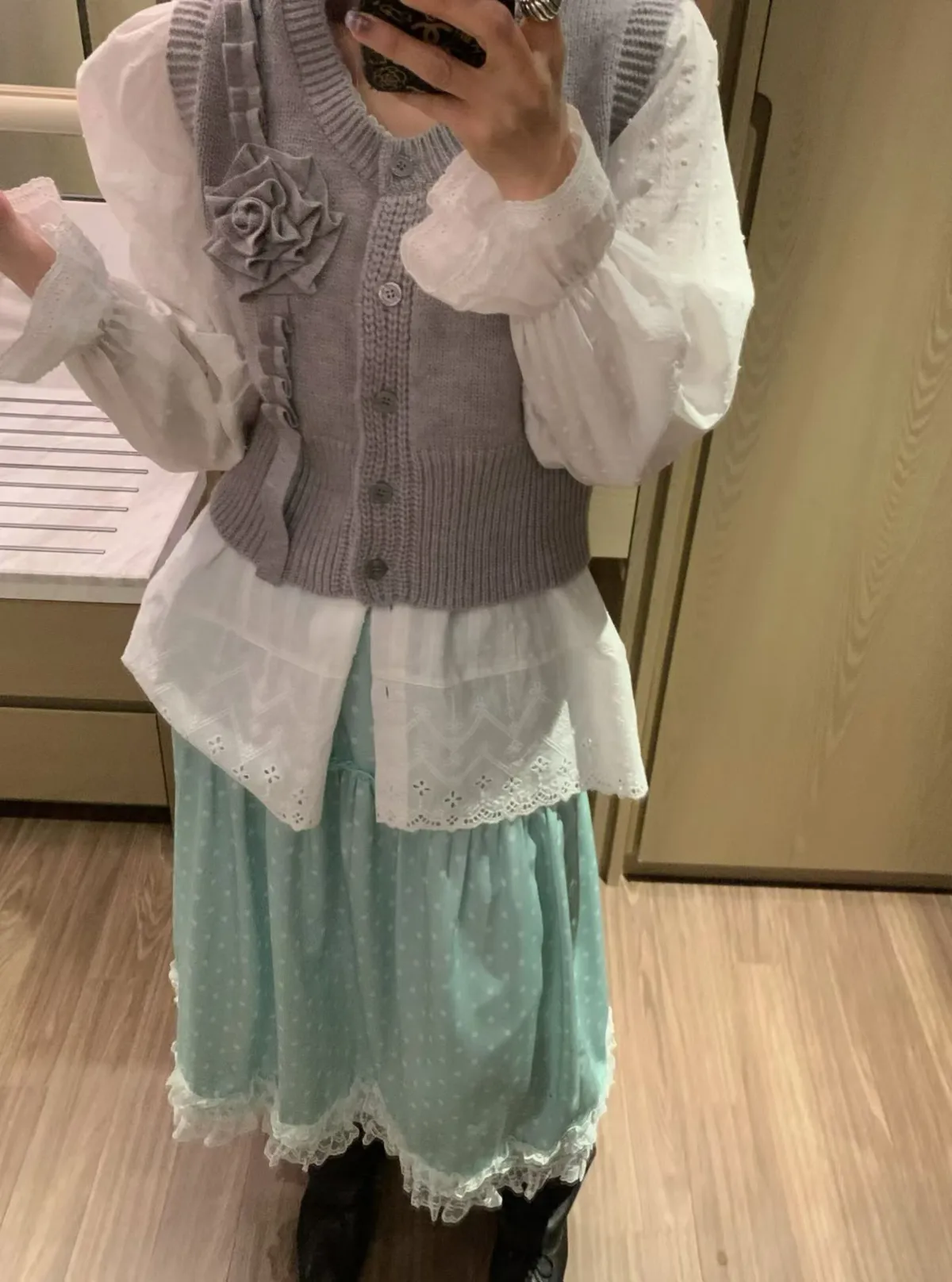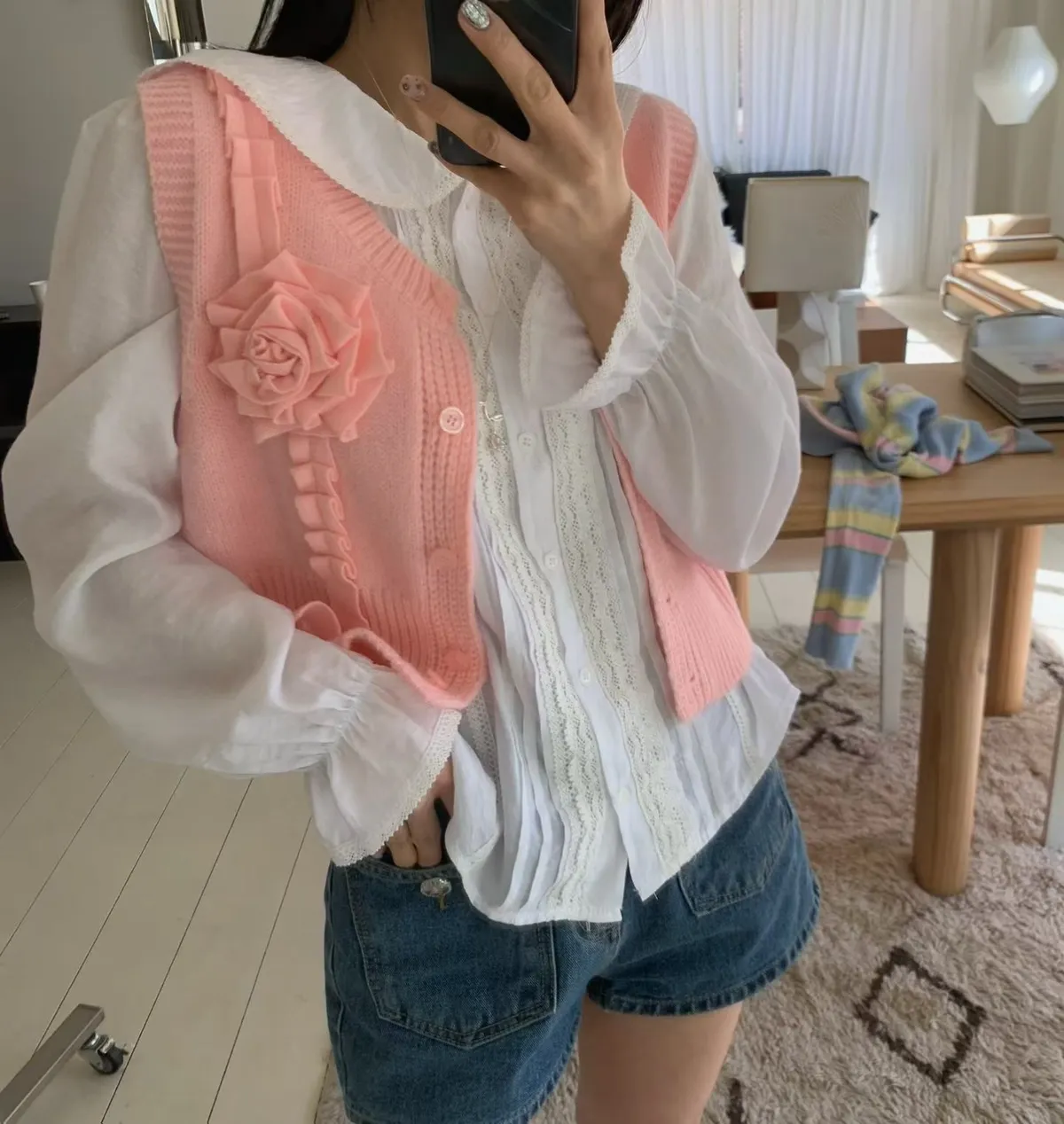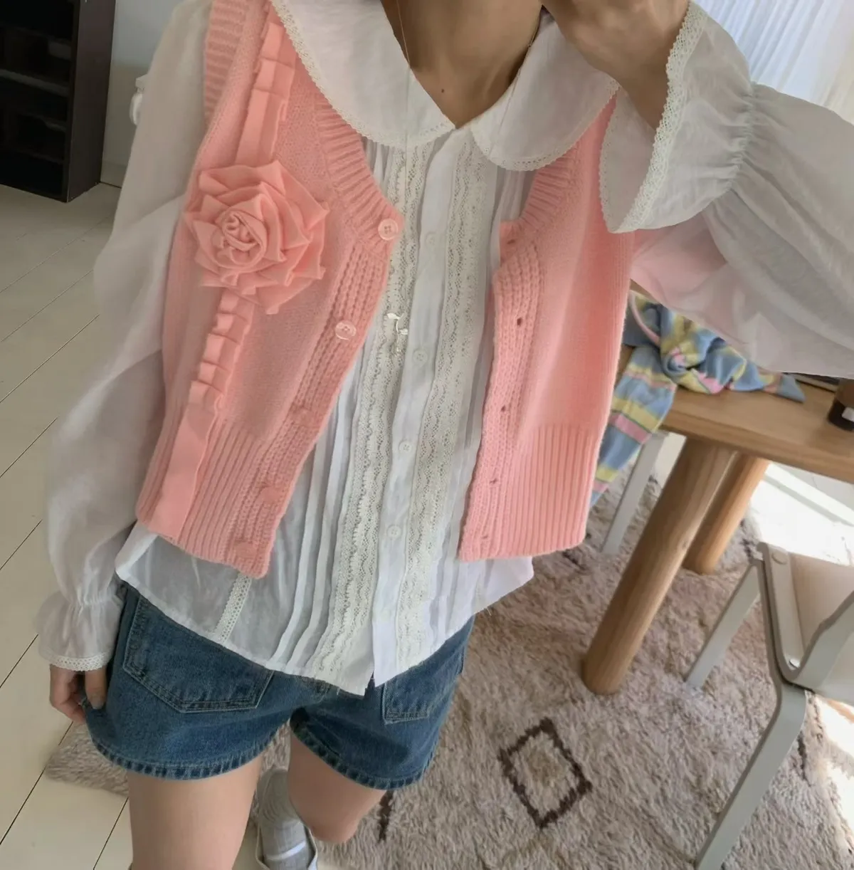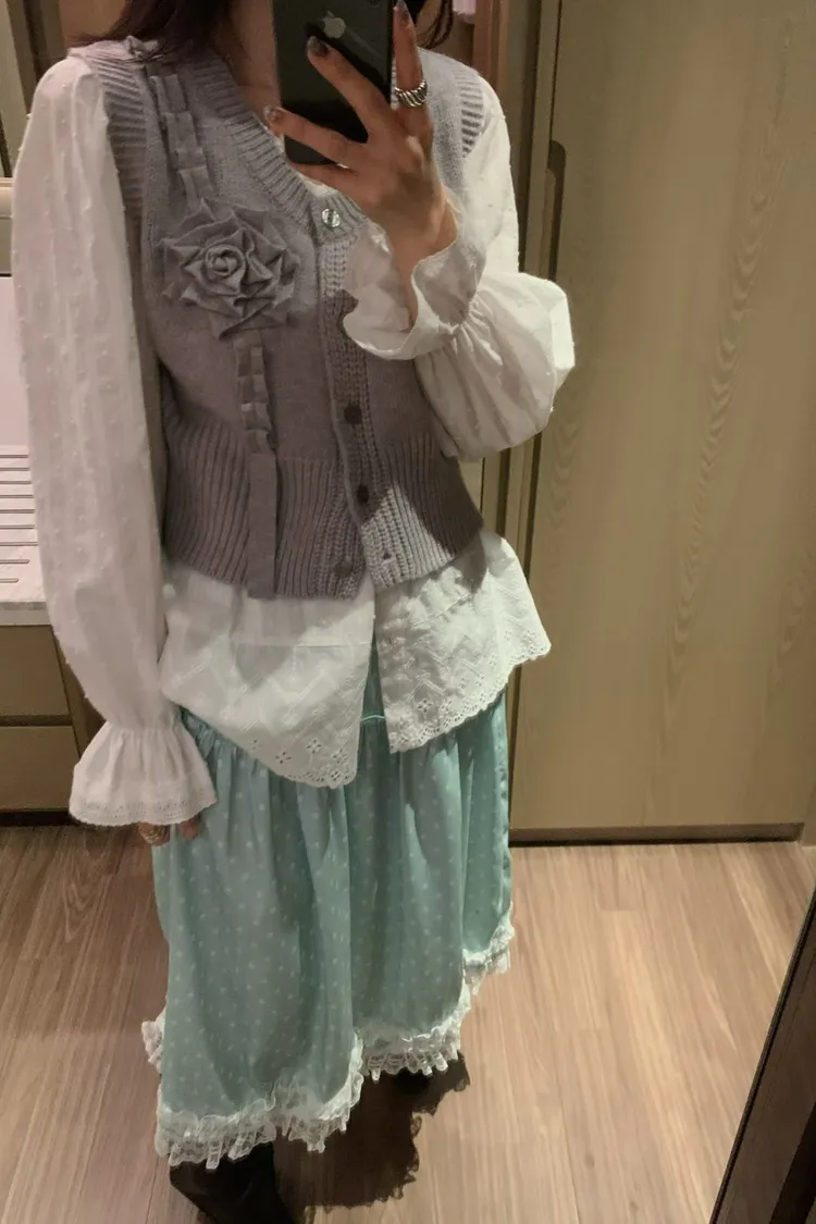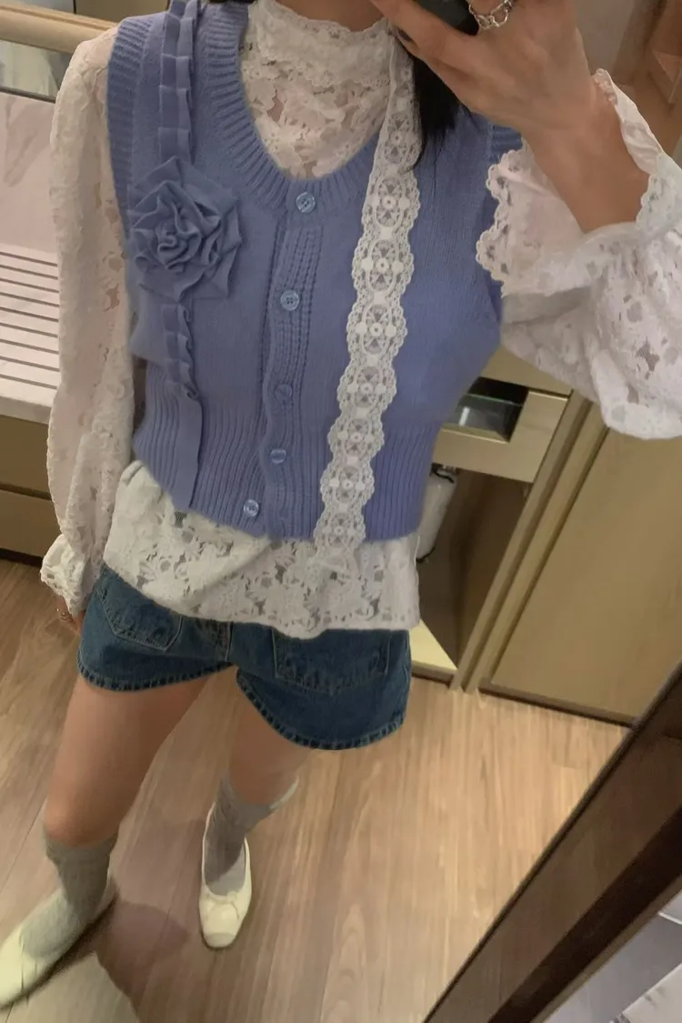 立體玫瑰花針織排釦背心