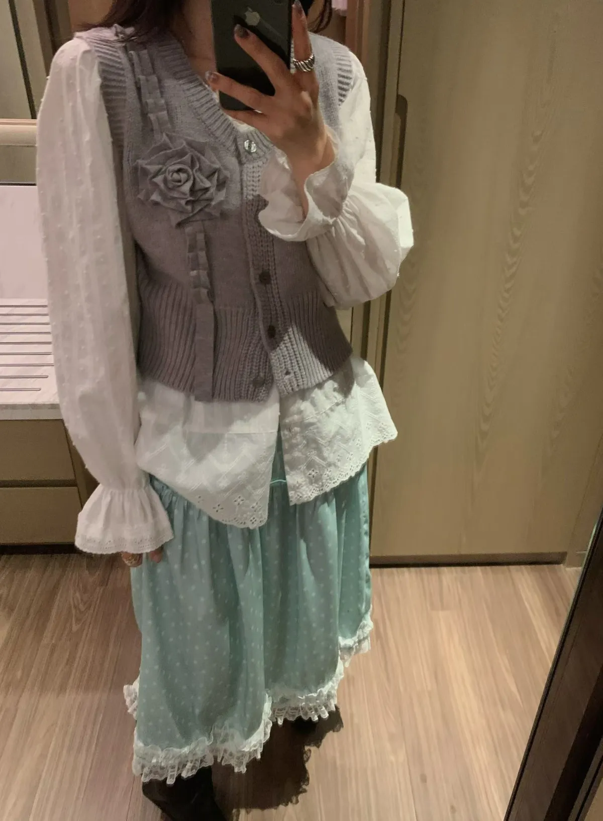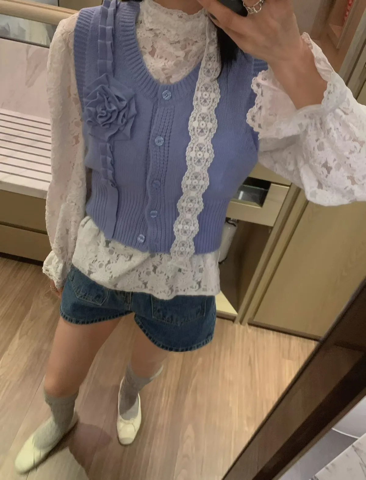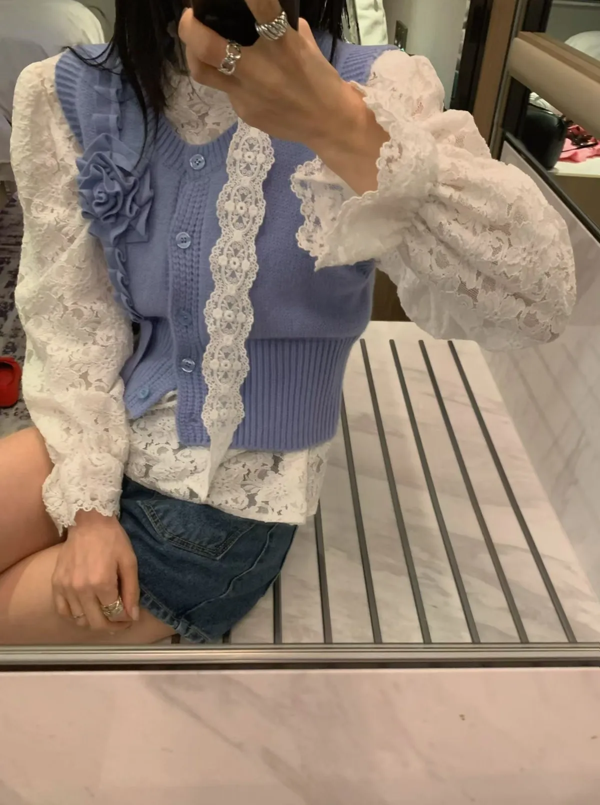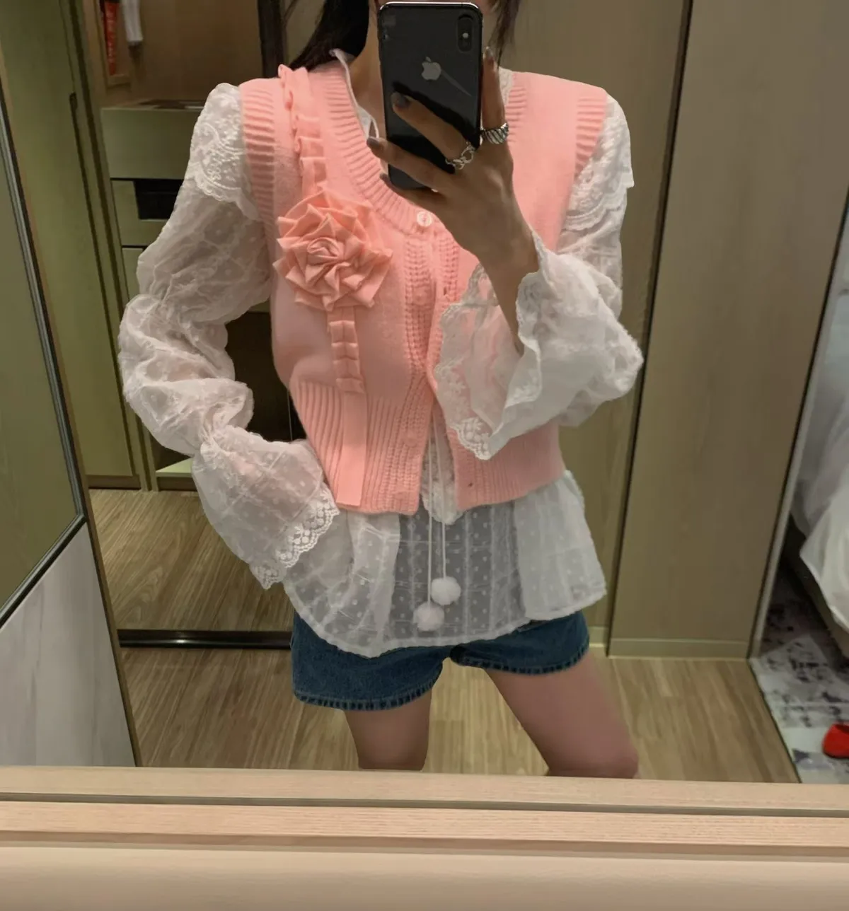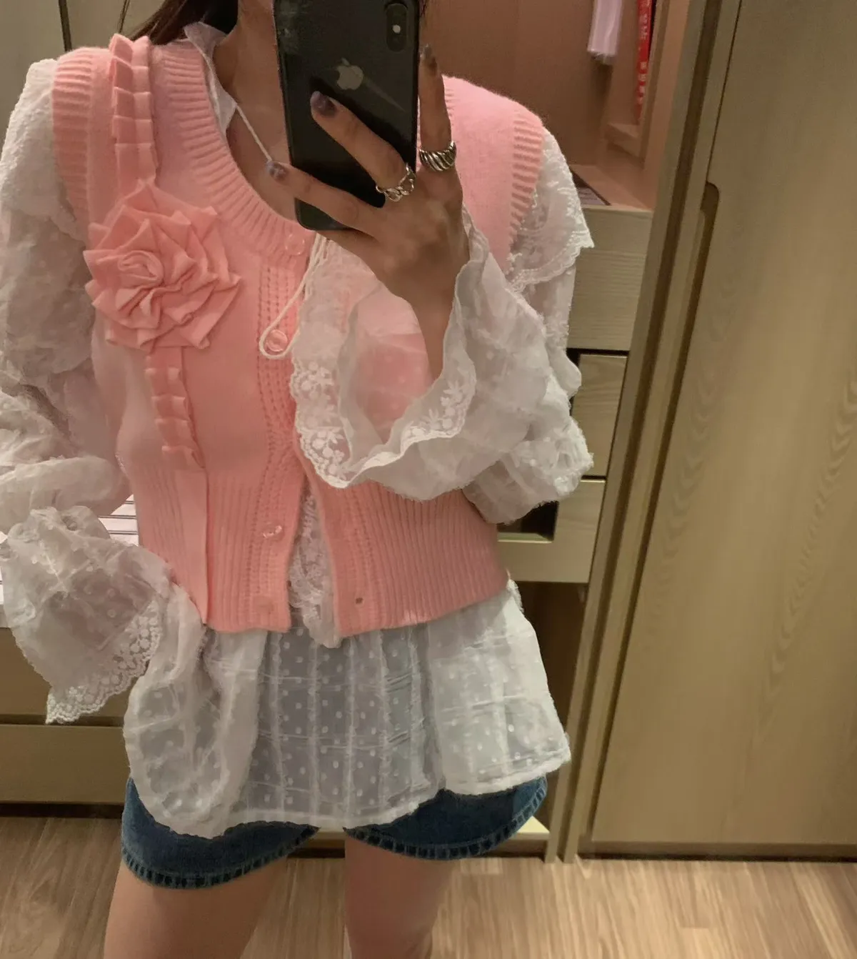 立體玫瑰花針織排釦背心