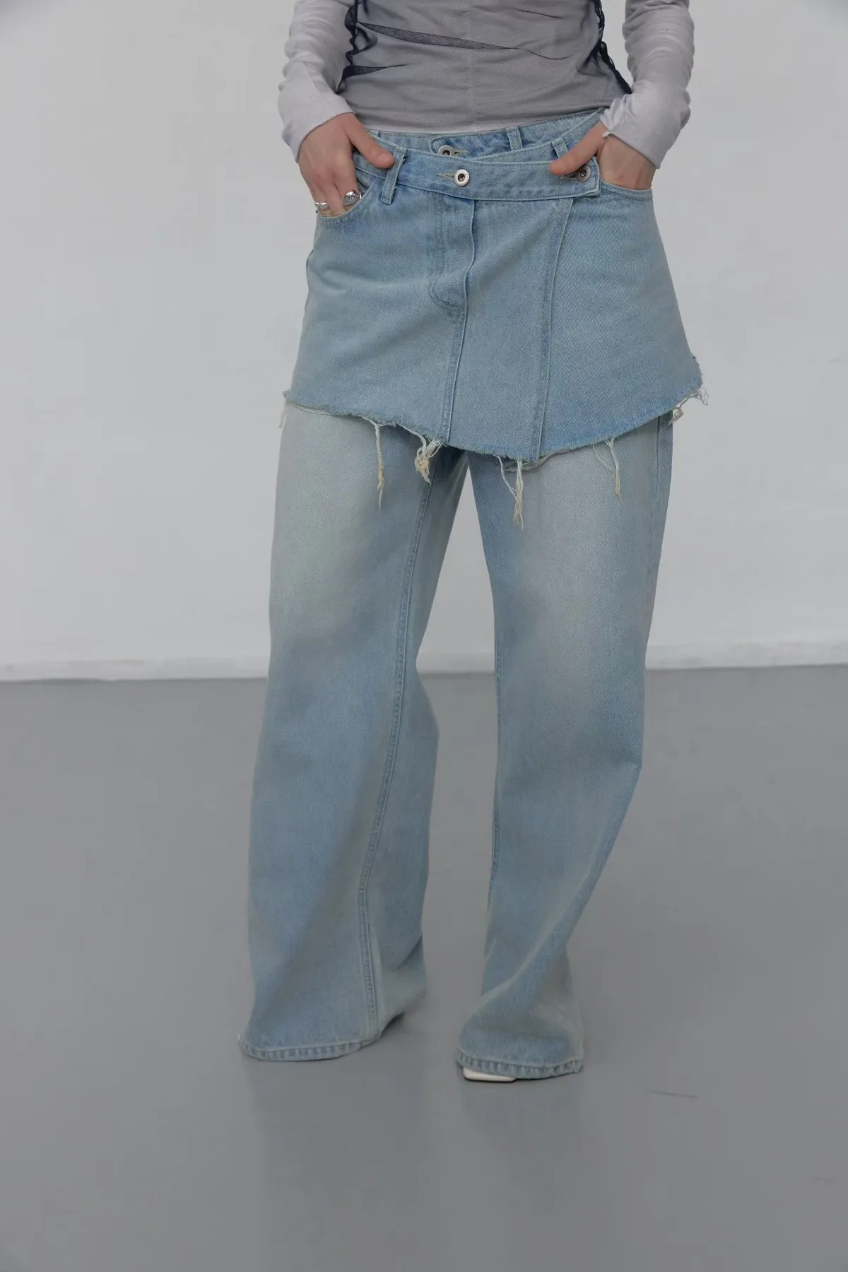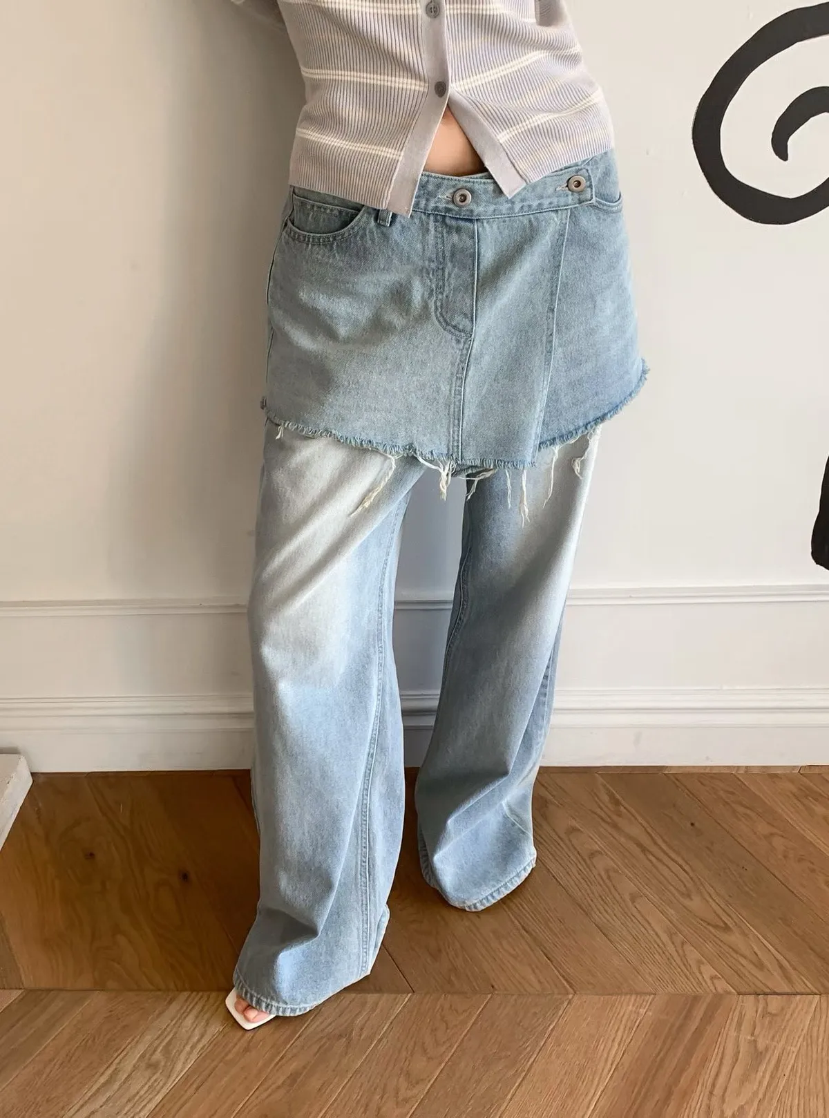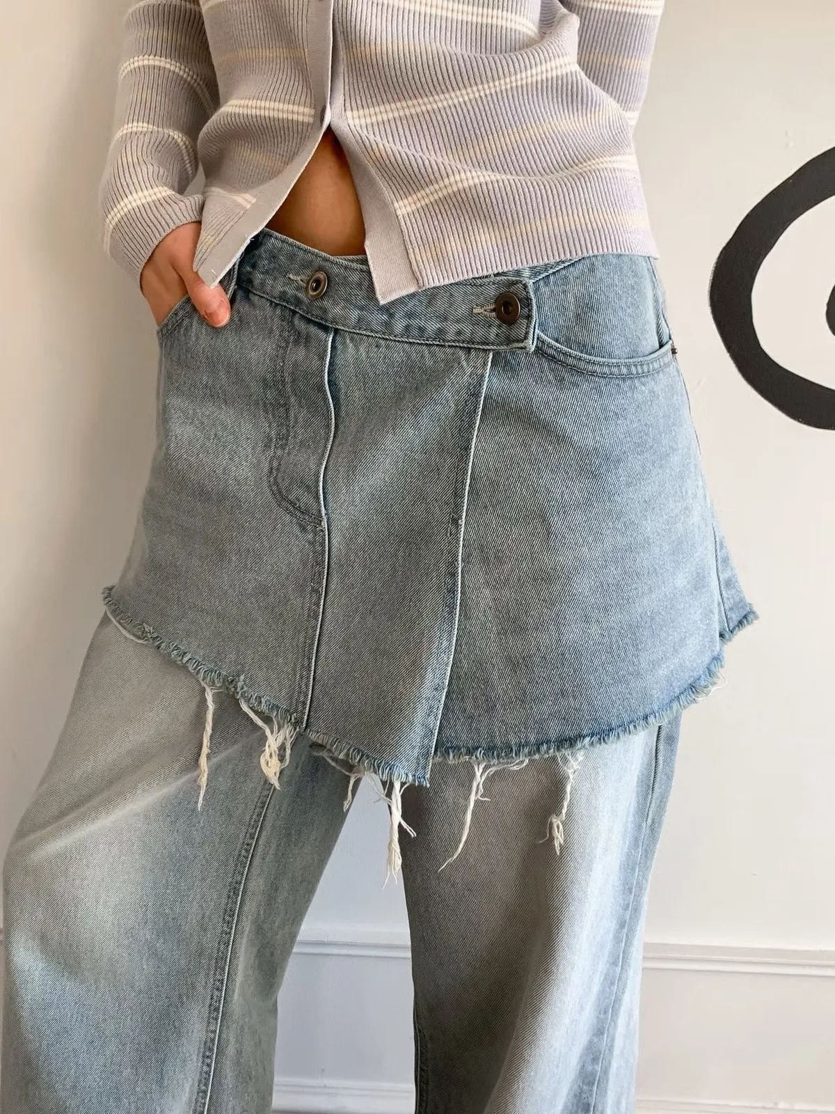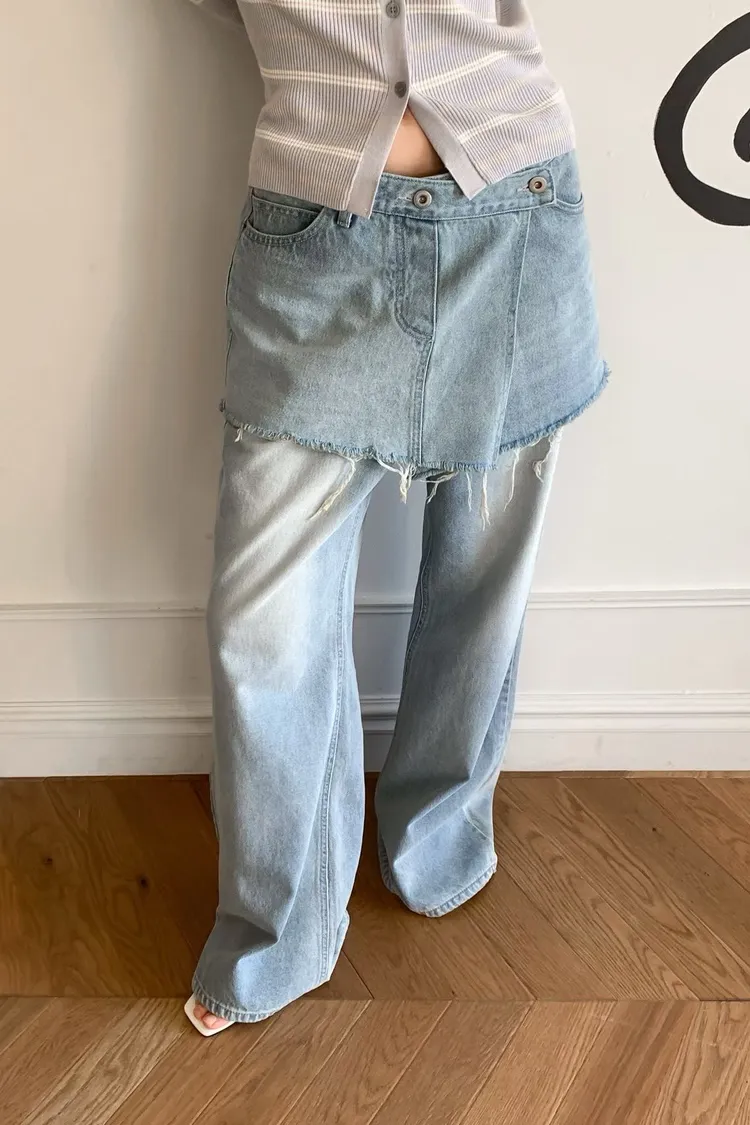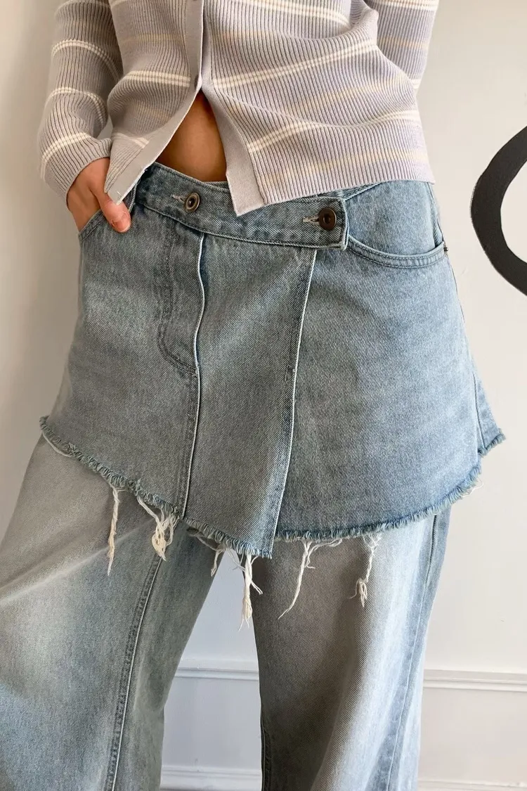 拼接屁帘層次設計牛仔褲