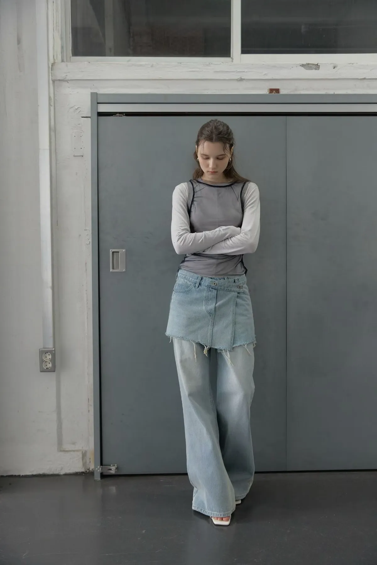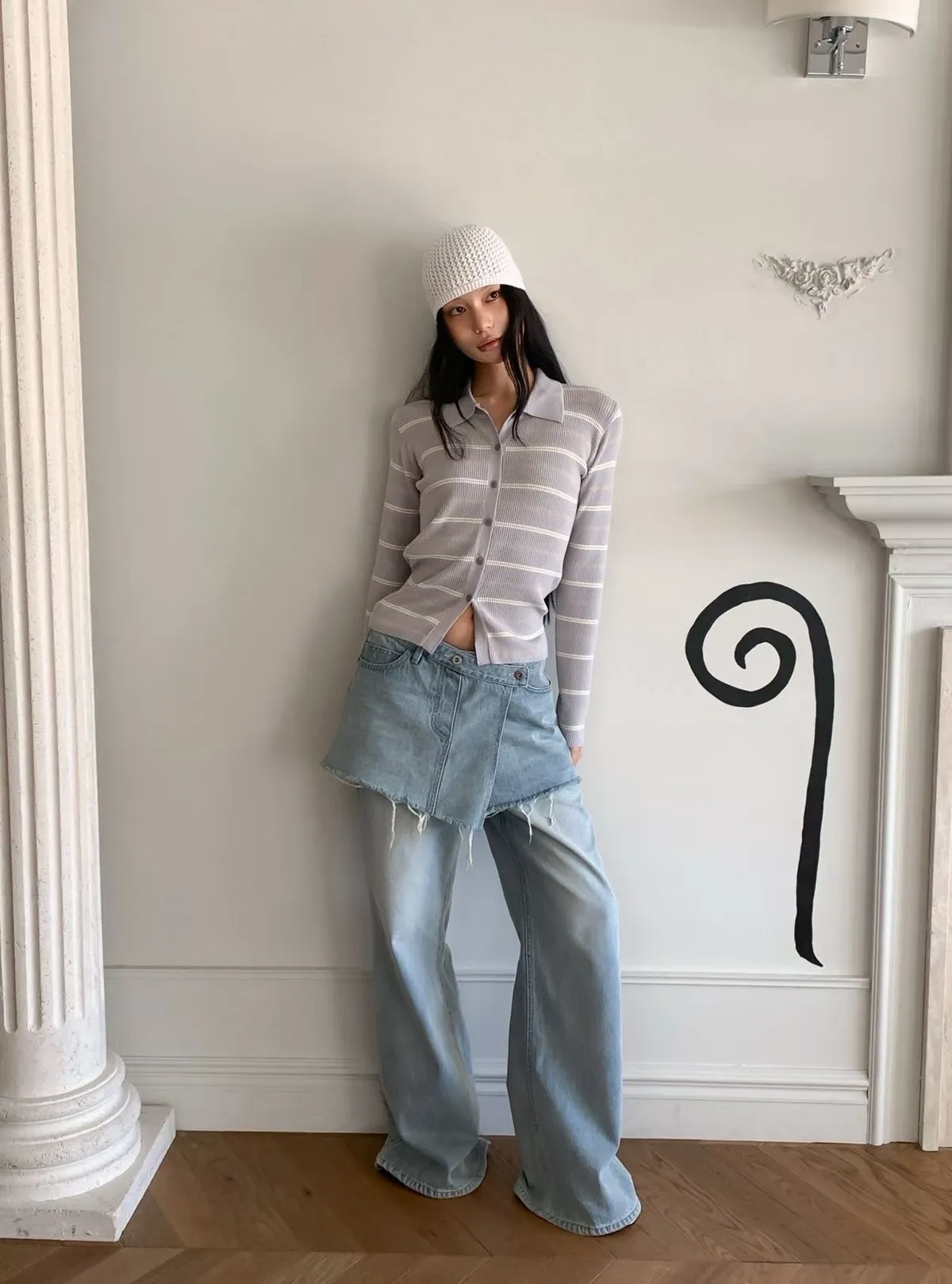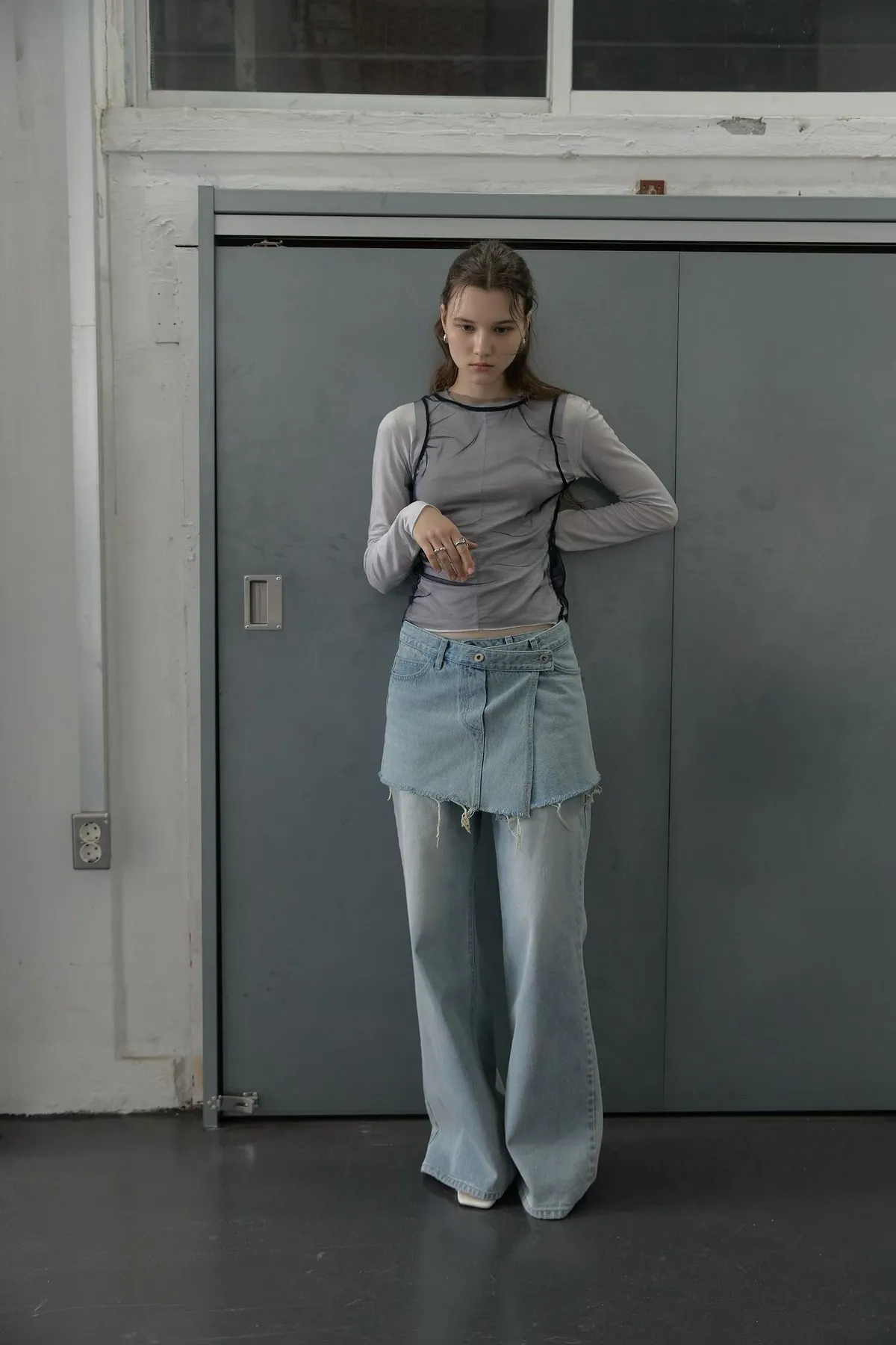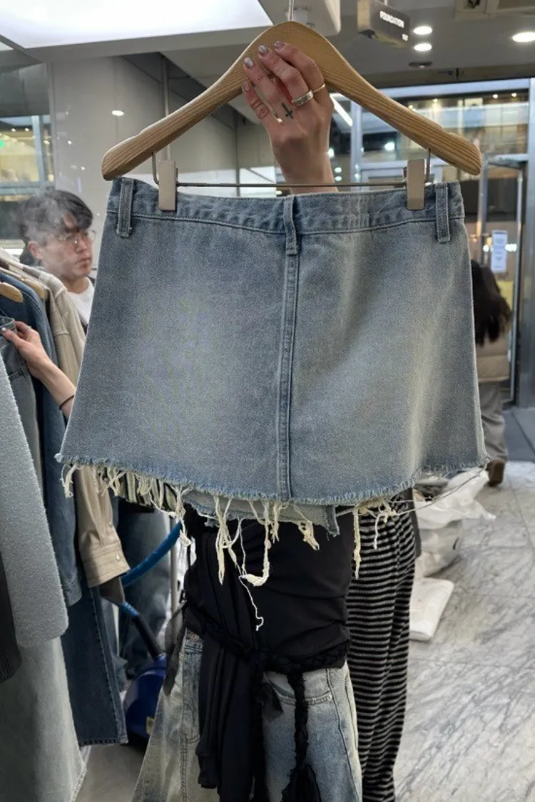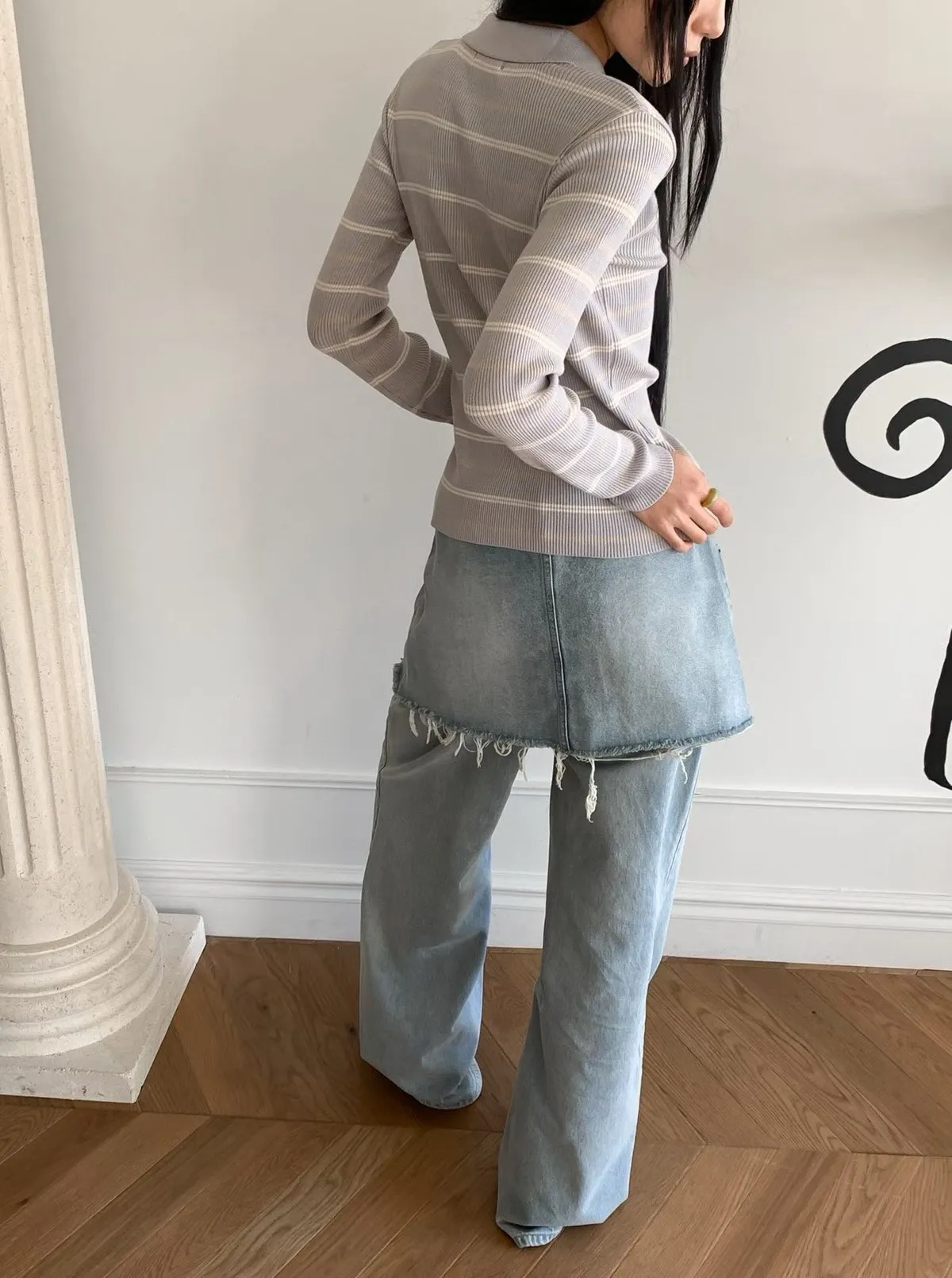 拼接屁帘層次設計牛仔褲