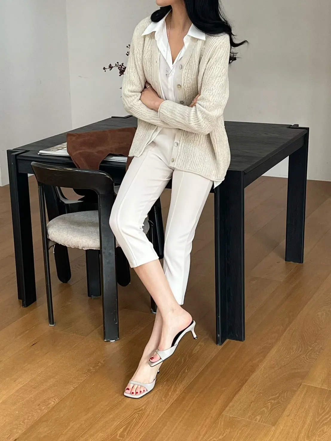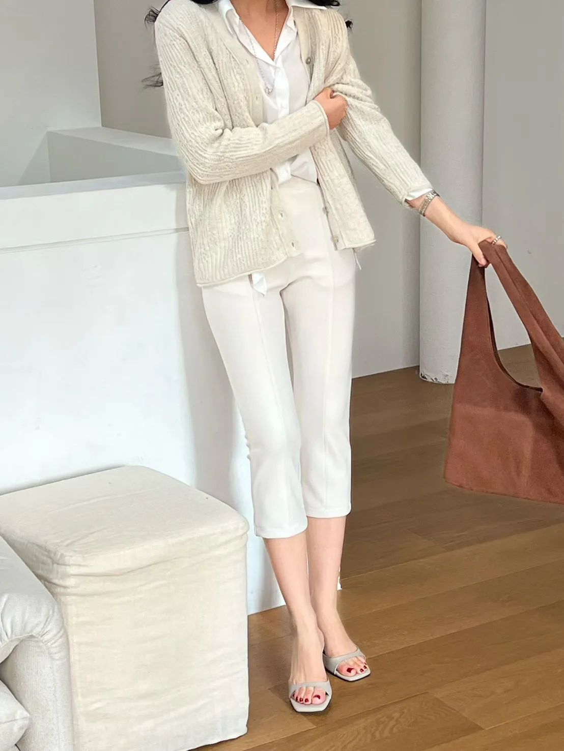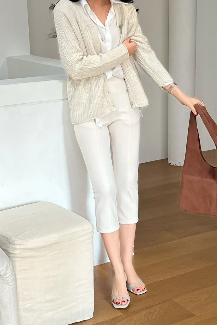 素面修飾七分褲