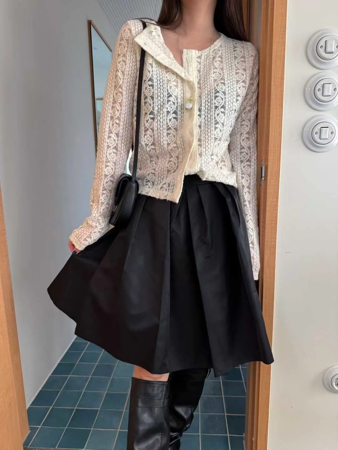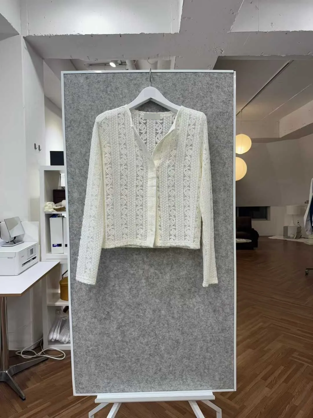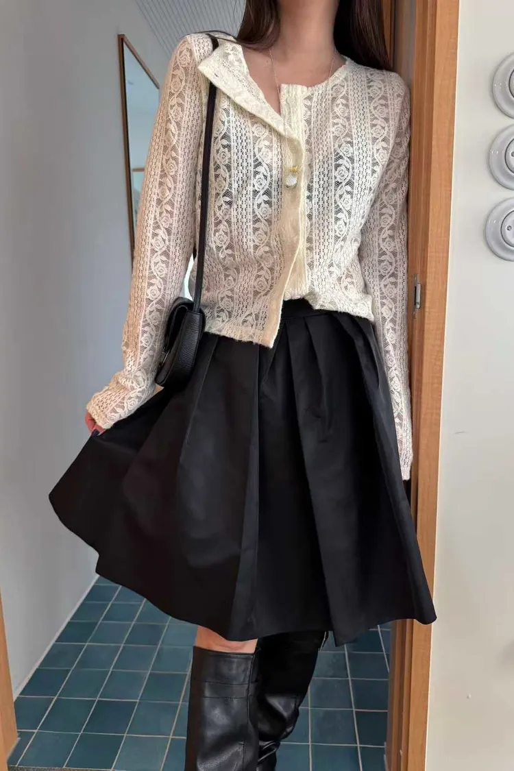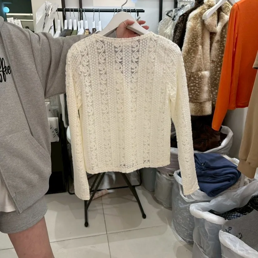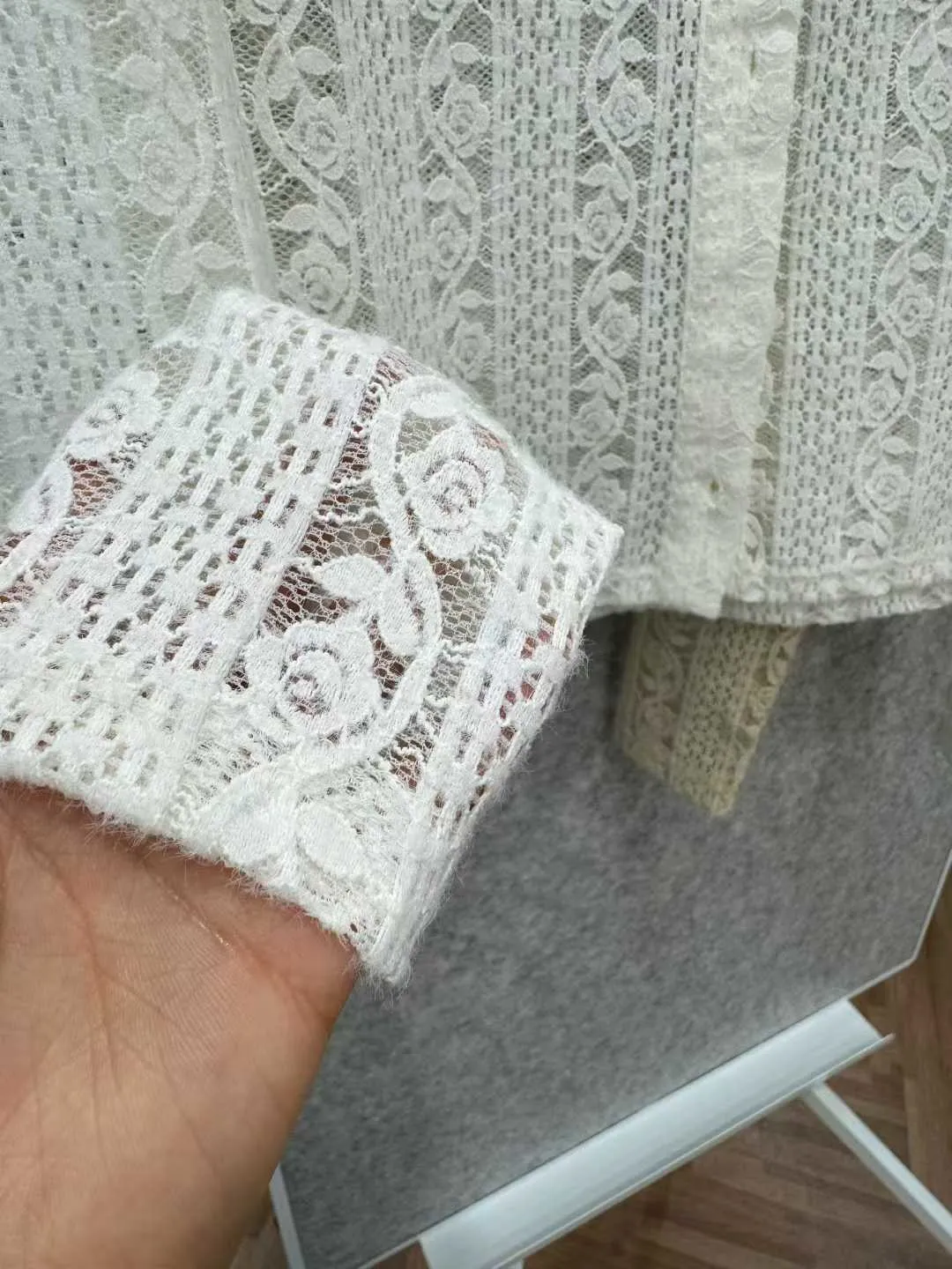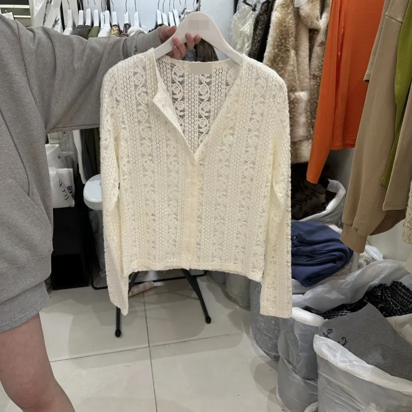 玫瑰蕾絲開襟襯衫