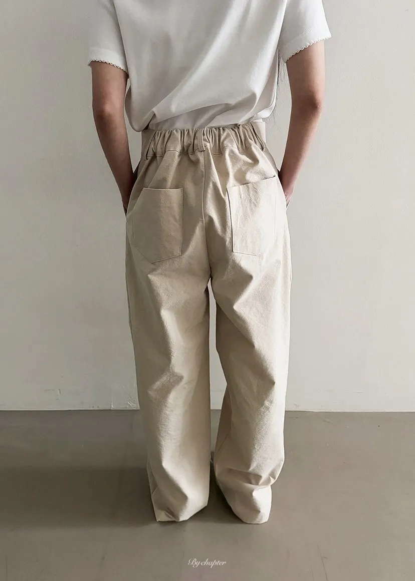 後鬆緊寬直筒褲