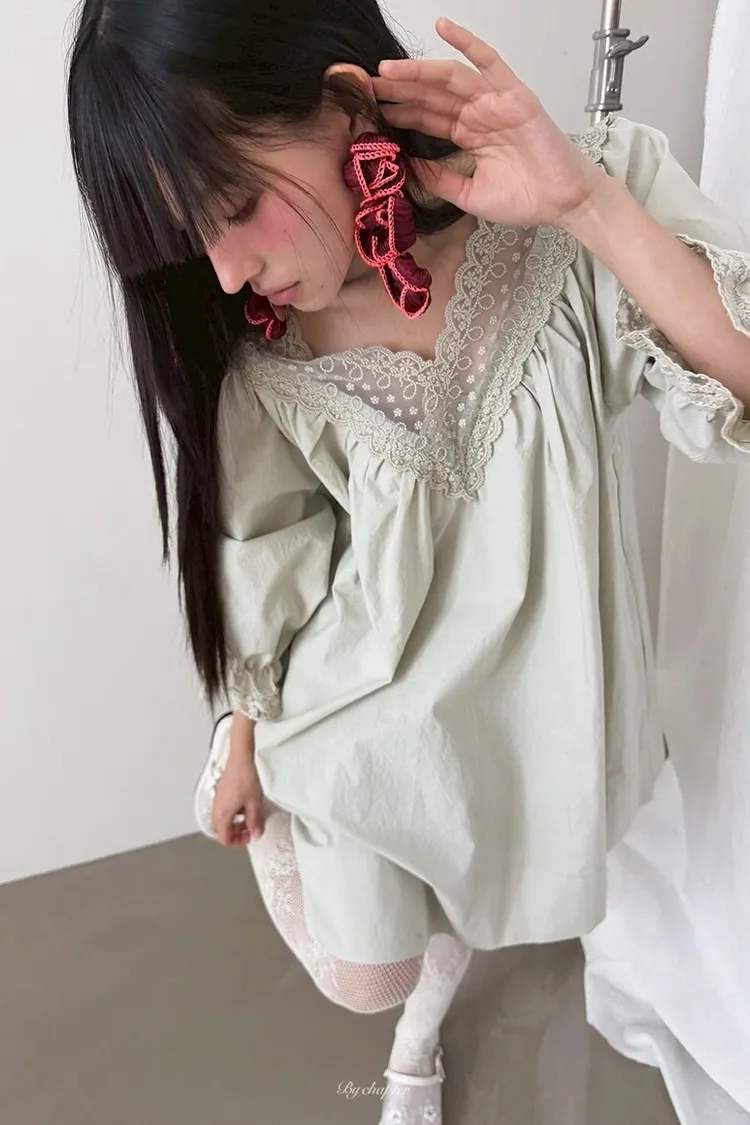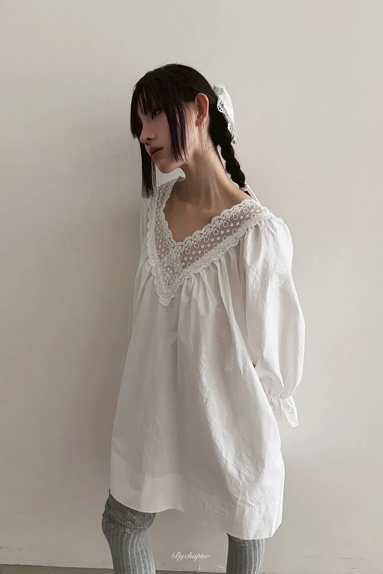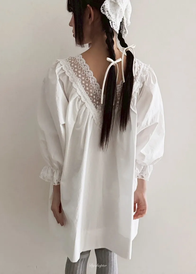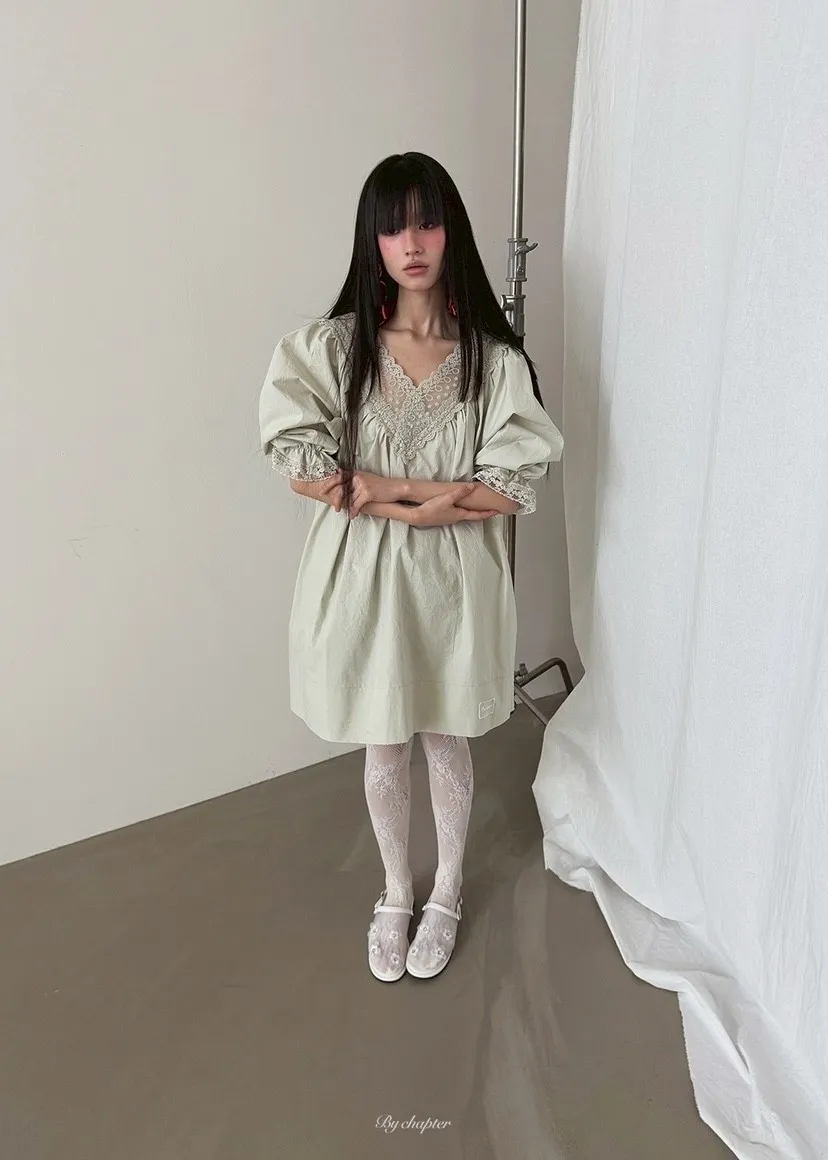 V領透膚蕾絲寬洋裝