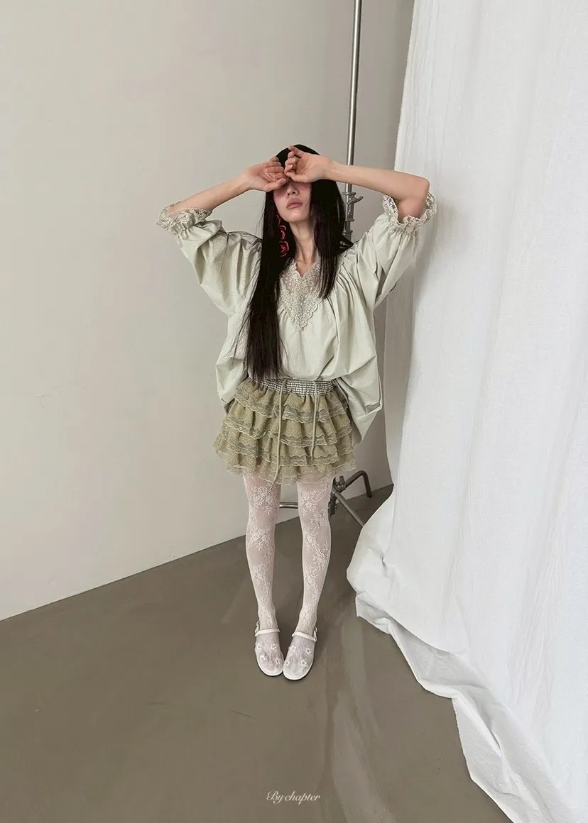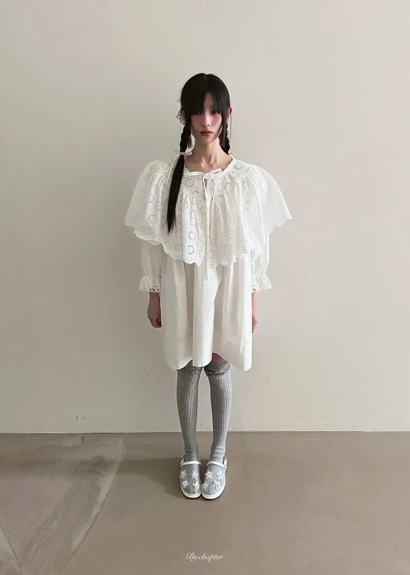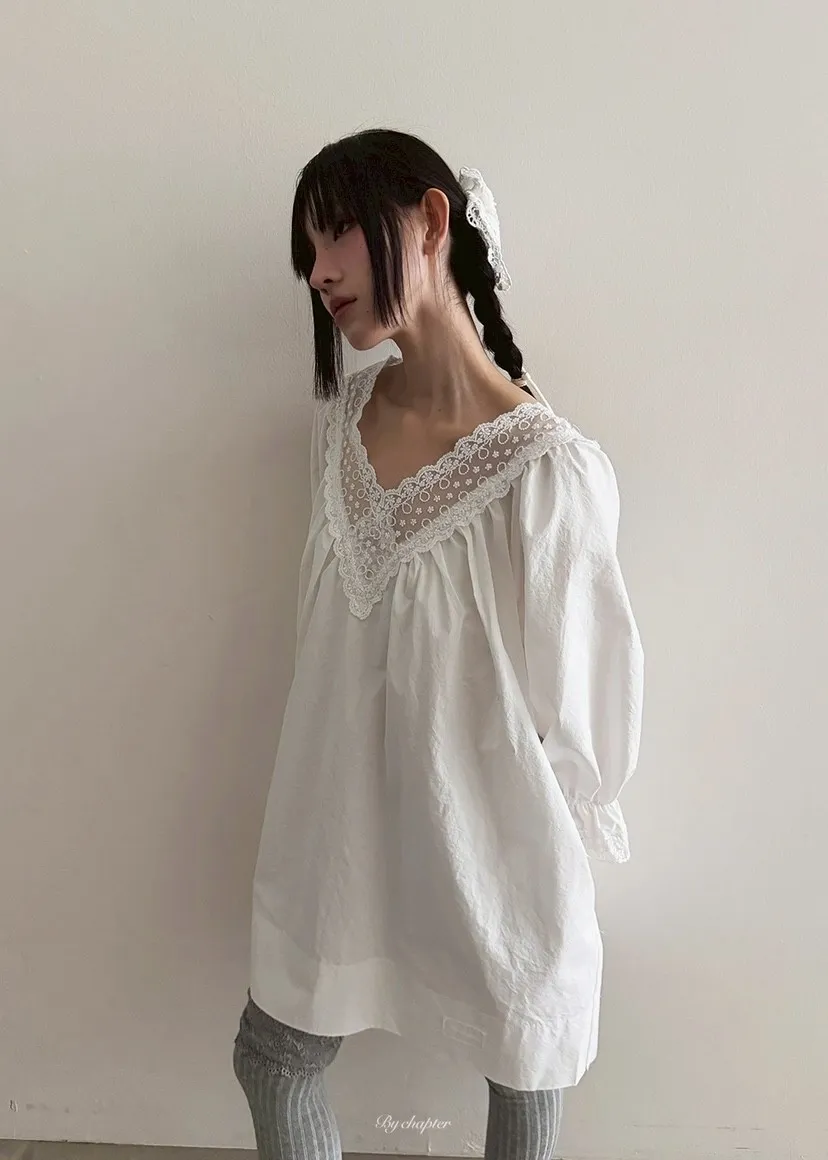 V領透膚蕾絲寬洋裝