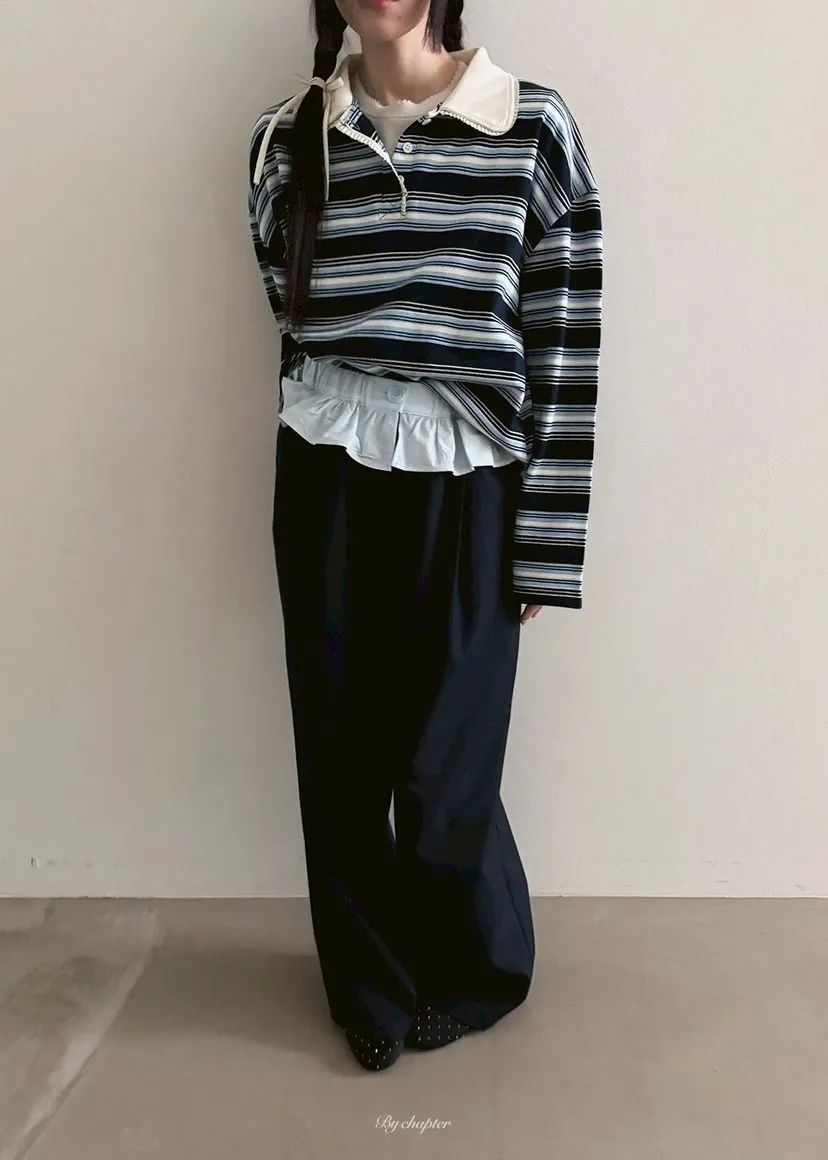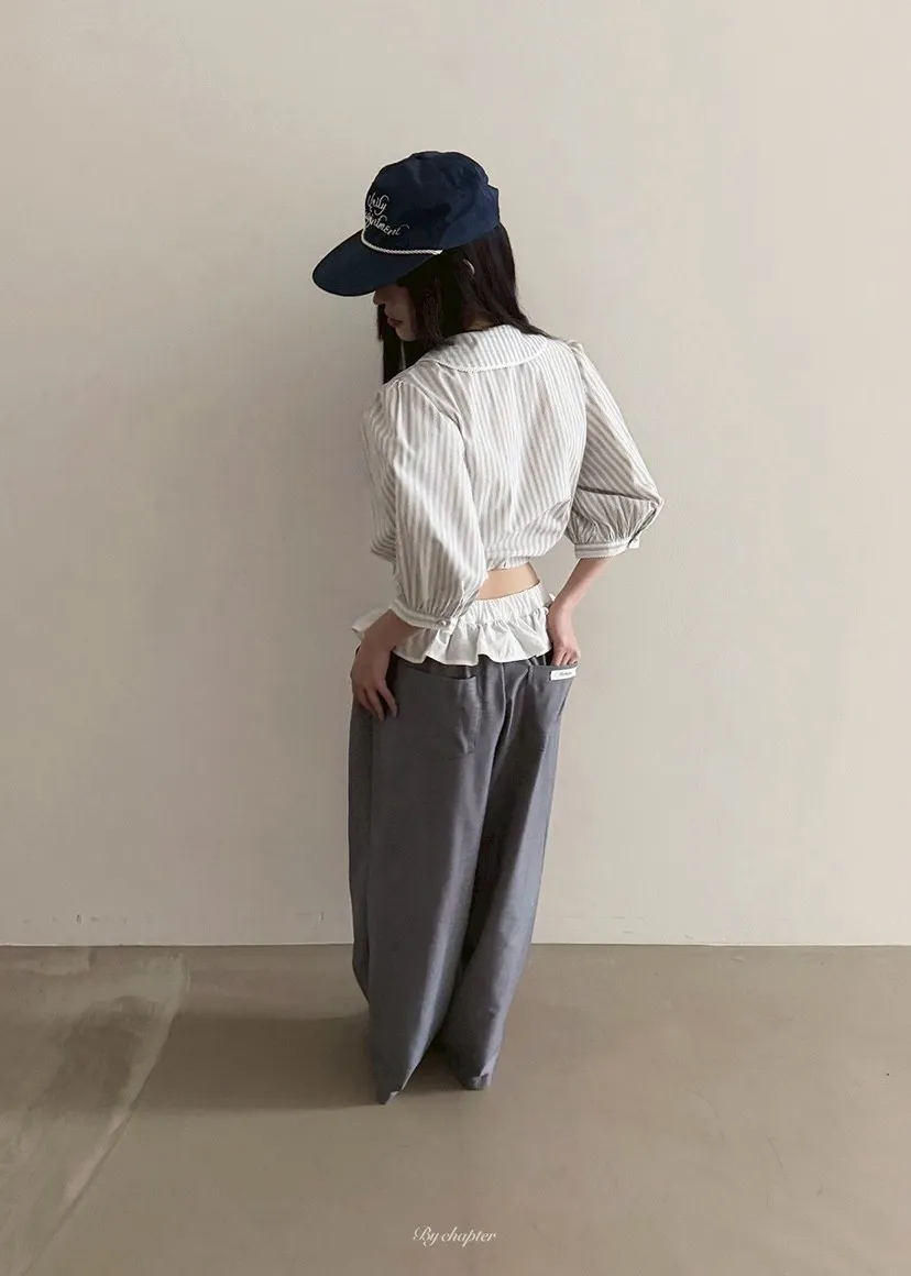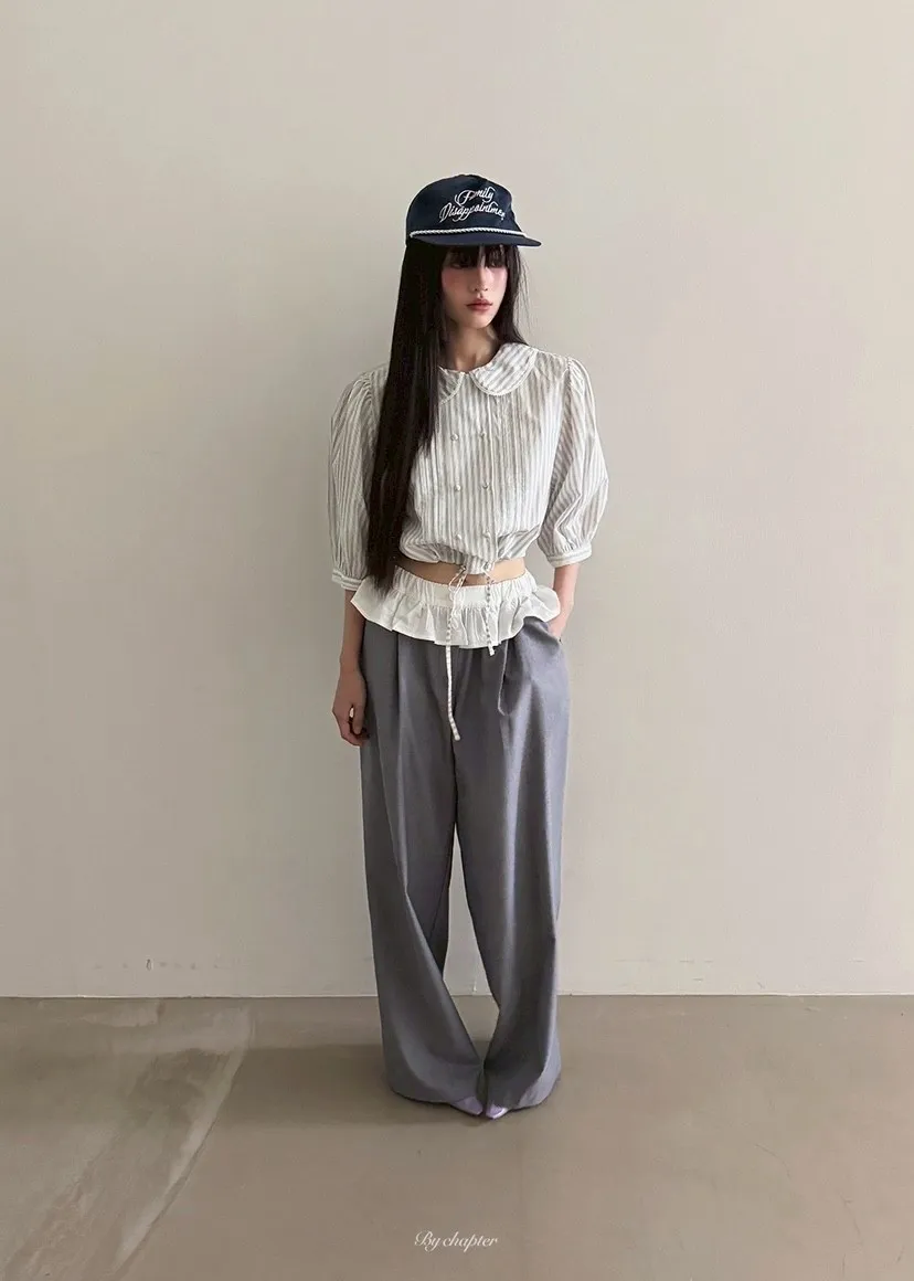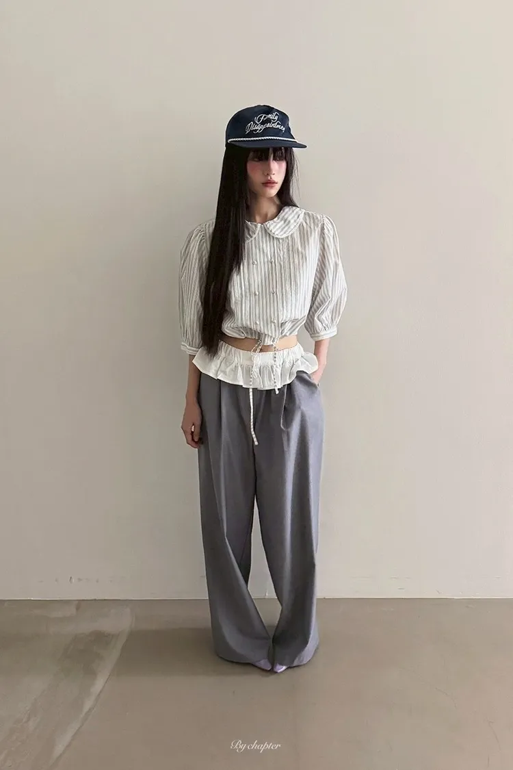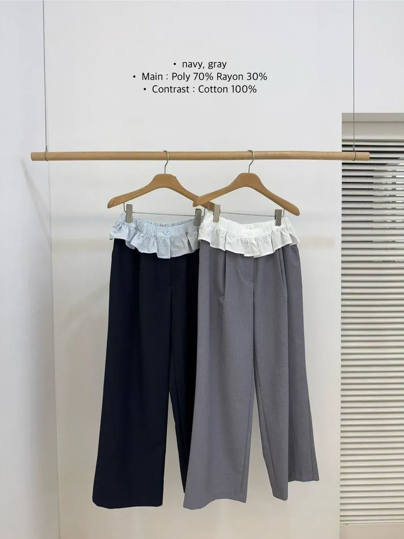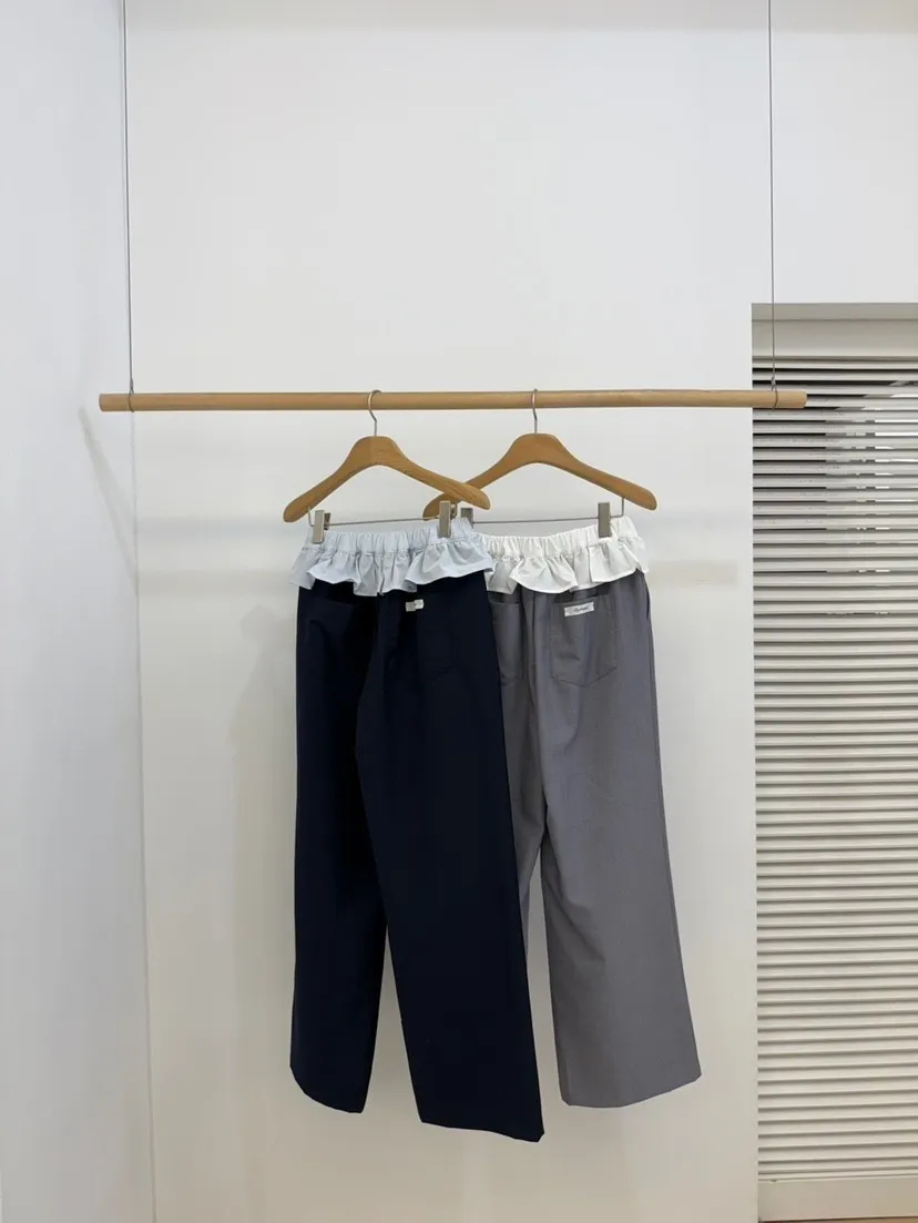 腰間蕾絲小裙襬裝飾西裝褲