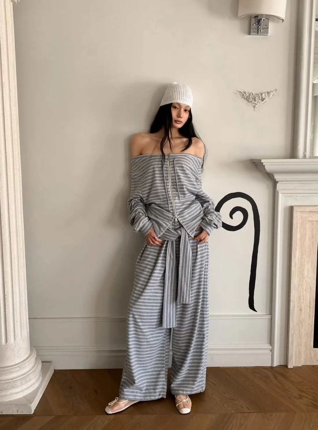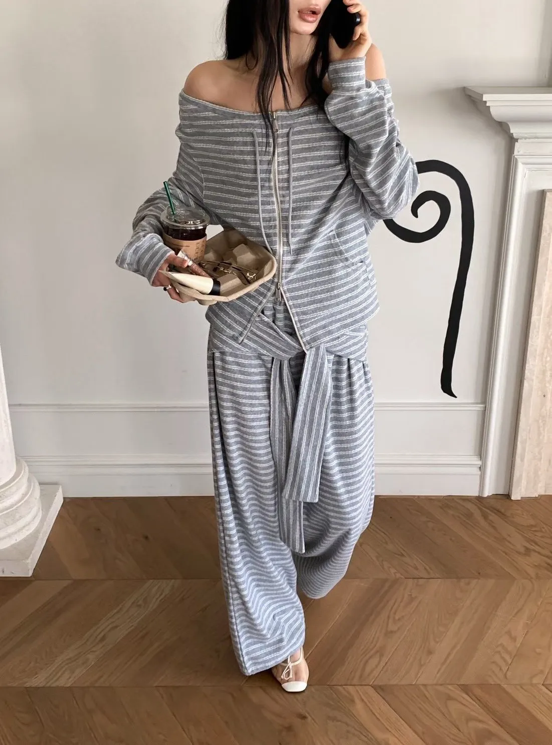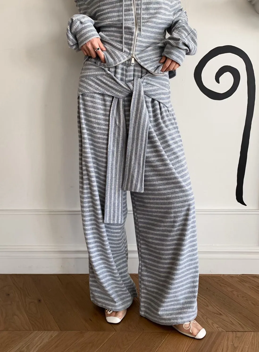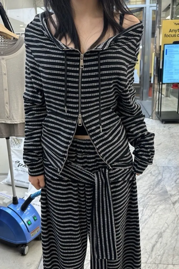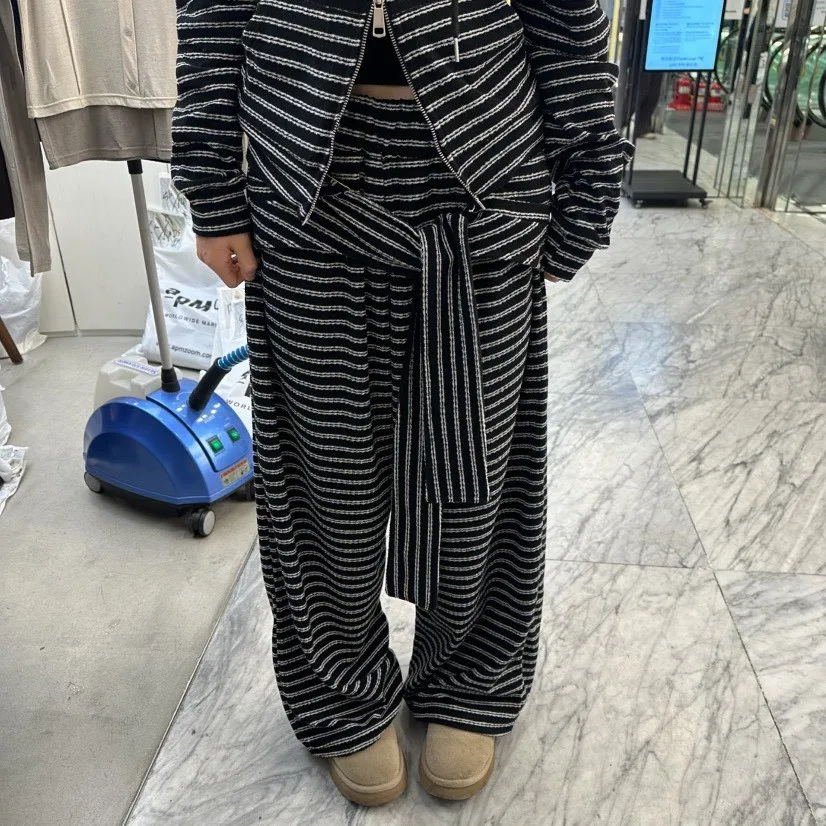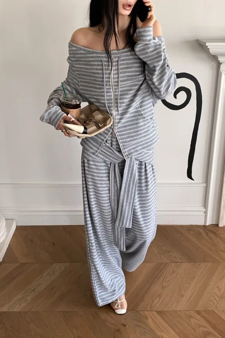 條紋休閒感綁帶套裝