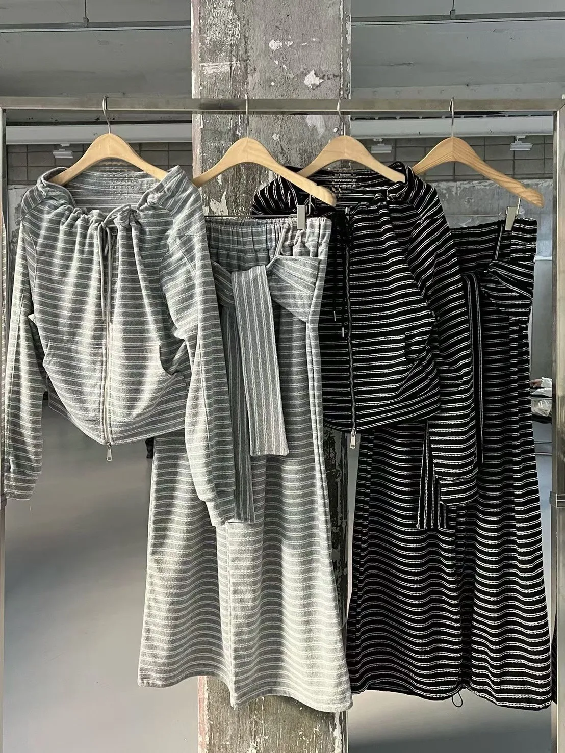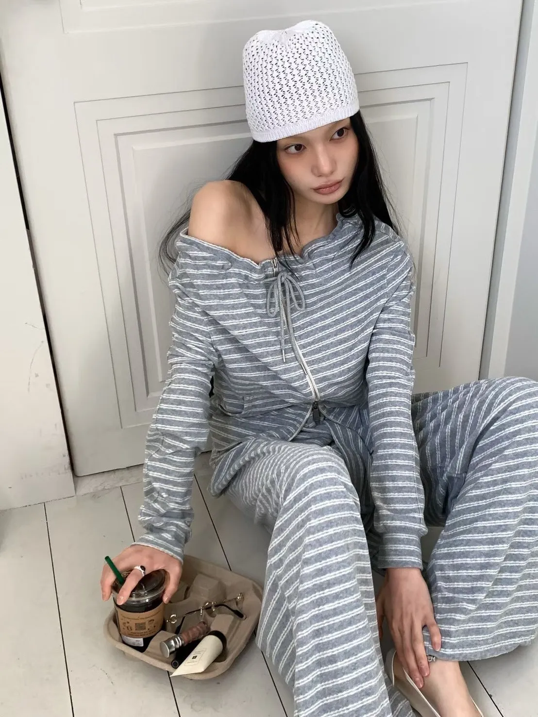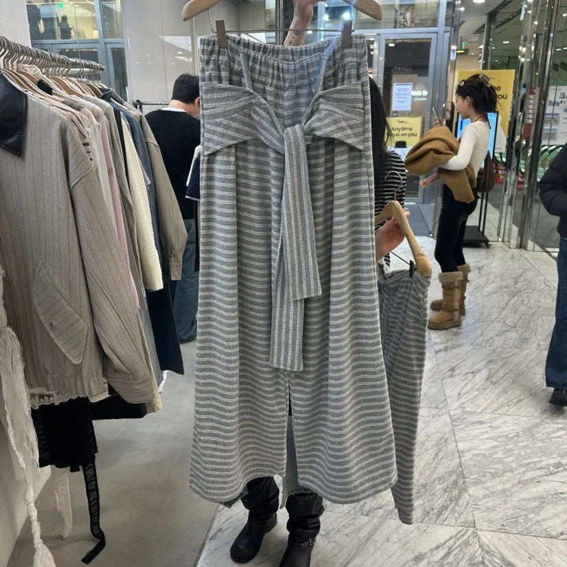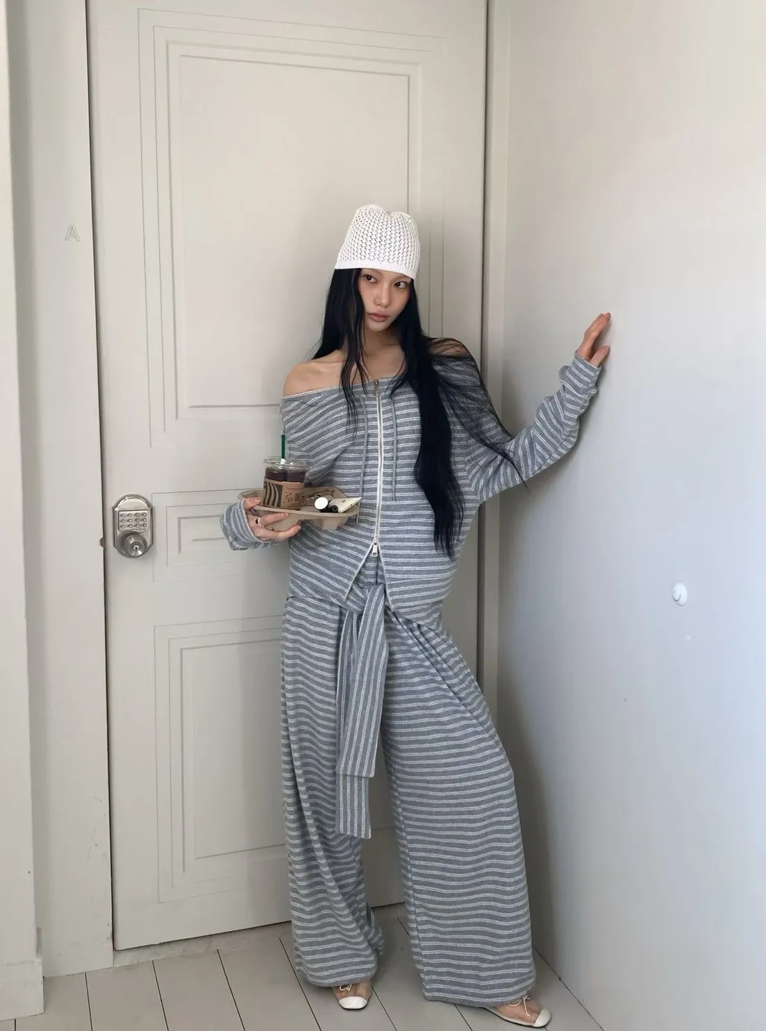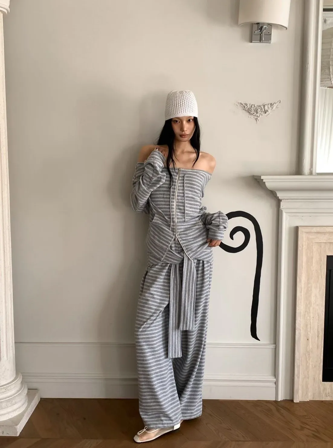 條紋休閒感綁帶套裝