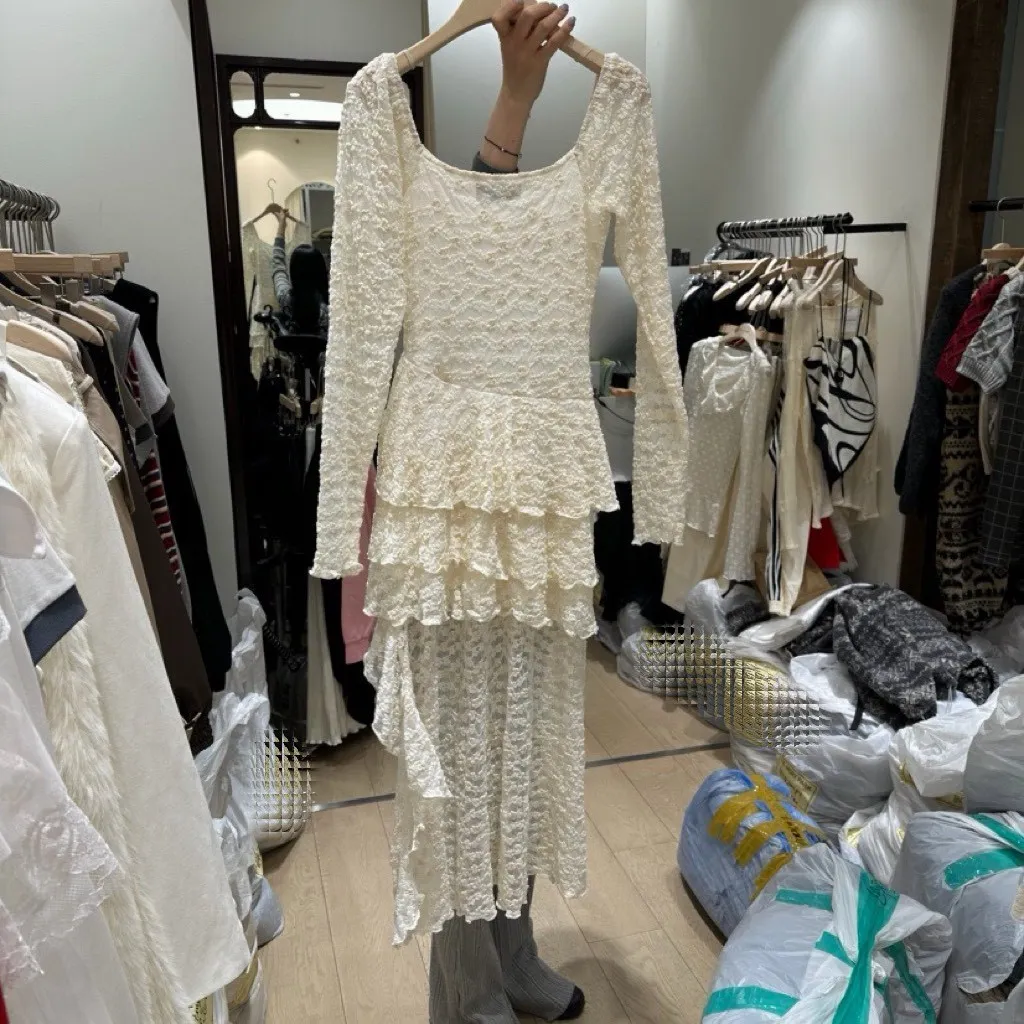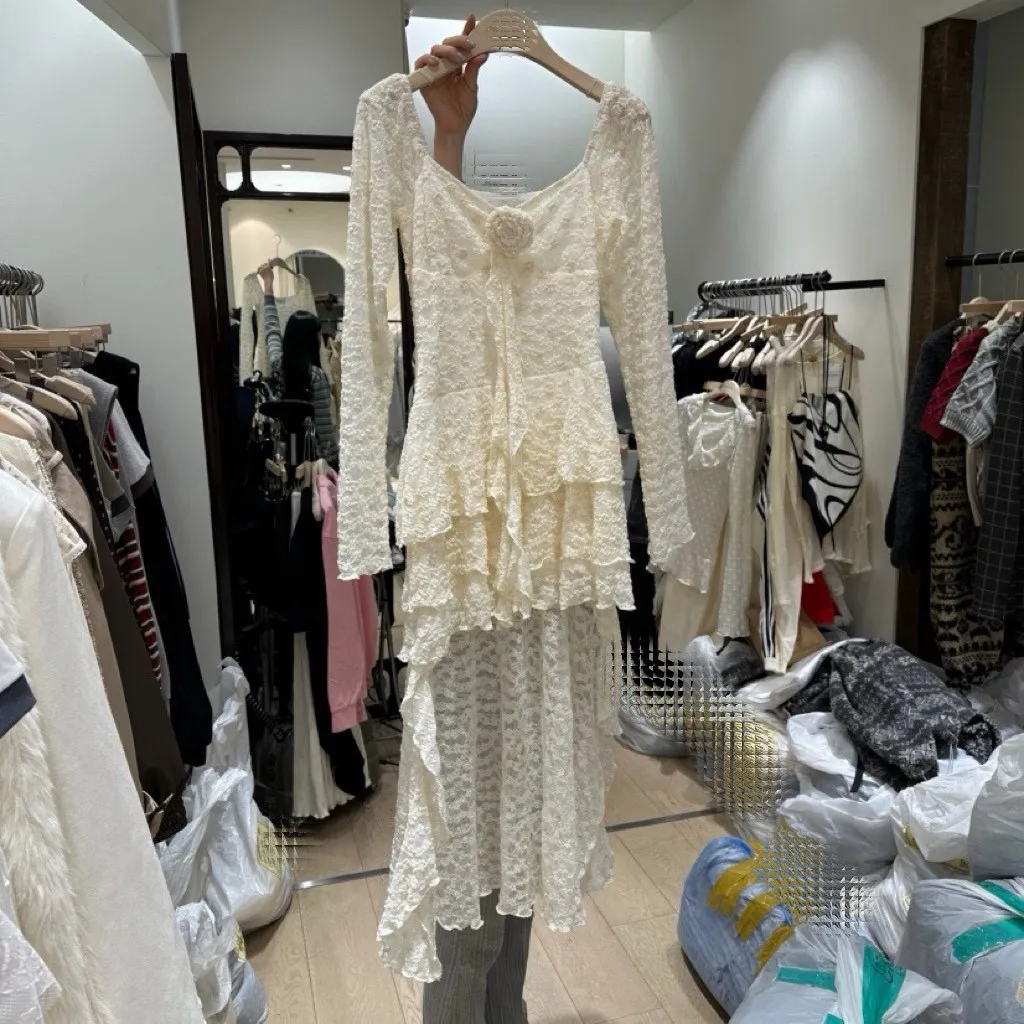 復古花紋蕾絲小洋裝