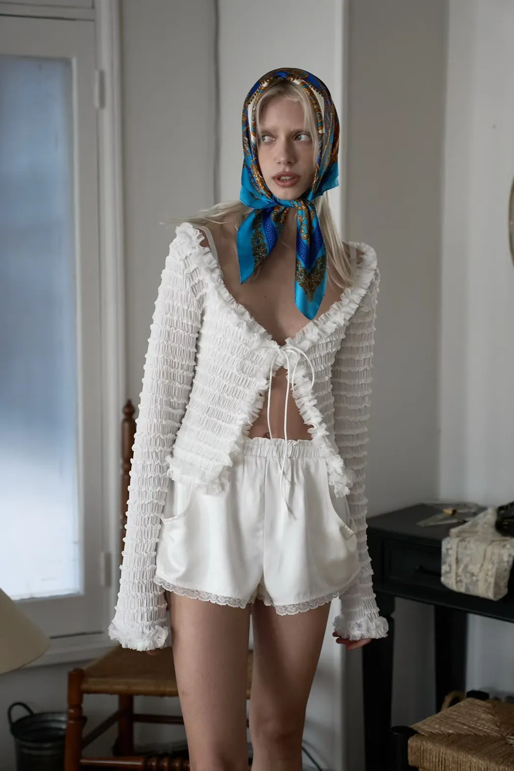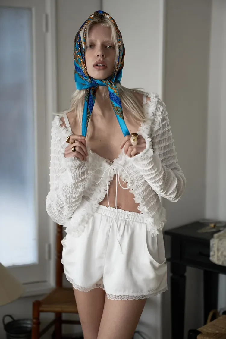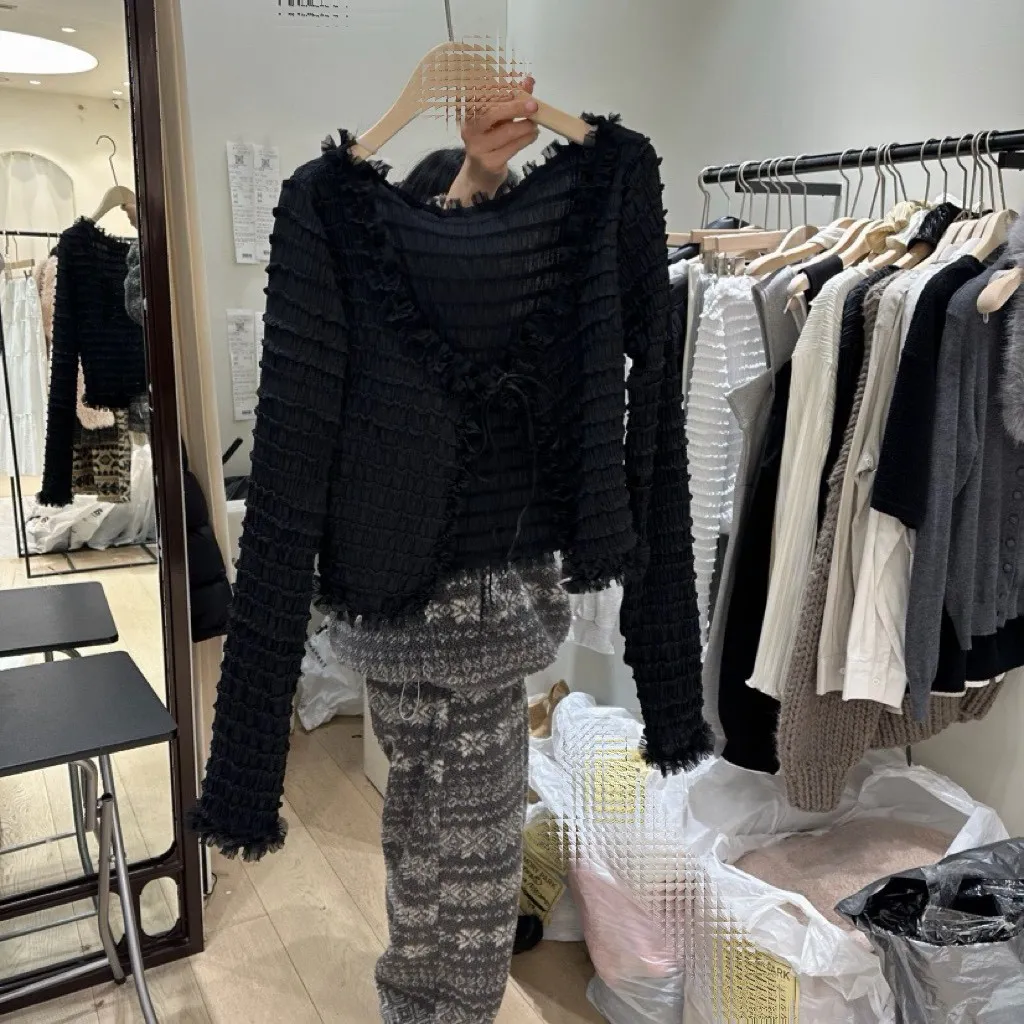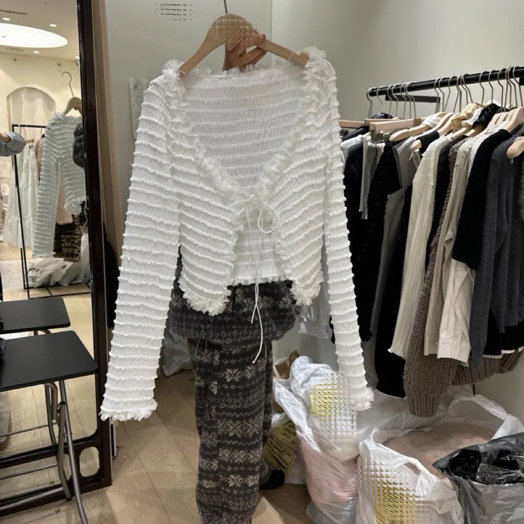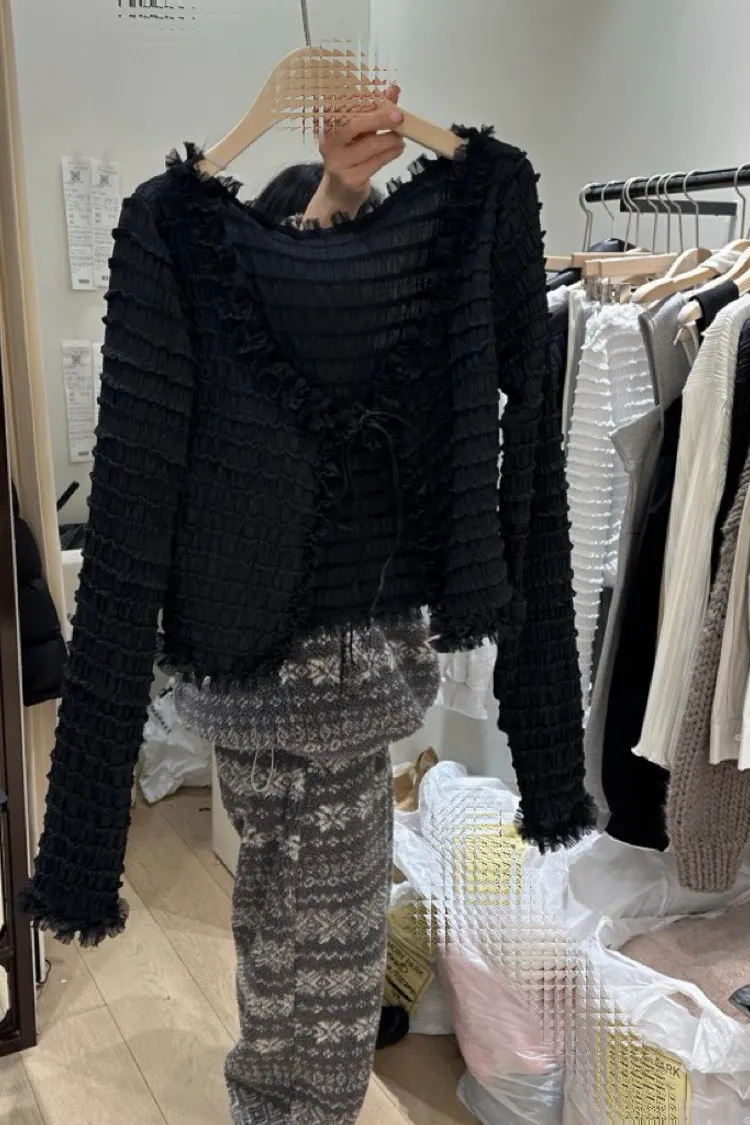 波浪花紋滾邊罩衫