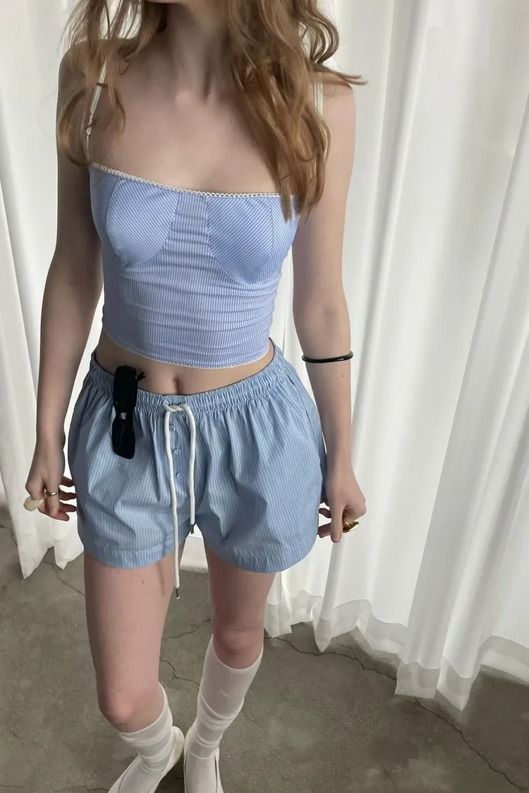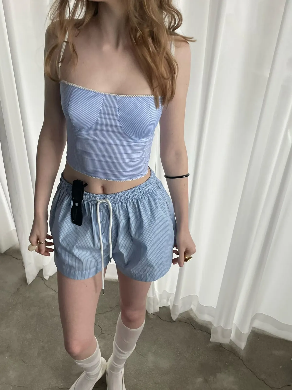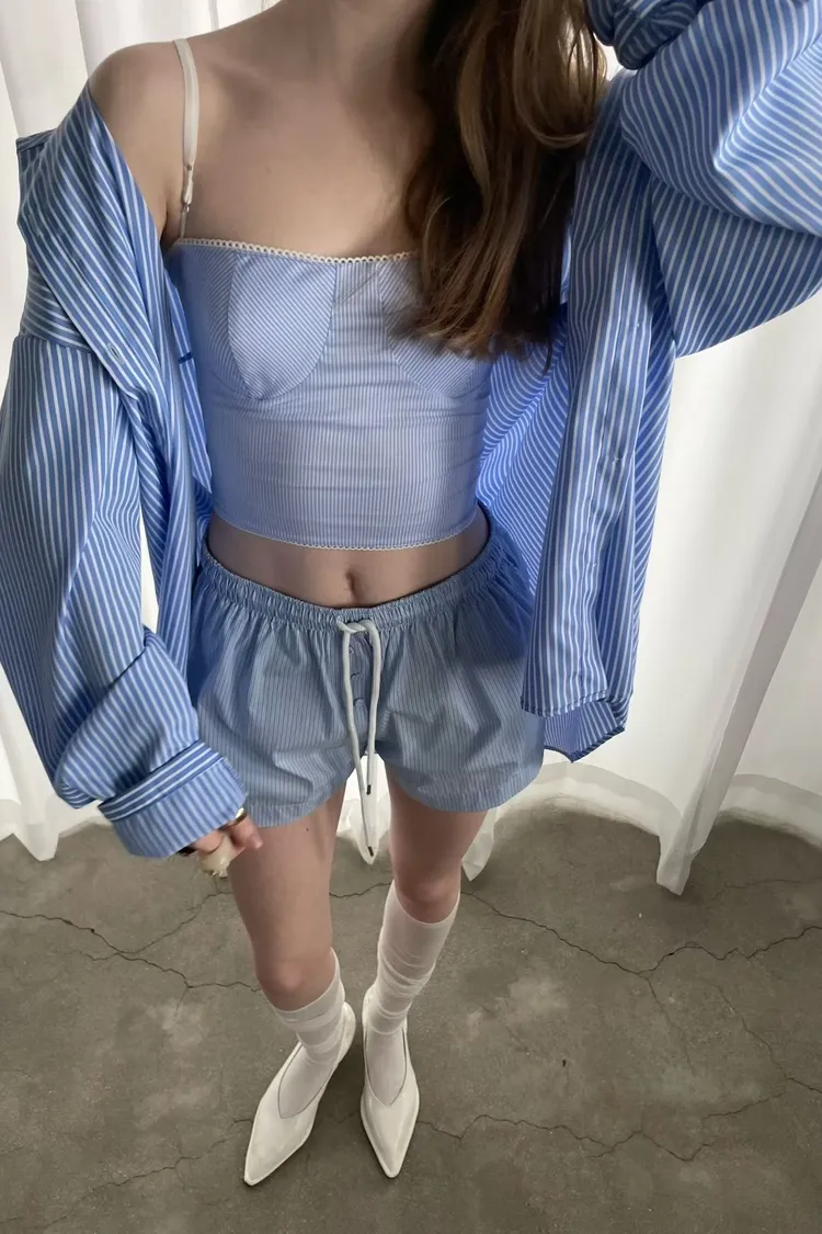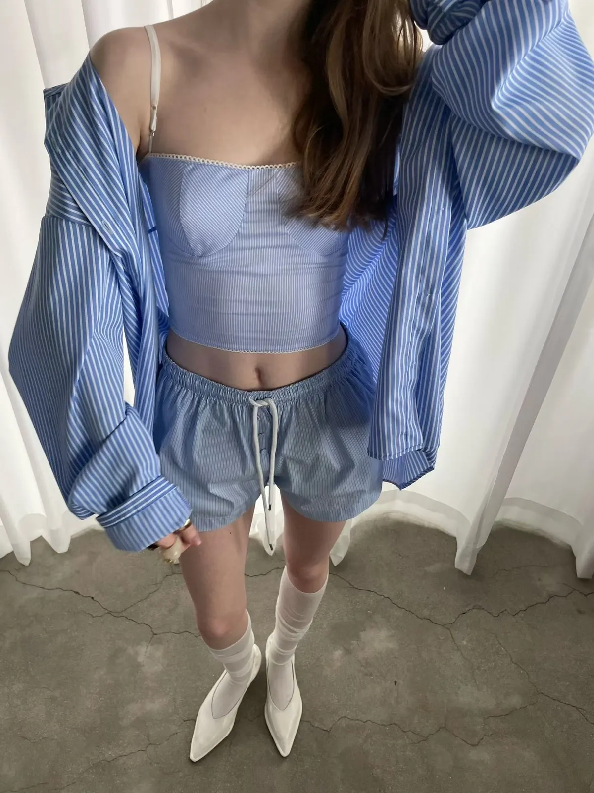 慵懶氛圍3件組/綁帶抽繩短褲+蕾絲邊小可愛+翻領襯衫