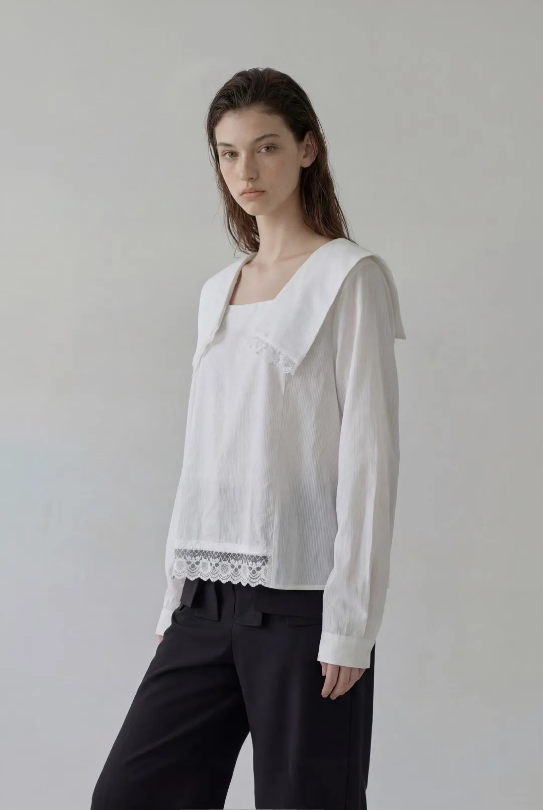 可拆披肩蕾絲拼接上衣