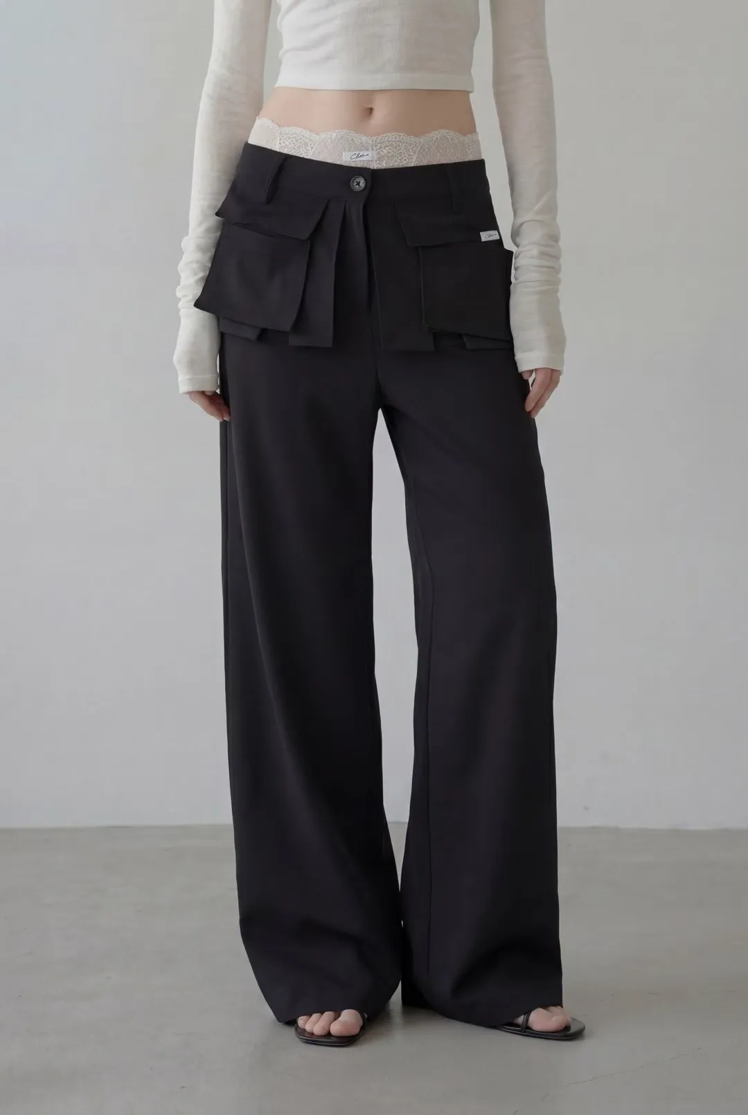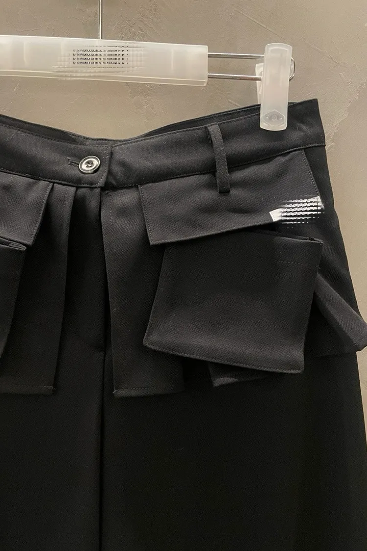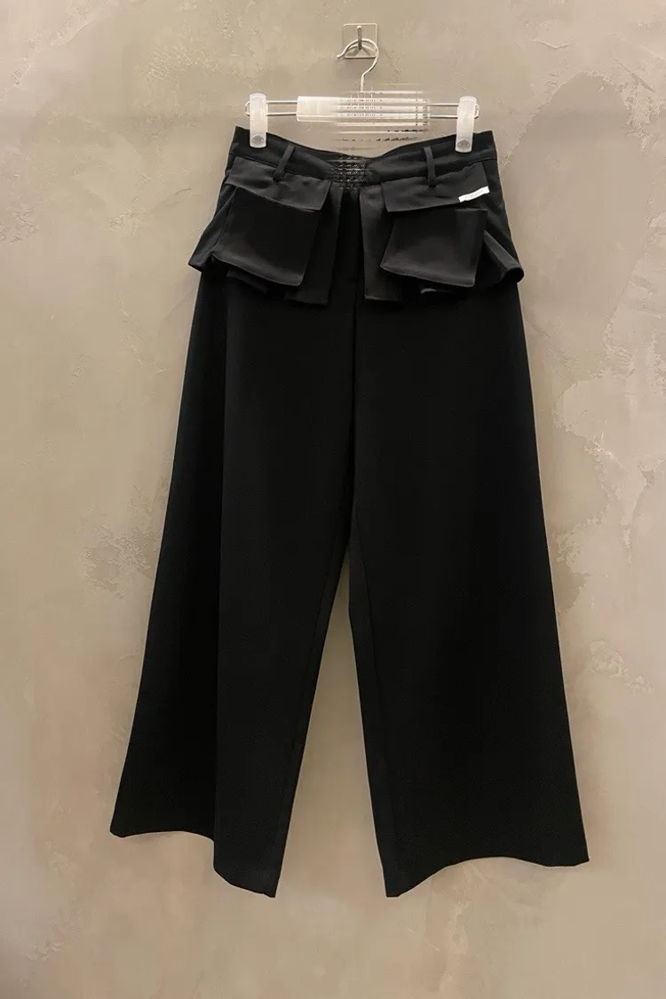 口袋造型高腰寬版長褲