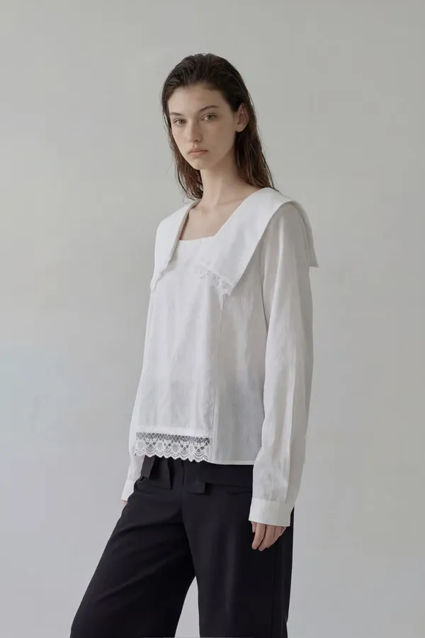 可拆披肩蕾絲拼接上衣