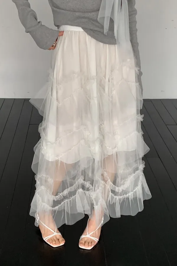 多層荷葉紗紗蛋糕長裙