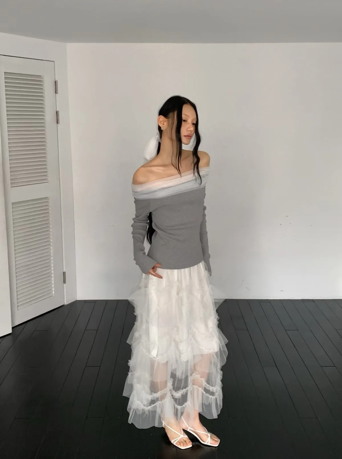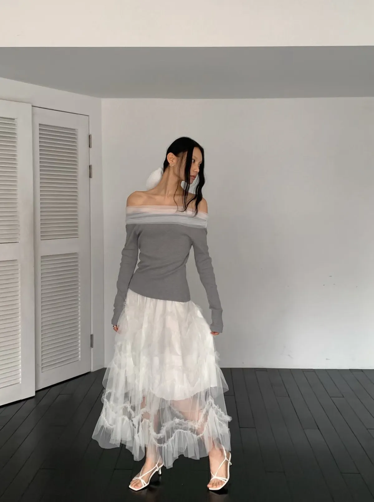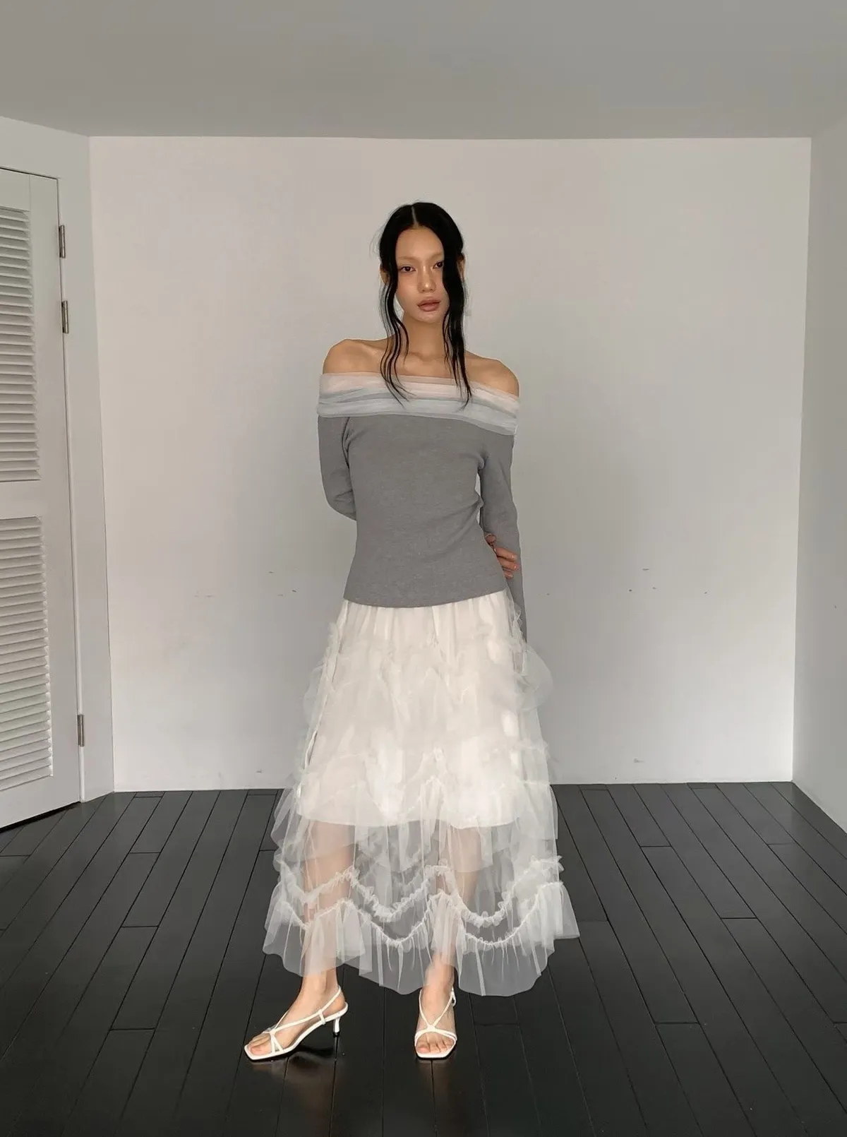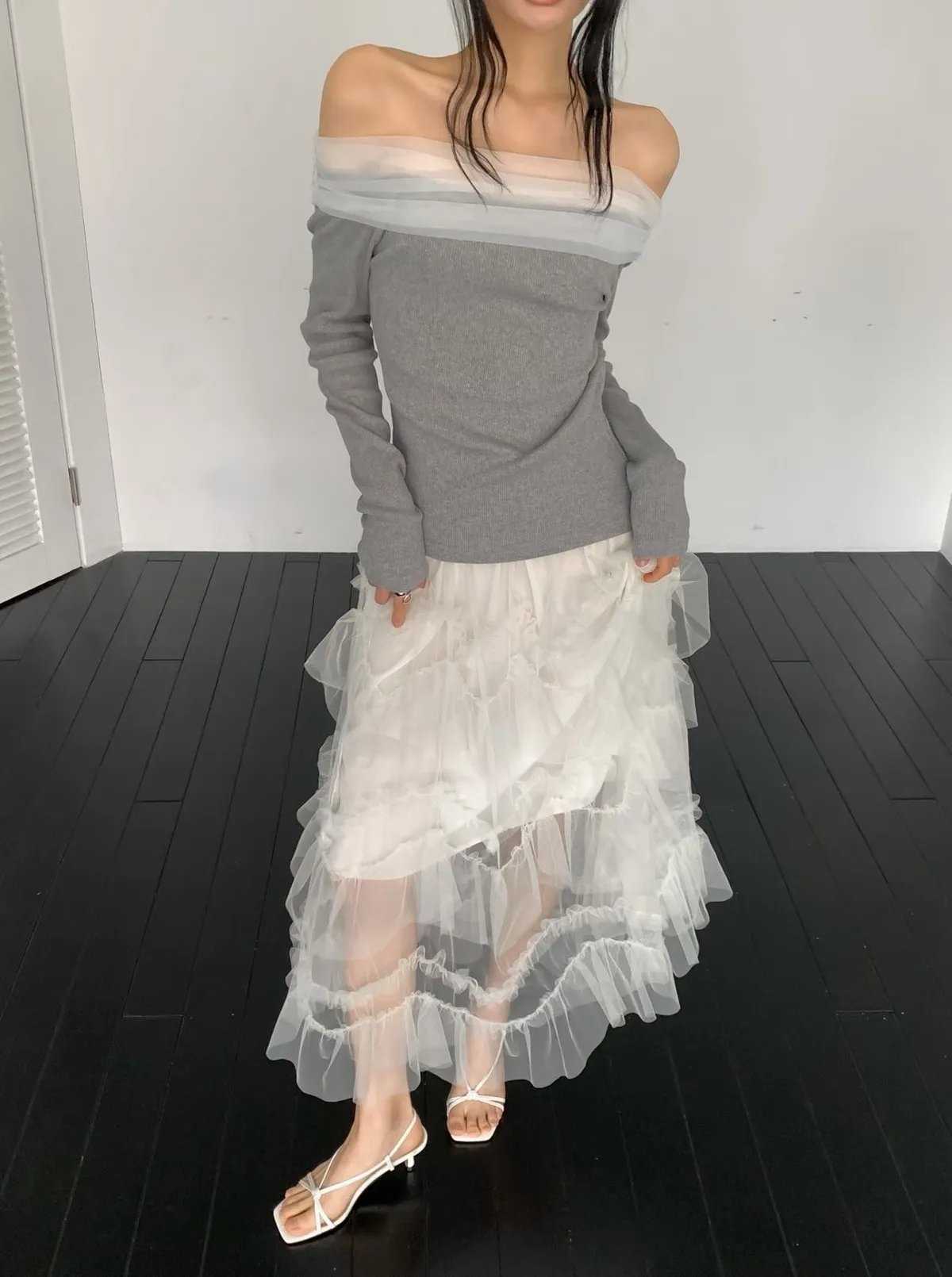 多層荷葉紗紗蛋糕長裙