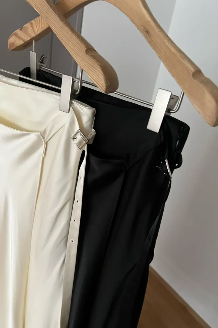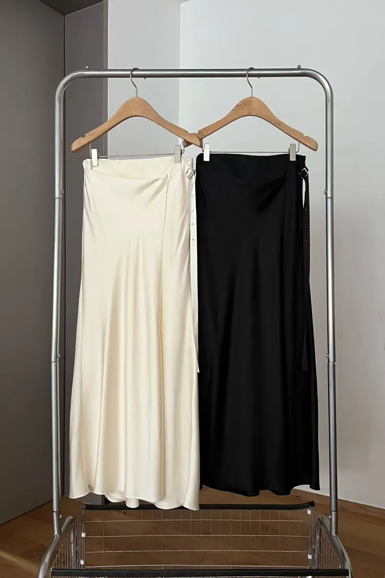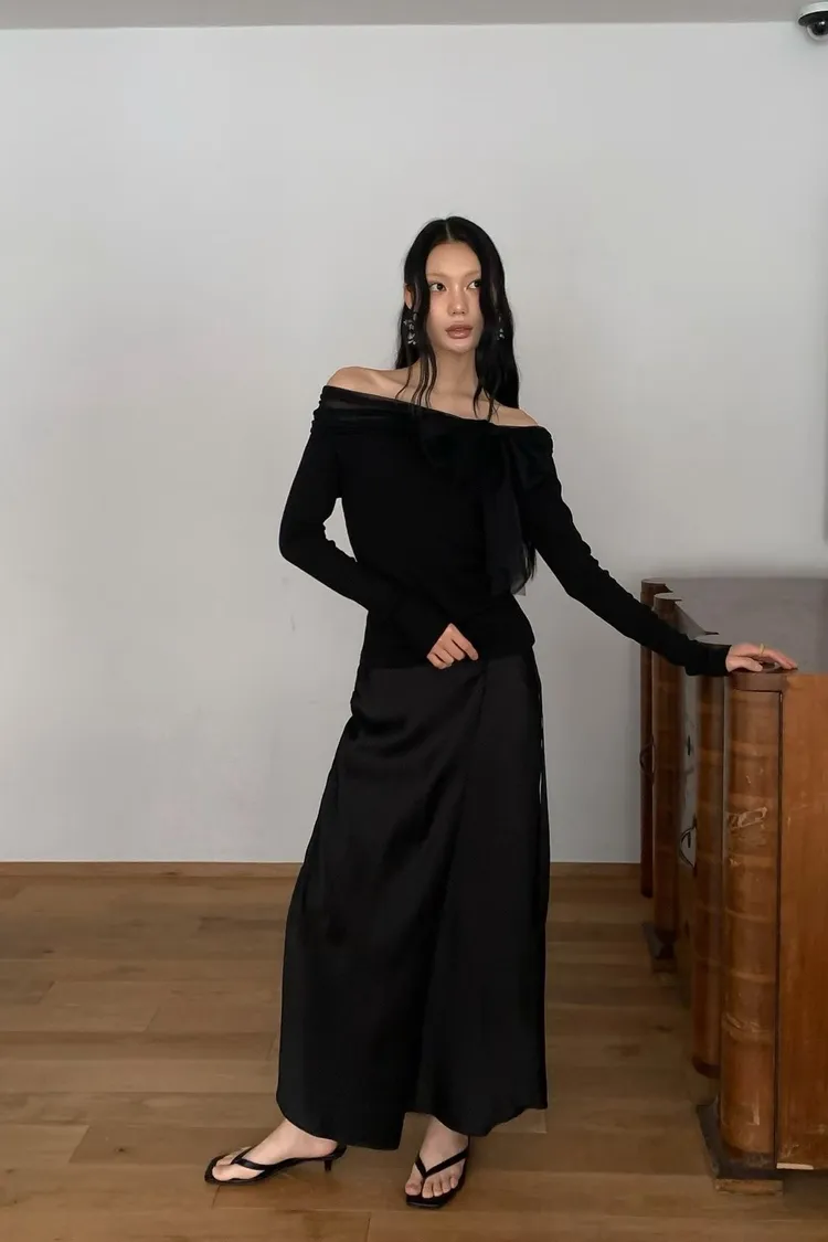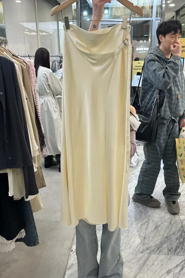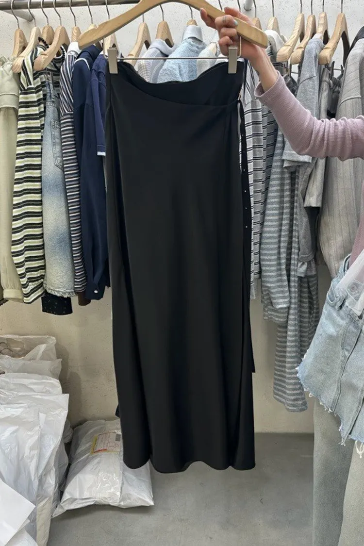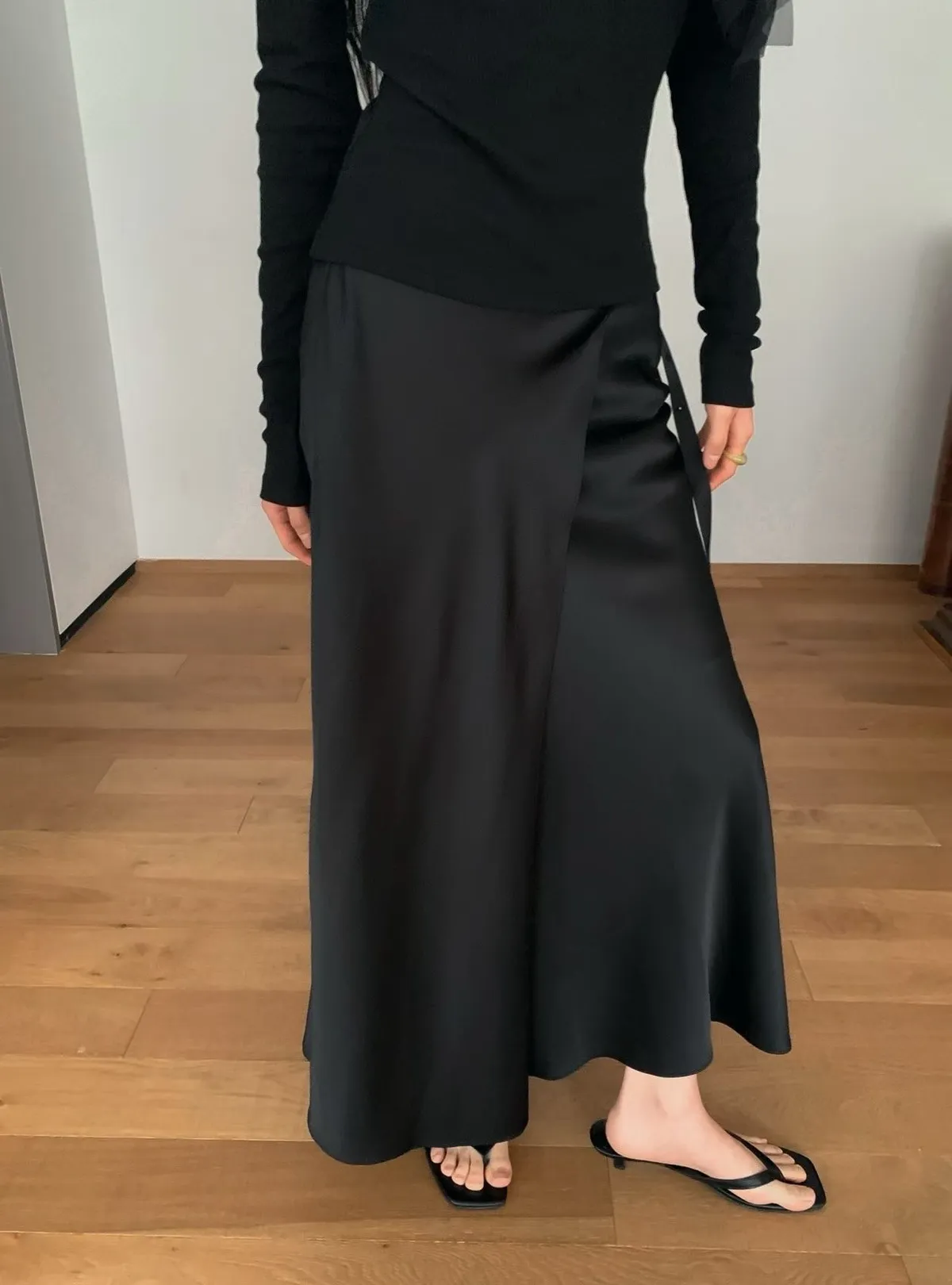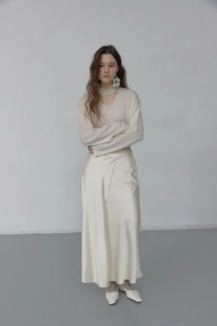 緞面垂墜感不對稱設計長裙