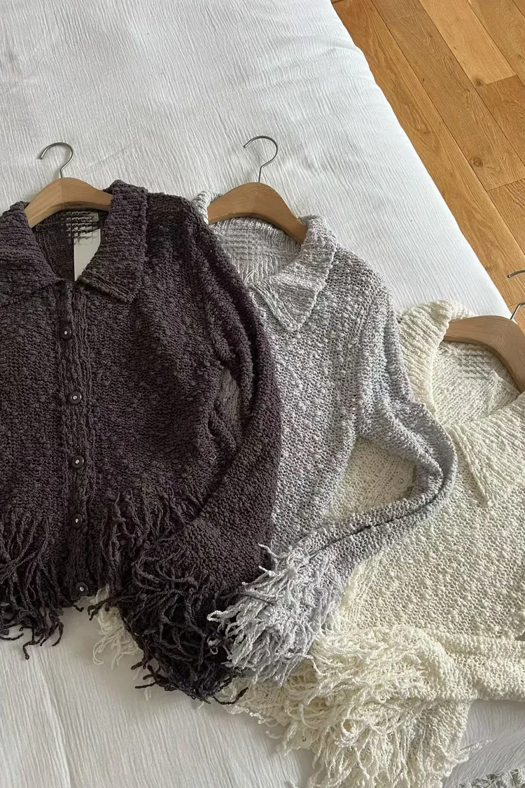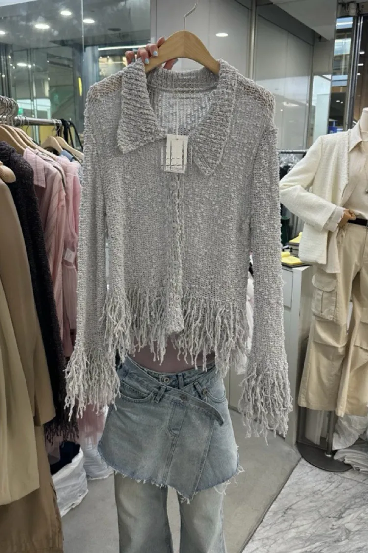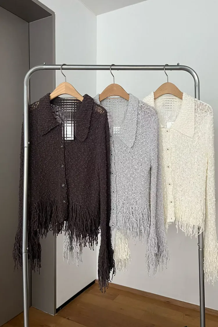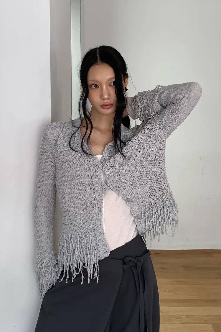 流蘇針織排扣短版開襟外套