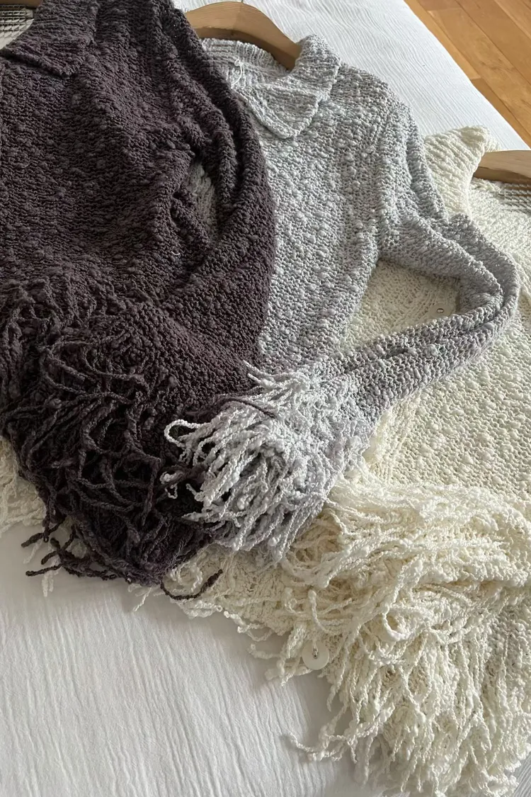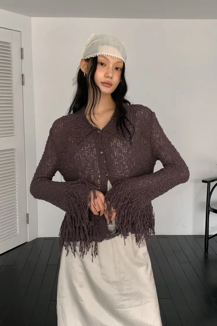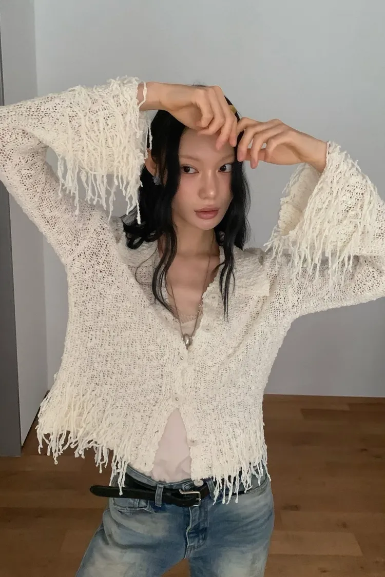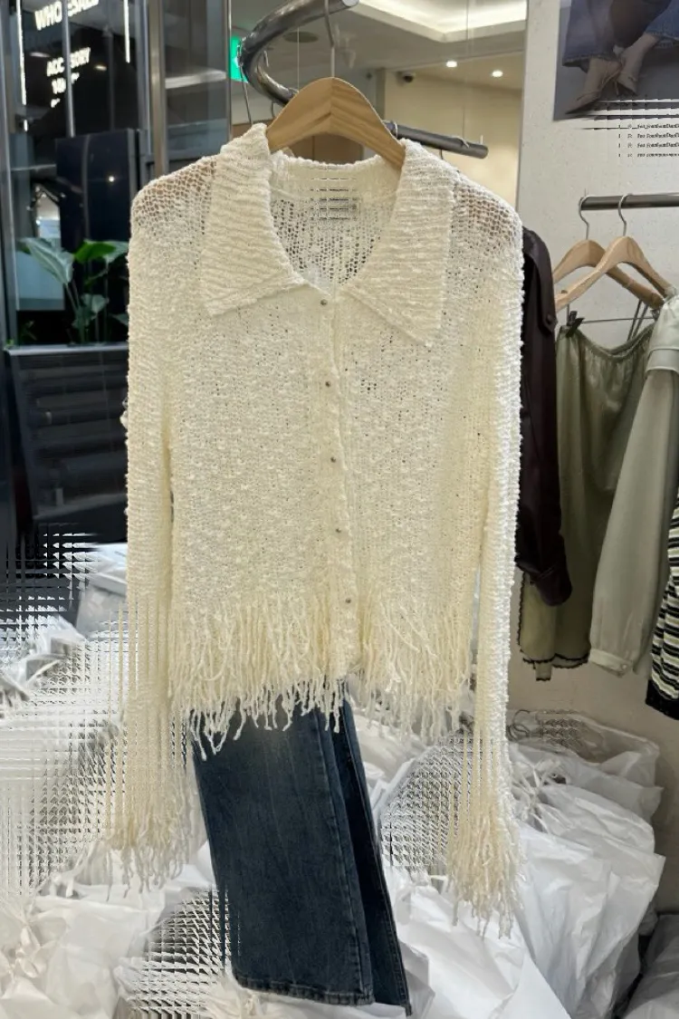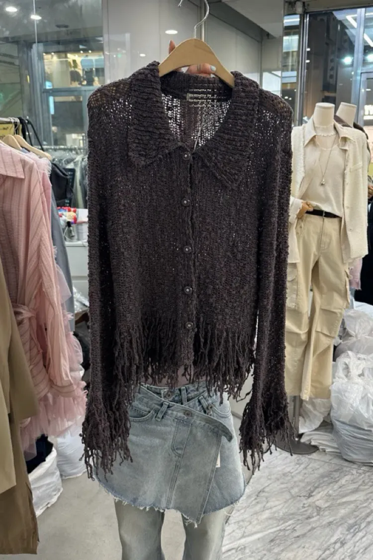 流蘇針織排扣短版開襟外套