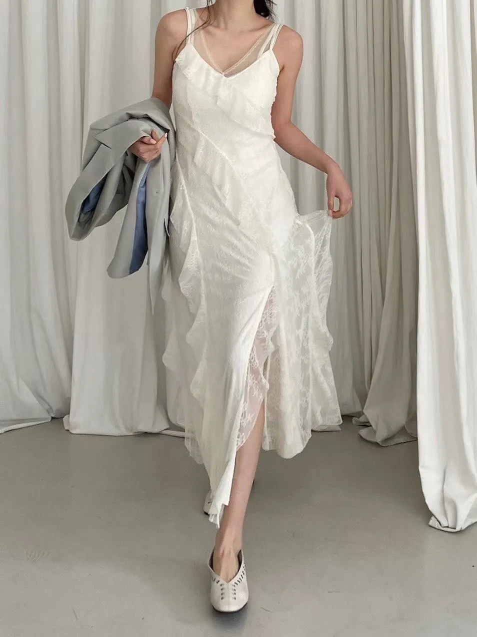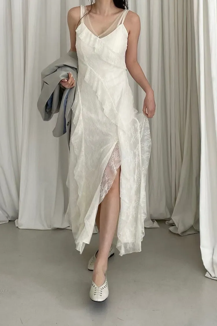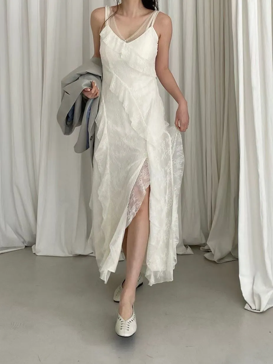 浪漫交錯蕾絲細肩洋裝