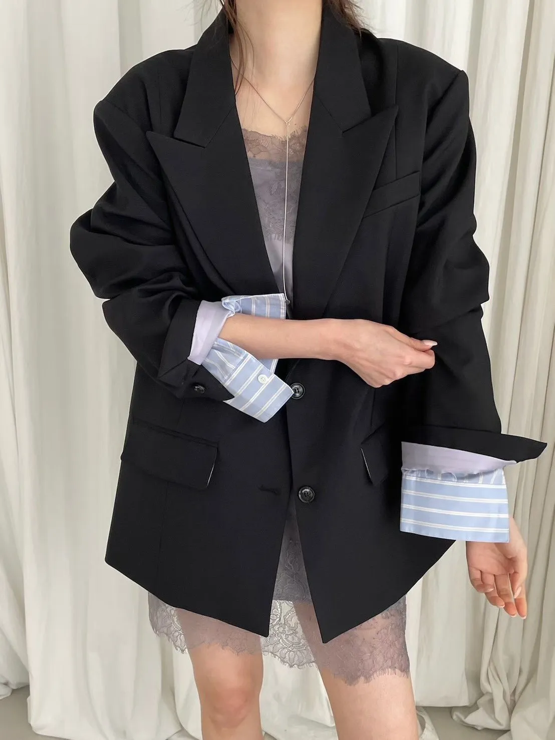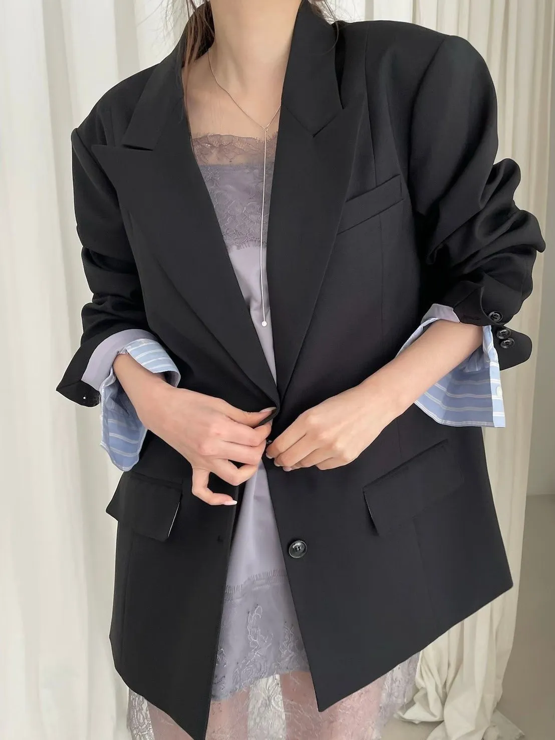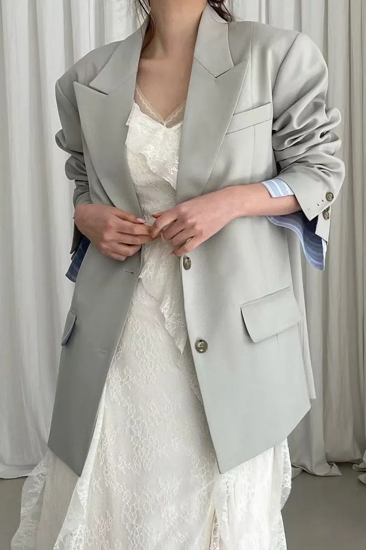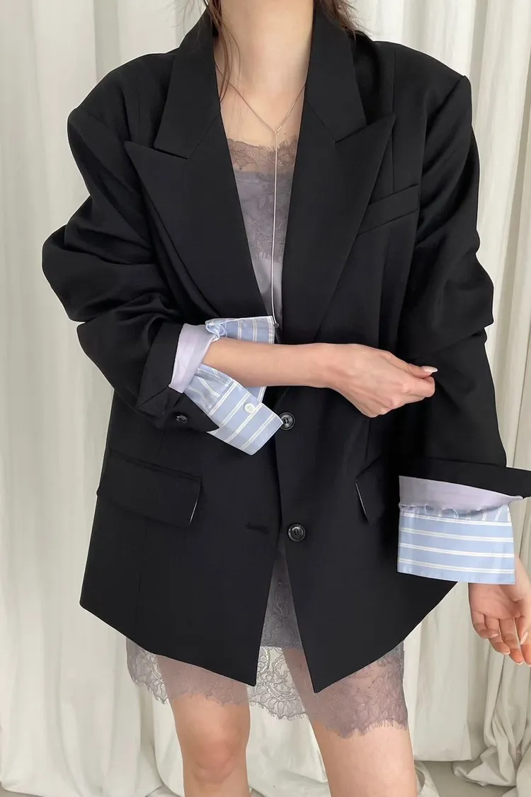 袖口拚條紋釦寬鬆西外