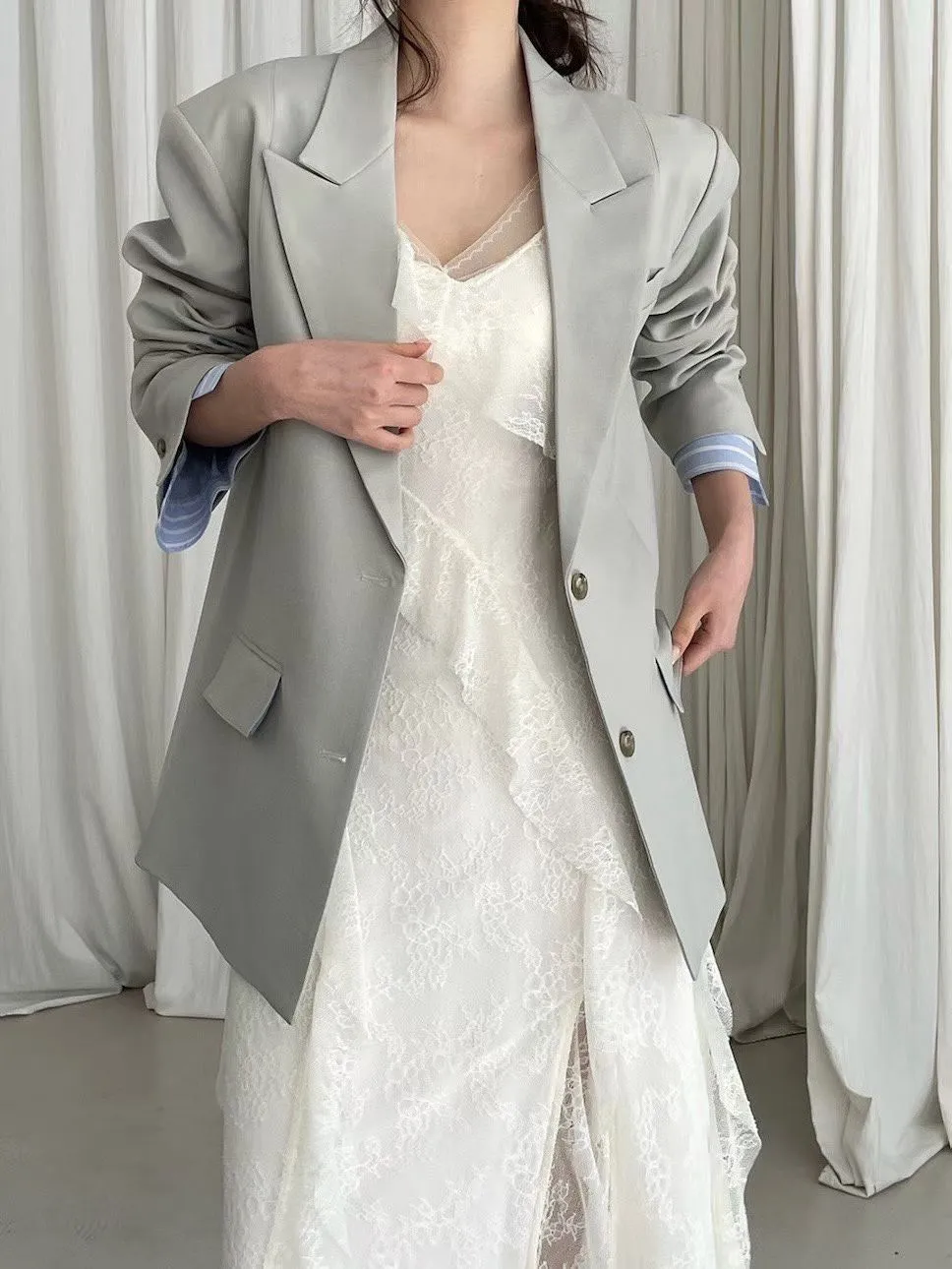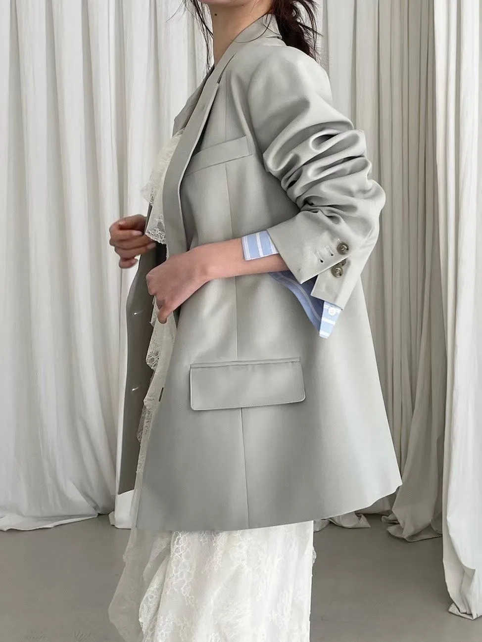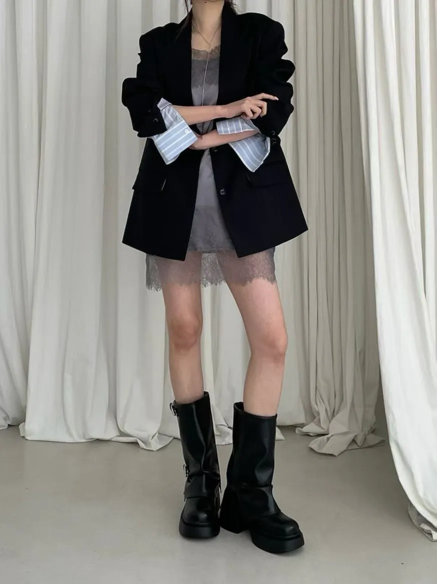 袖口拚條紋釦寬鬆西外