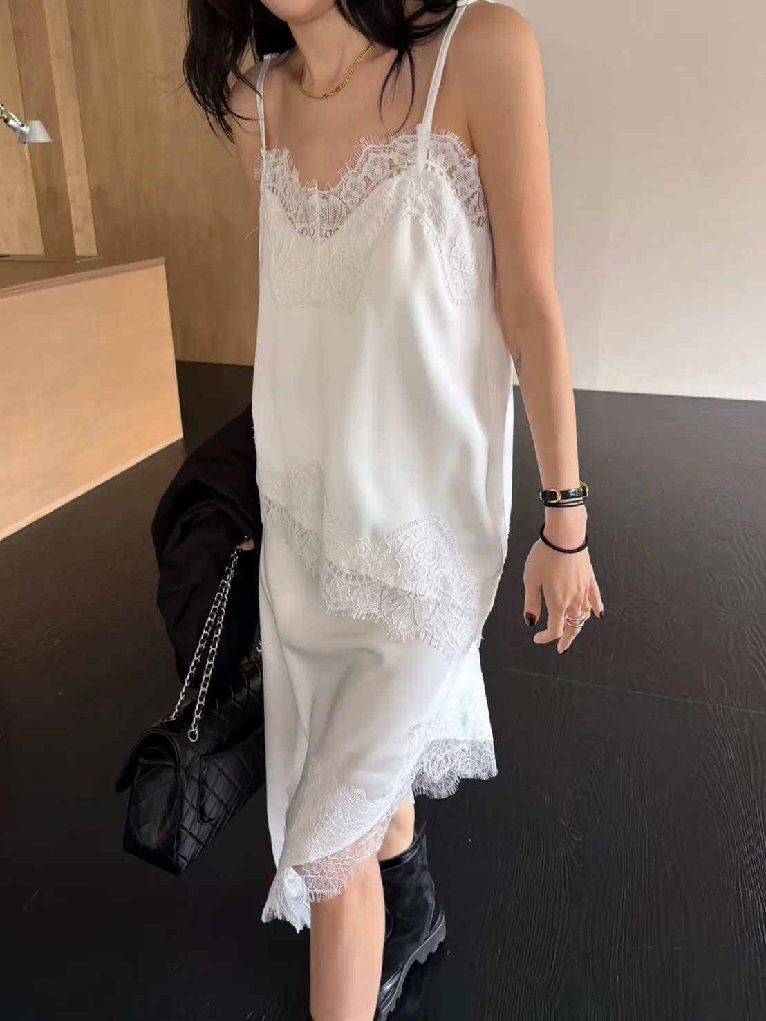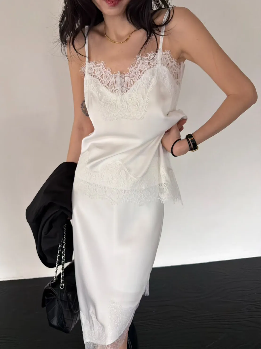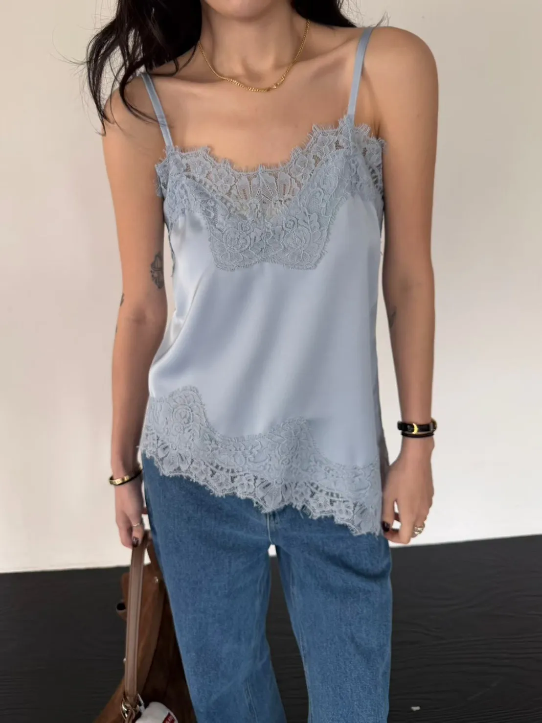 下擺斜邊蕾絲背心