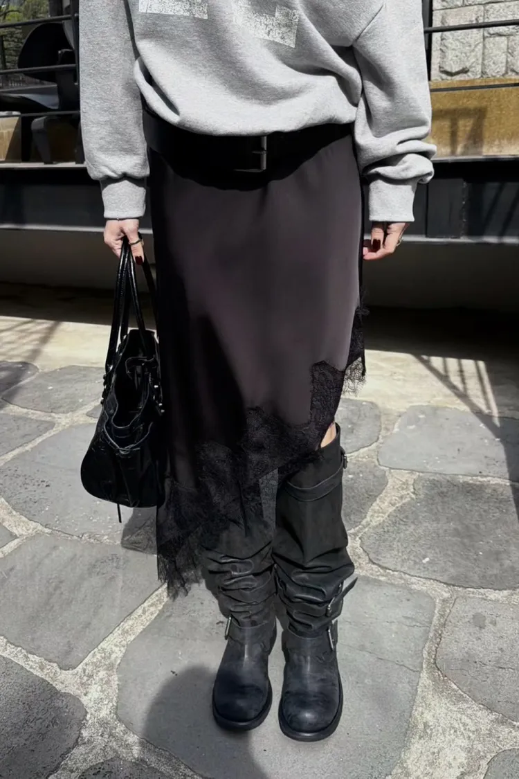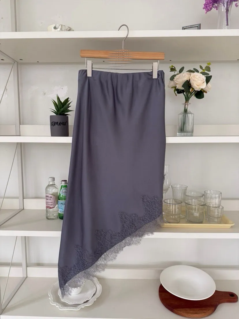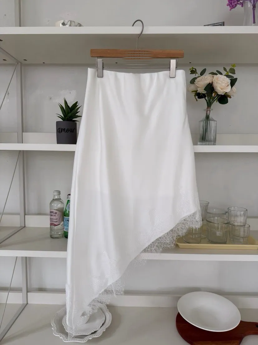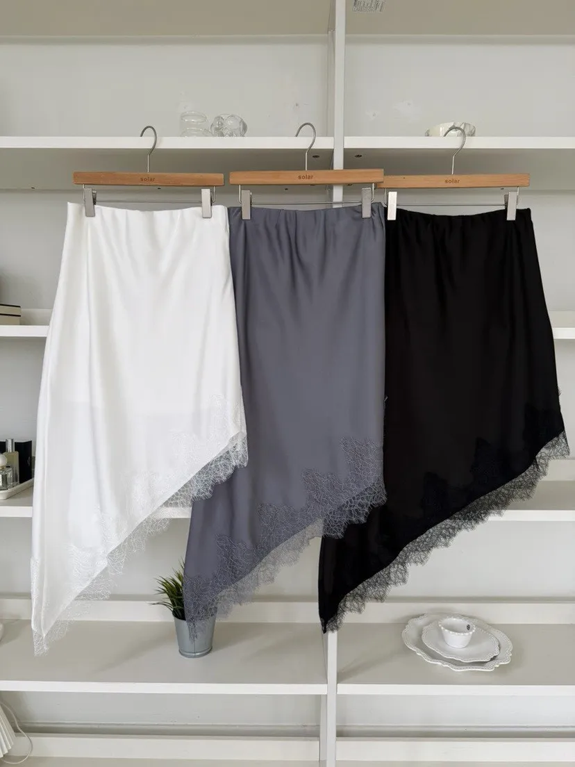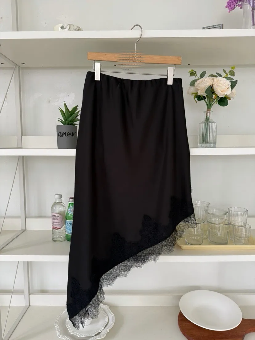 下擺斜邊蕾絲中長裙