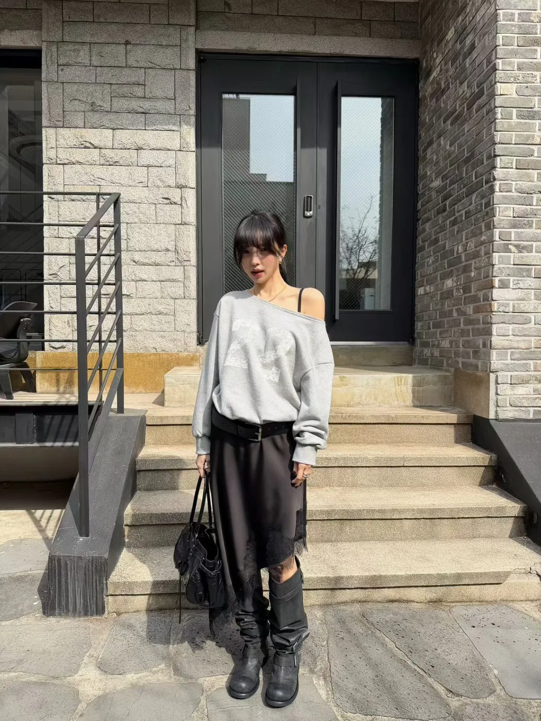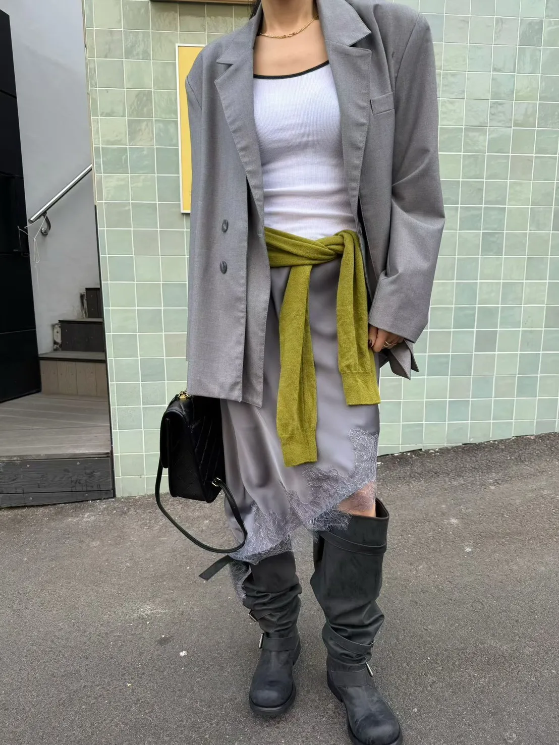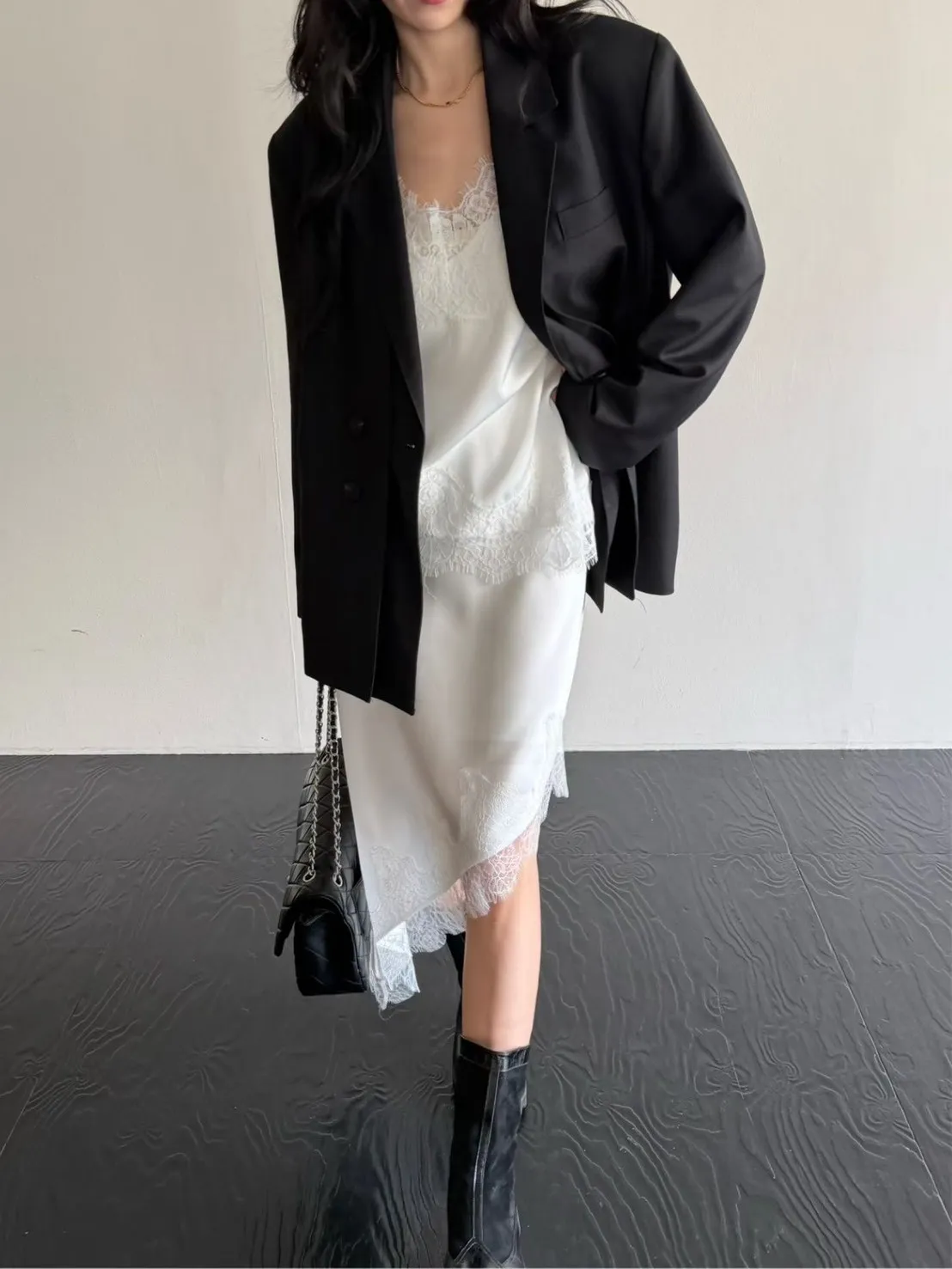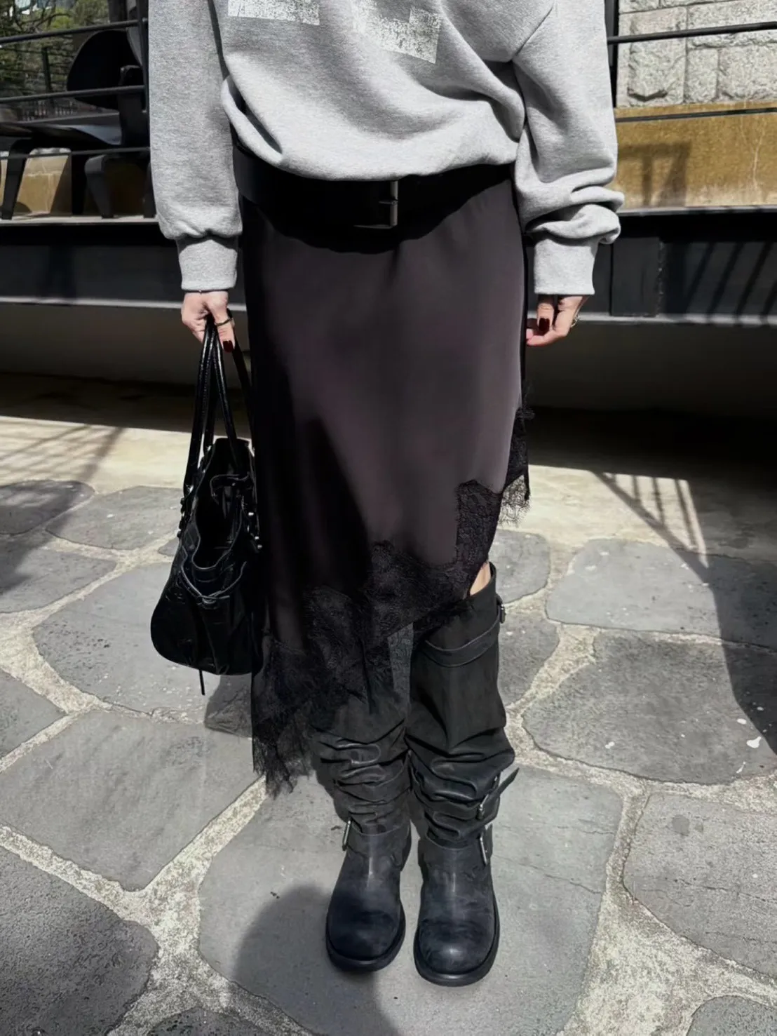 下擺斜邊蕾絲中長裙
