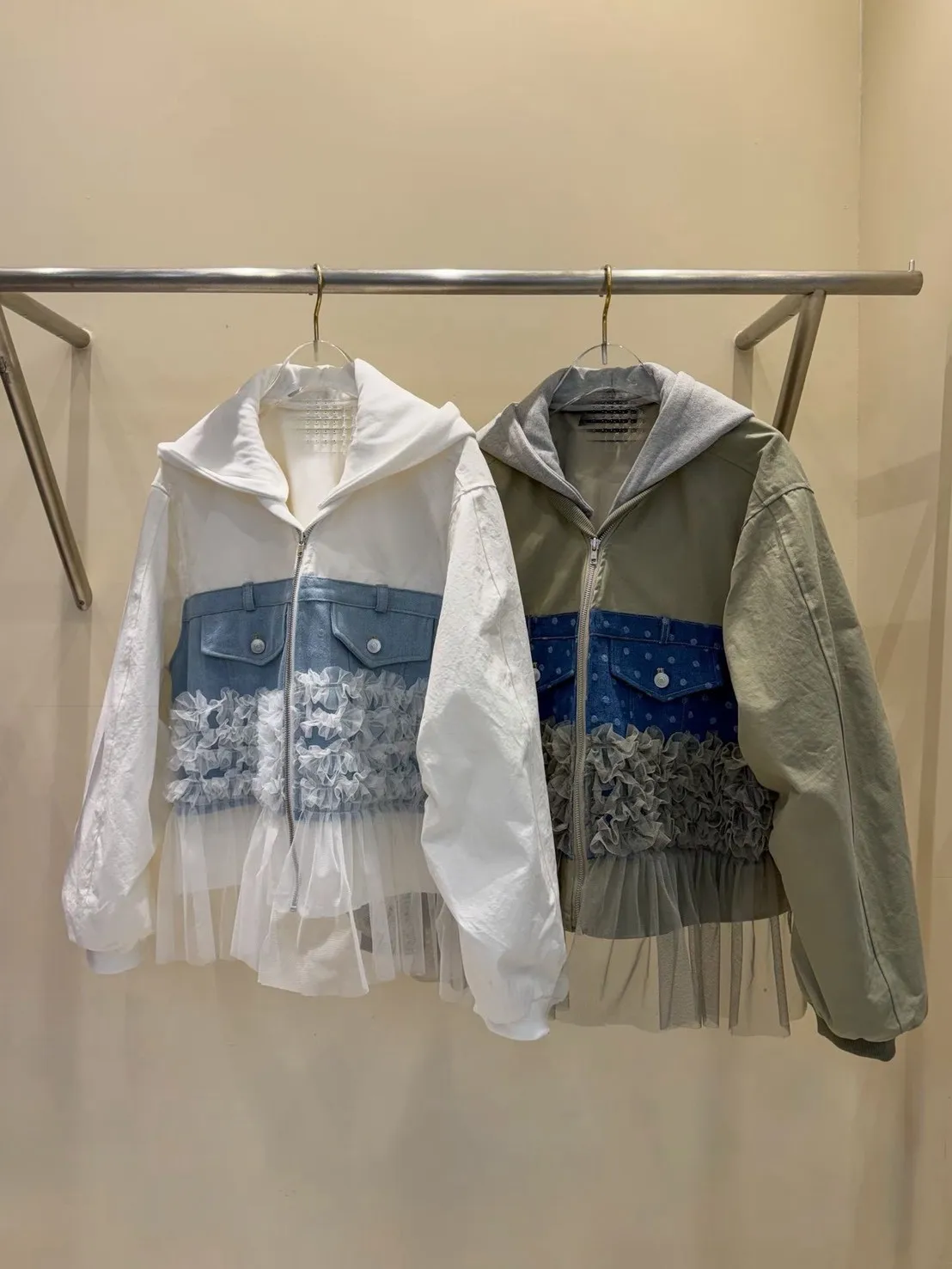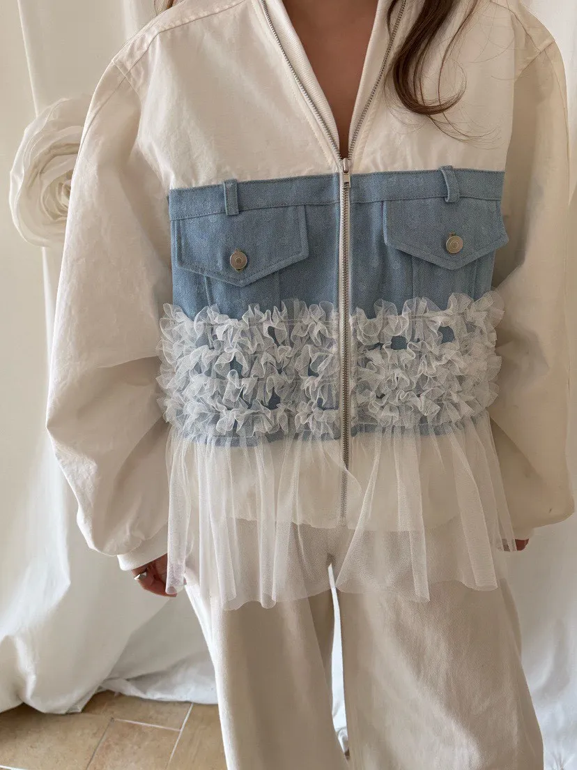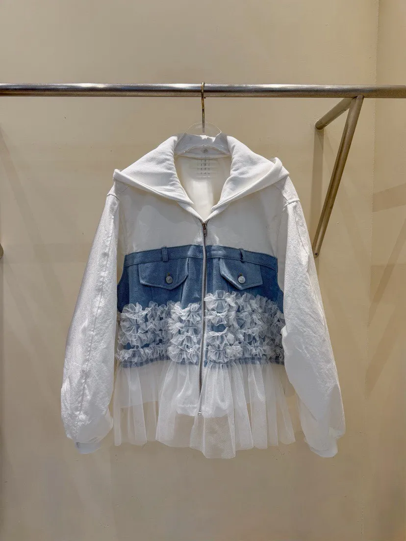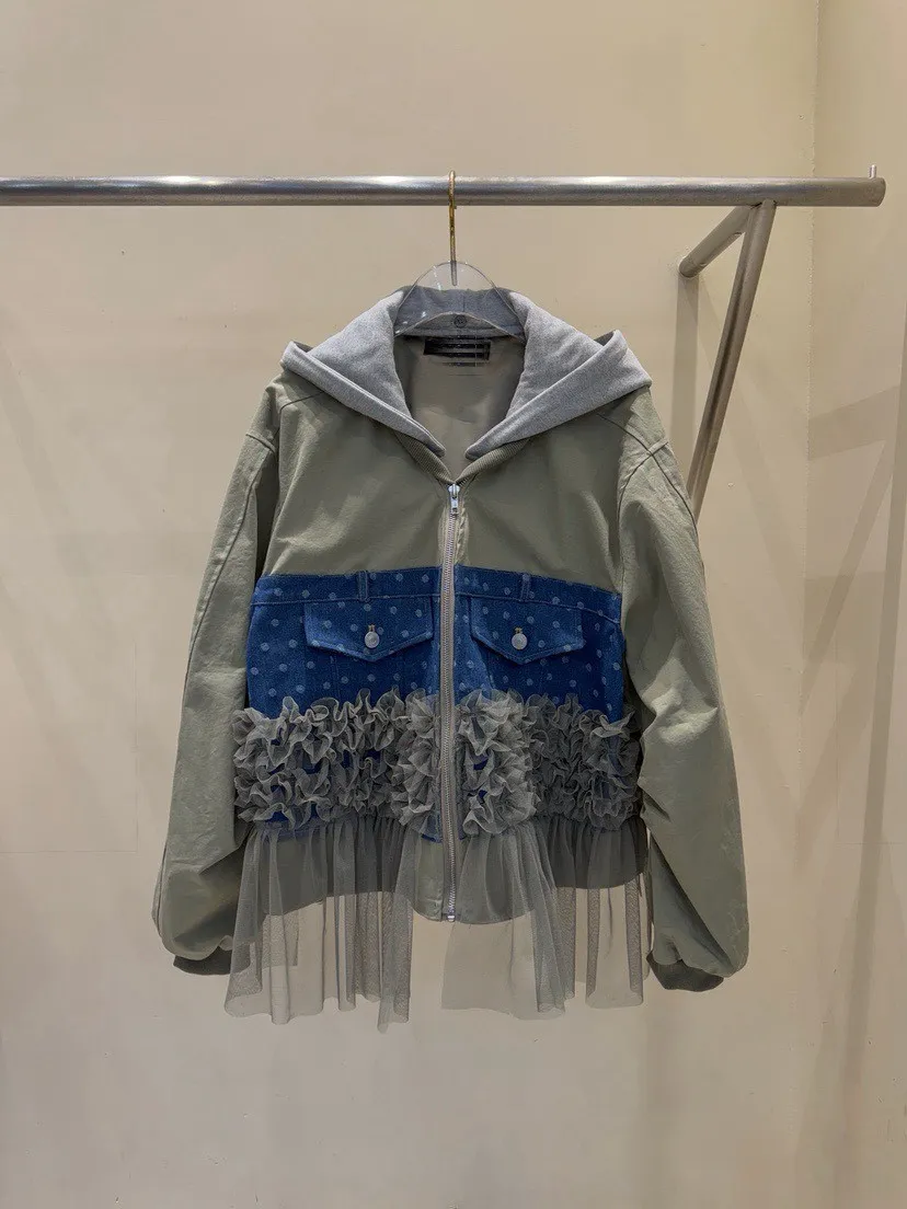 異材質拼口袋蕾絲外套