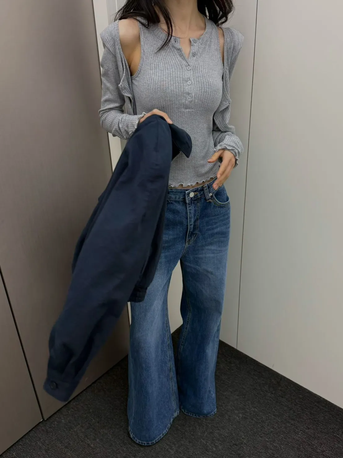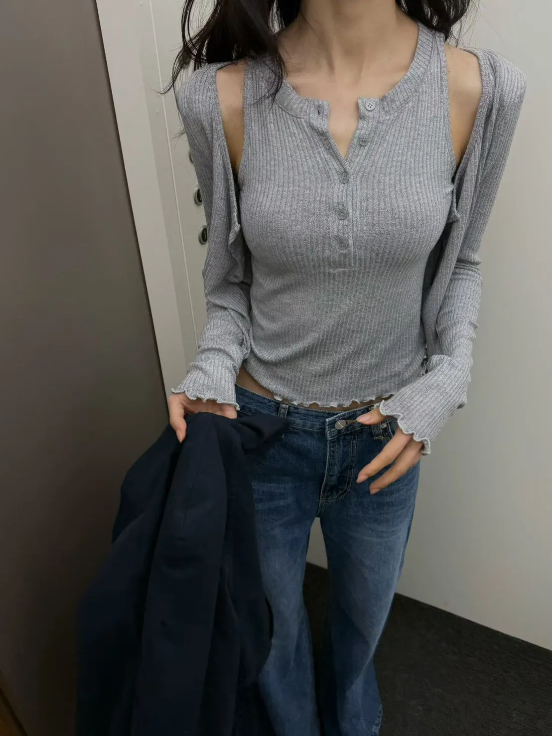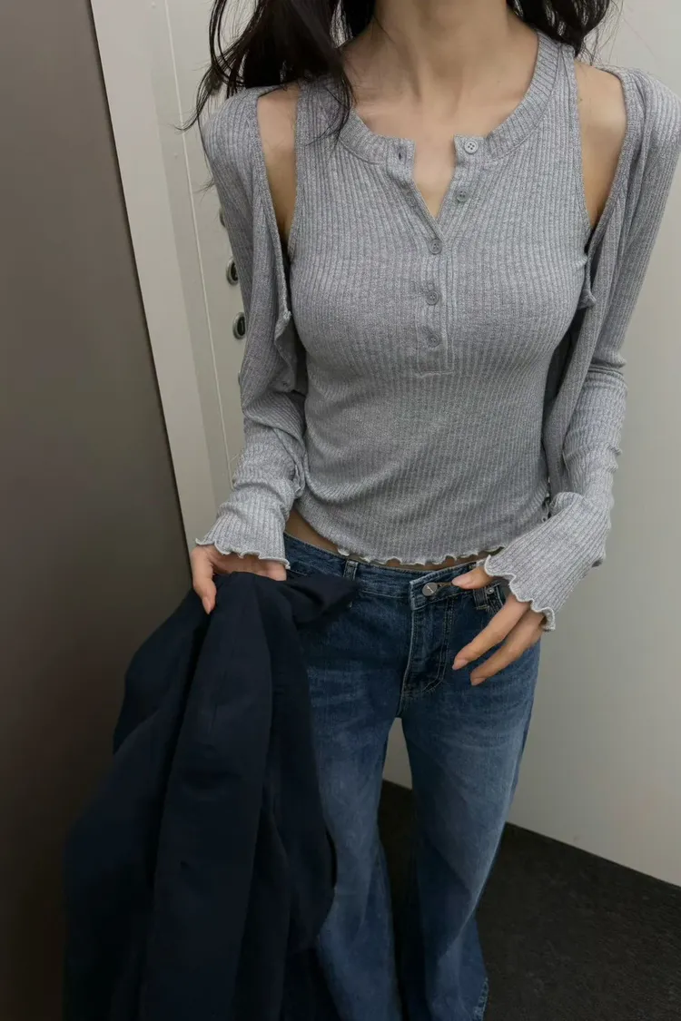 針織排釦背心+小外套