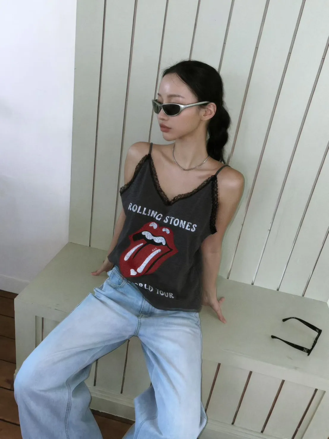 美式吐舌蕾絲背心
