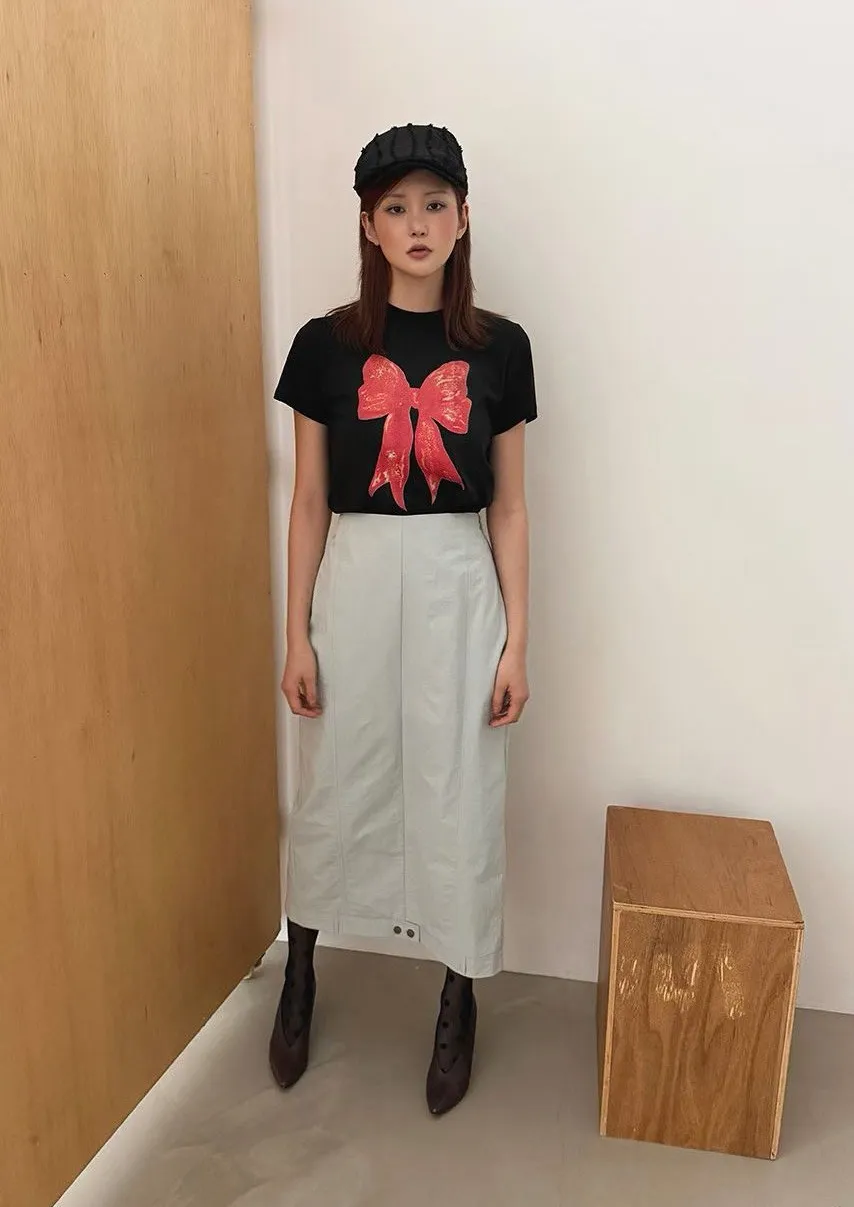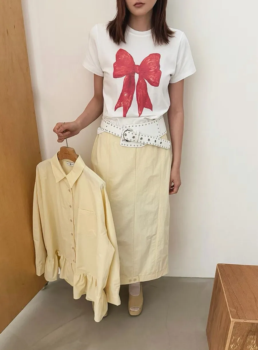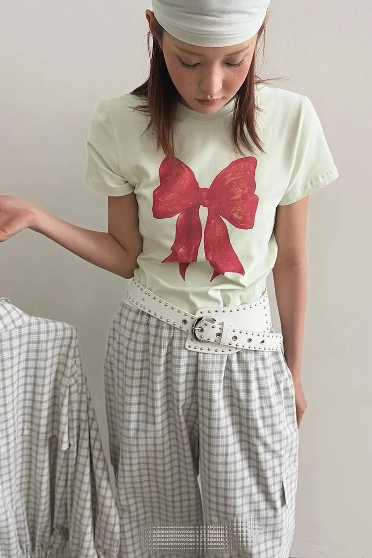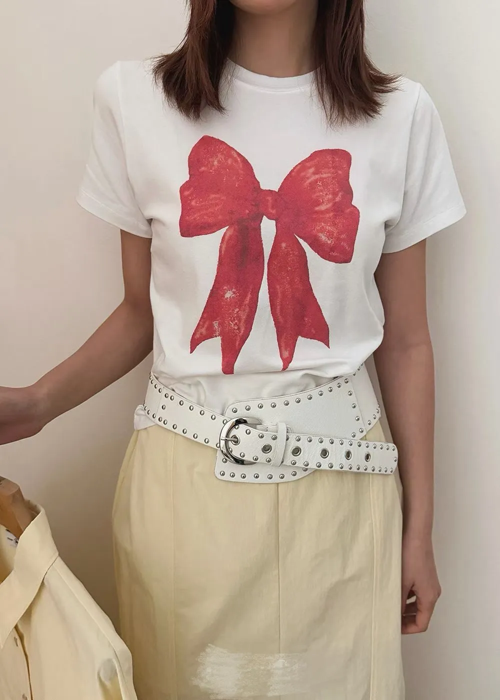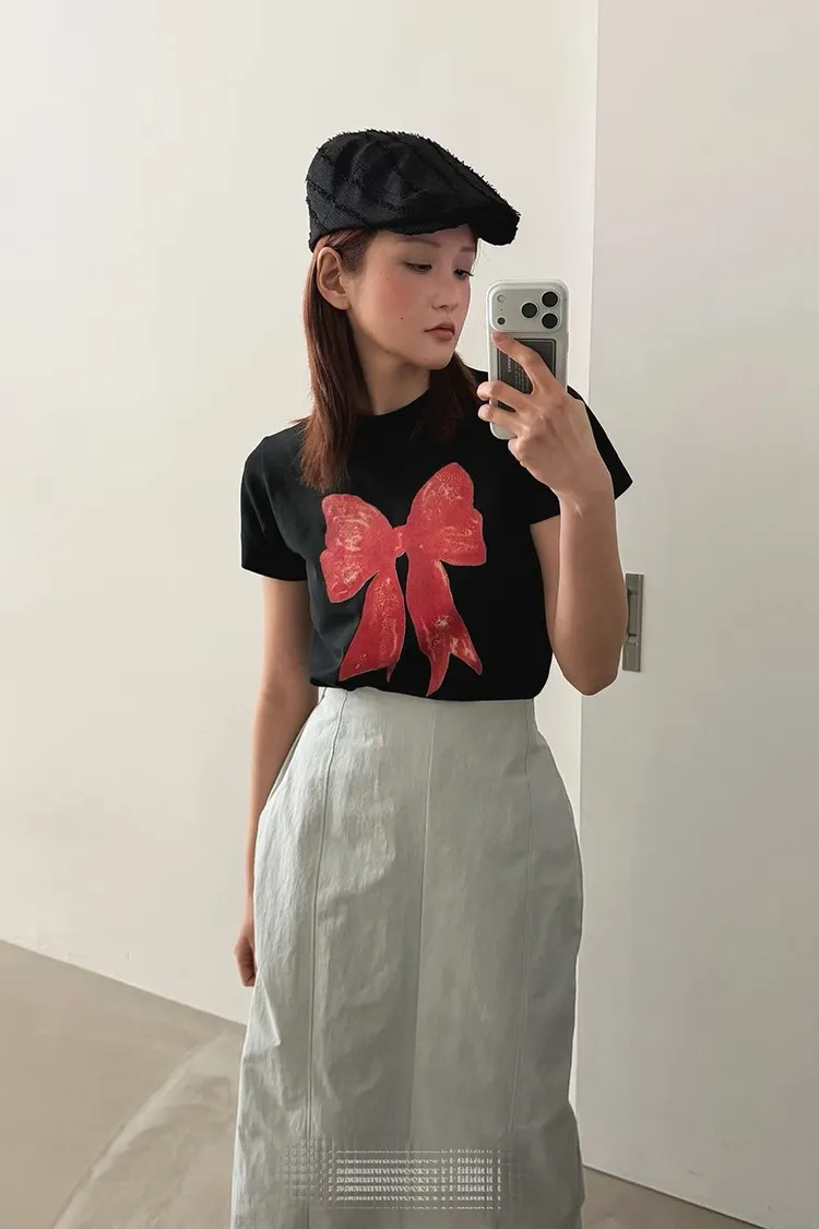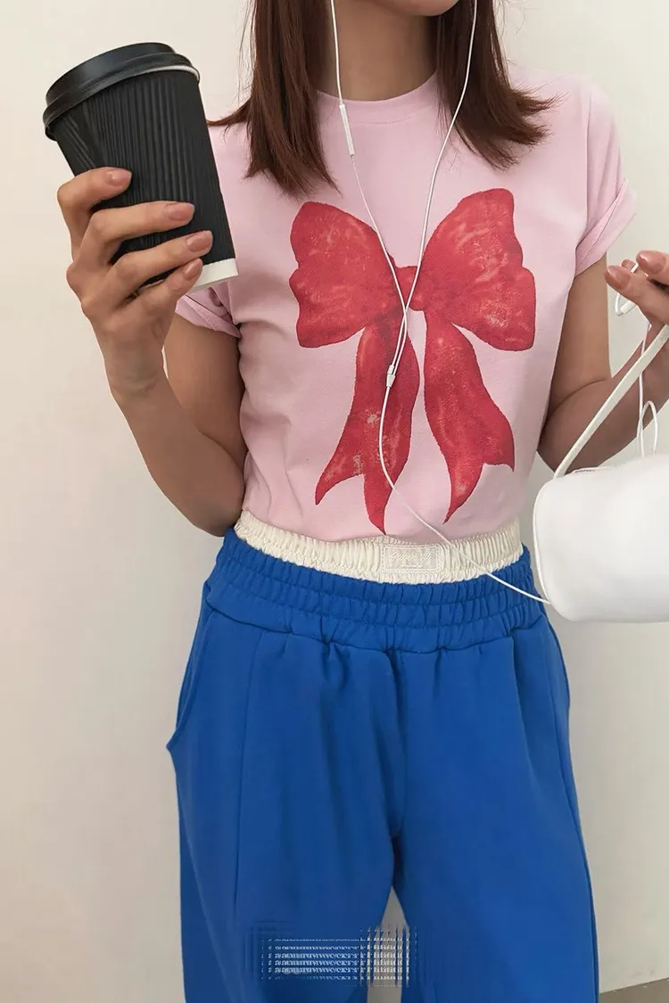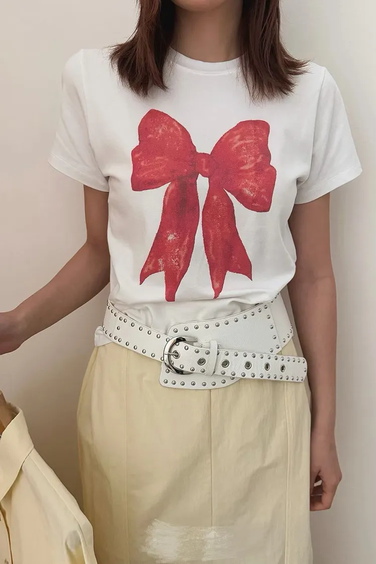 大紅蝴蝶結短袖上衣