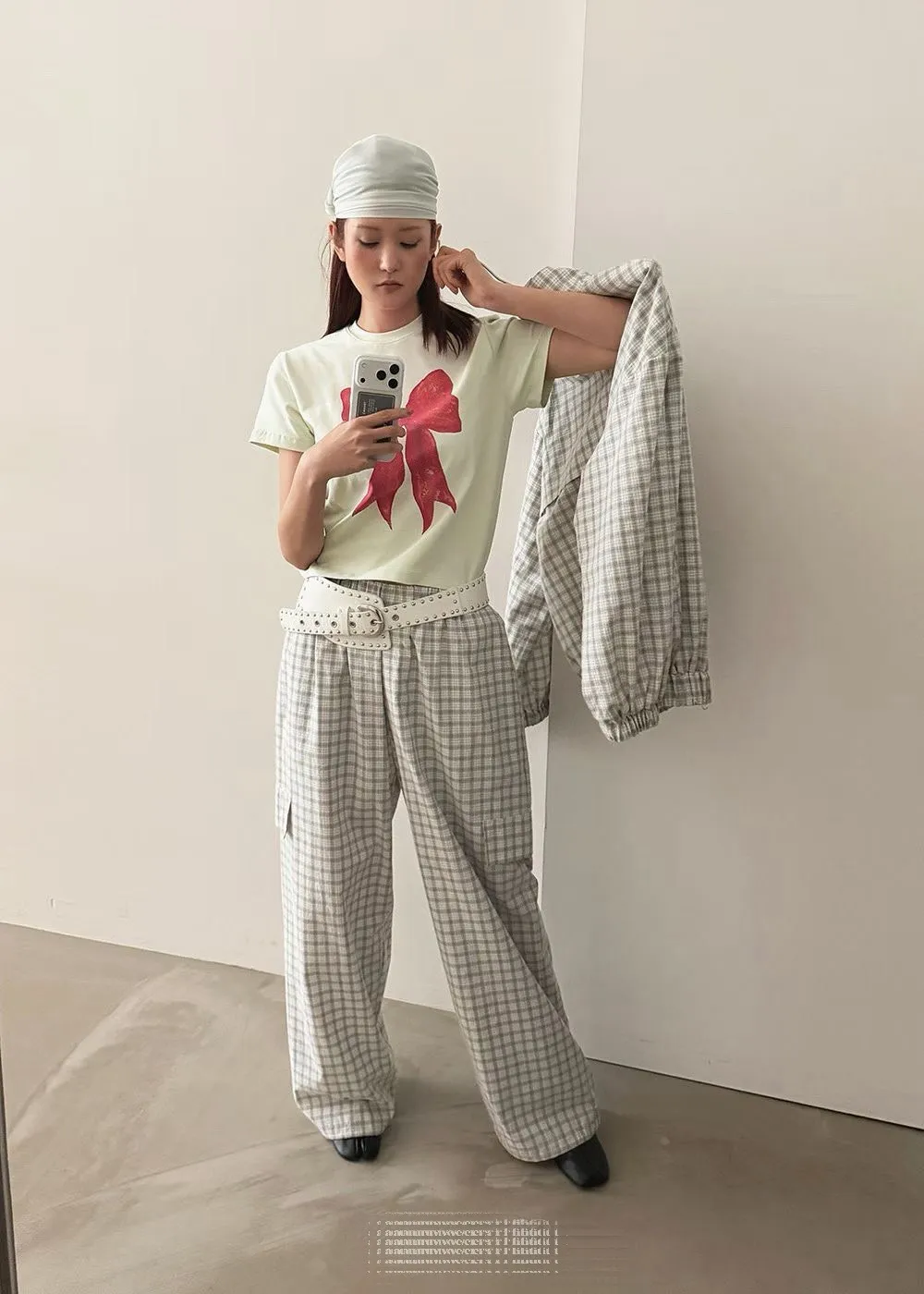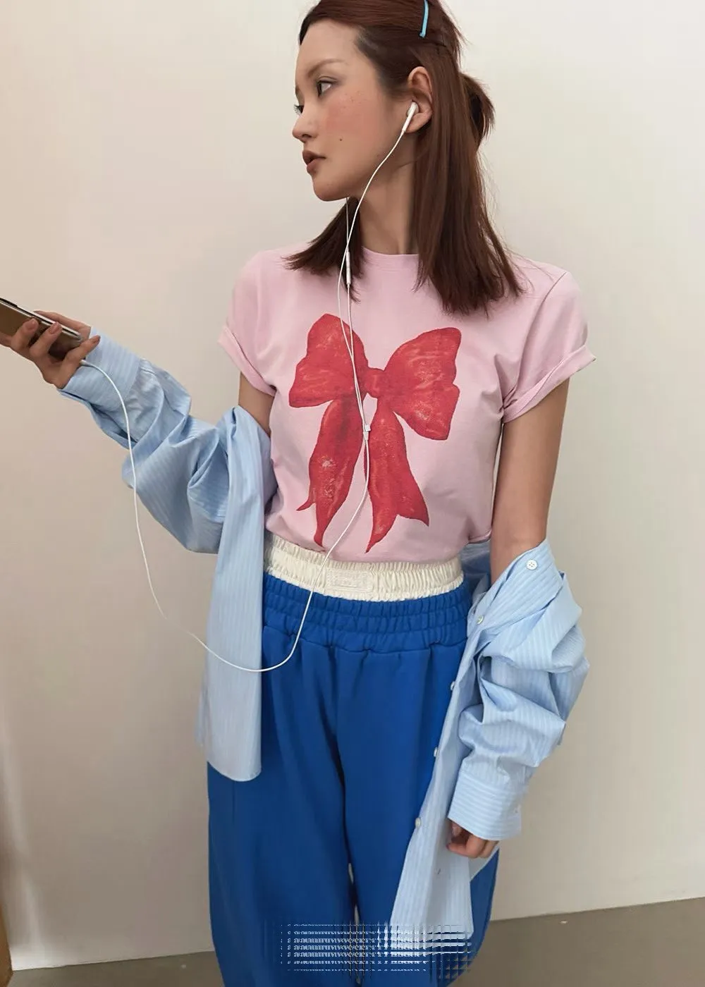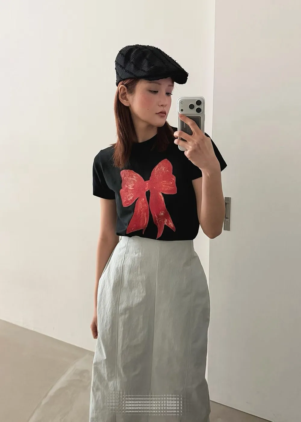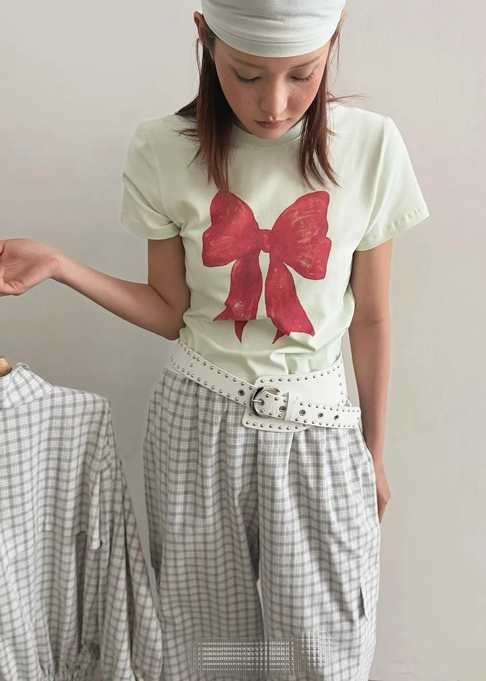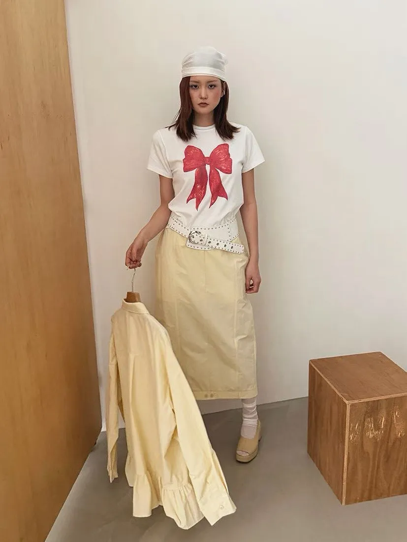 大紅蝴蝶結短袖上衣