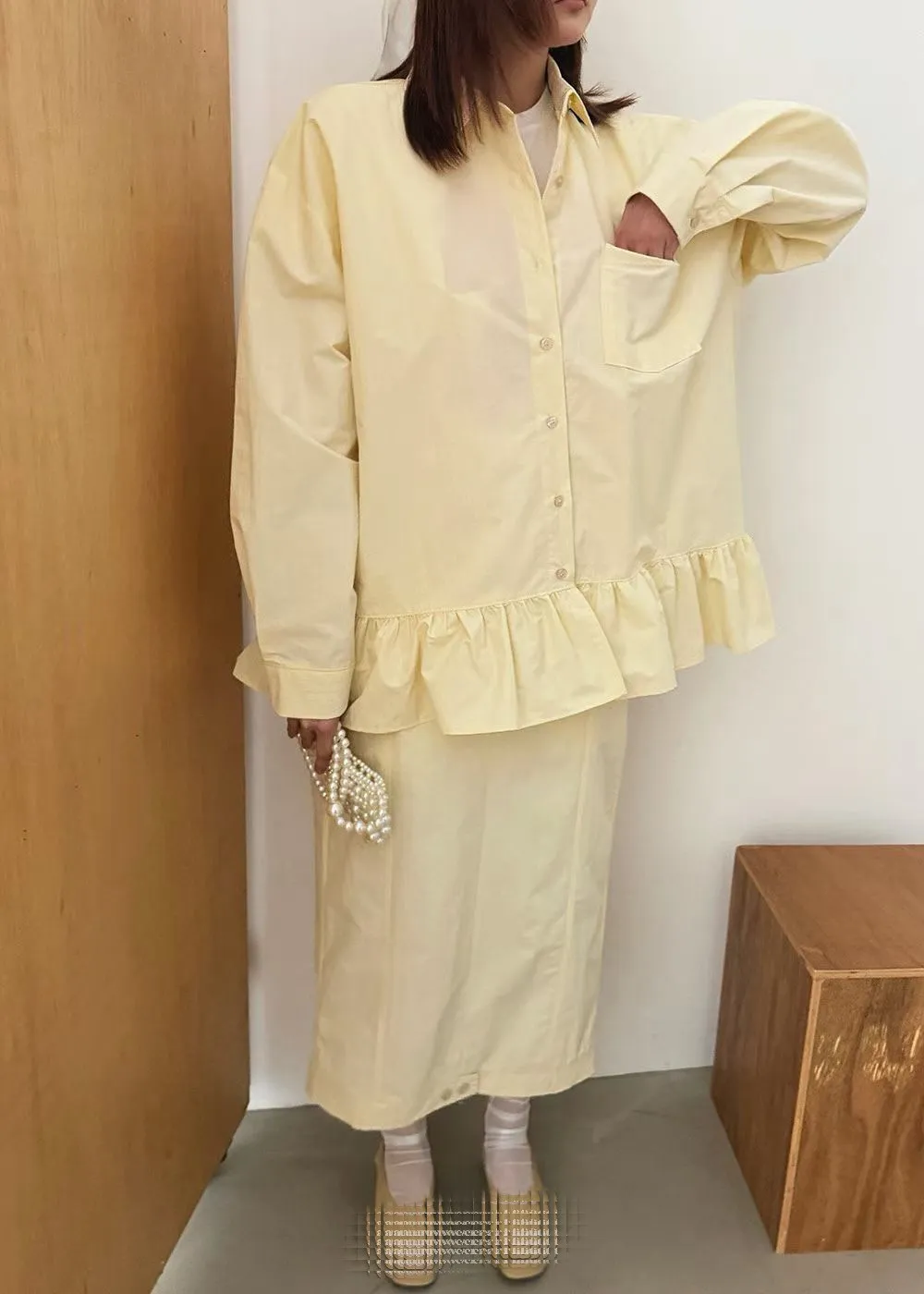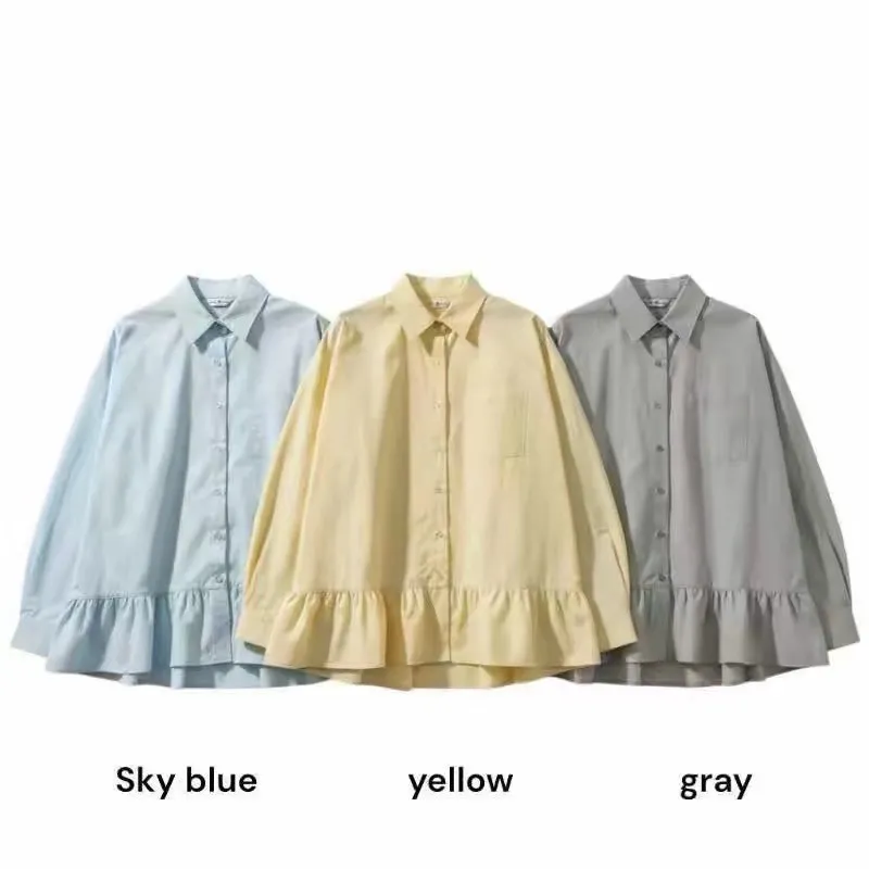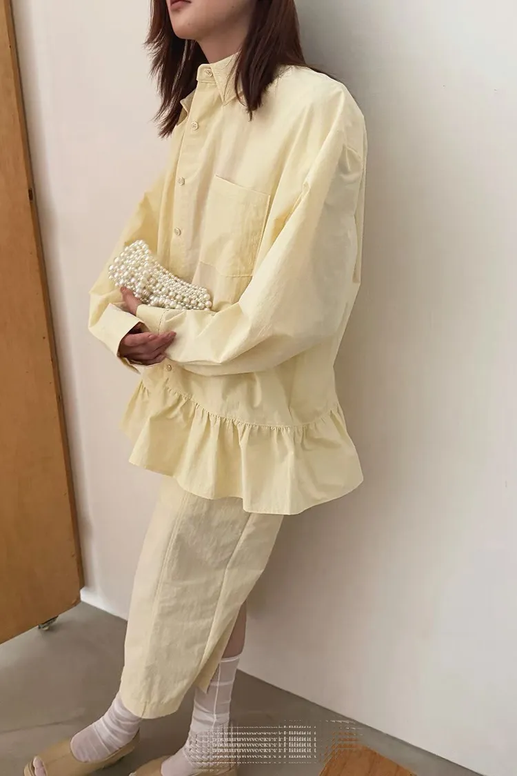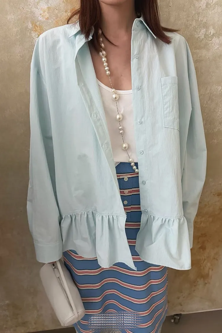 花苞下擺糖果色襯衫