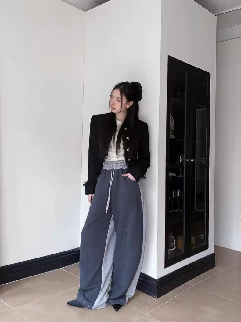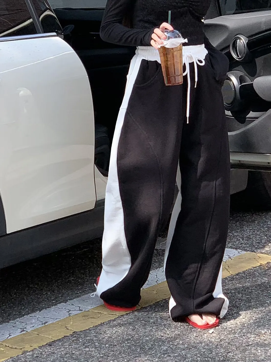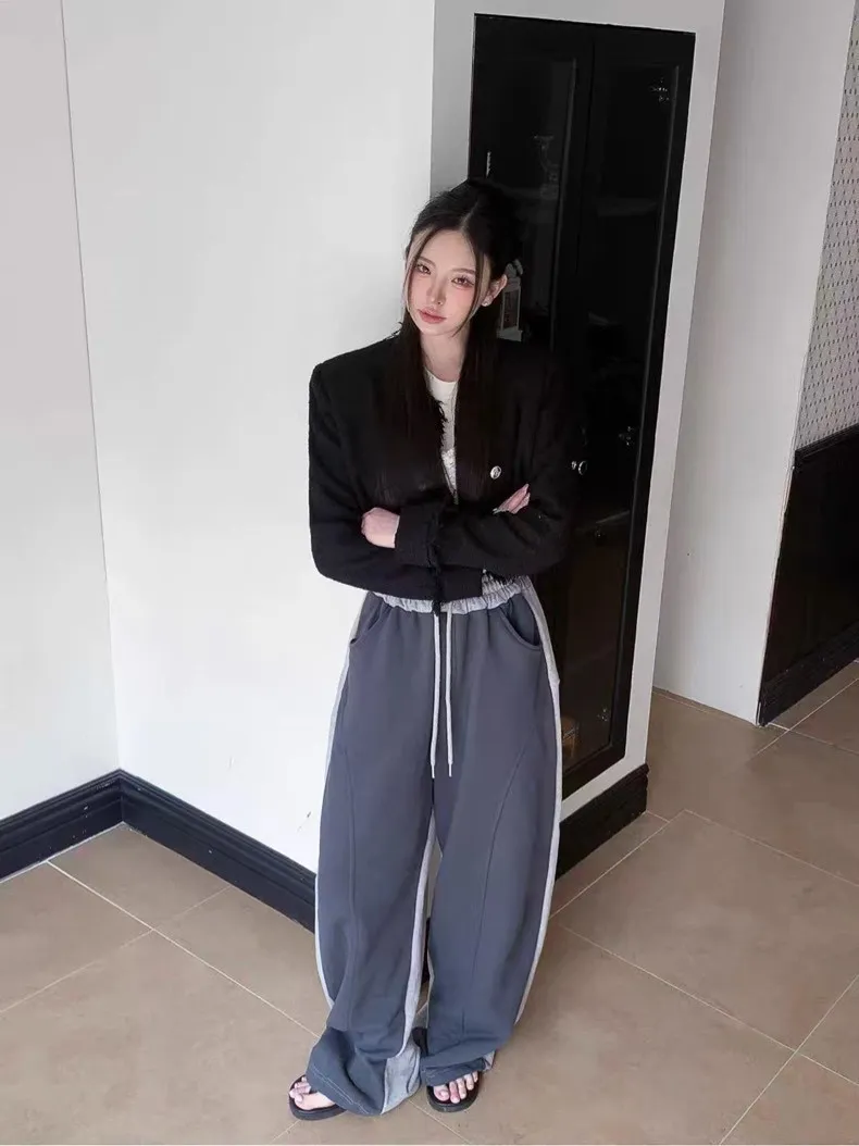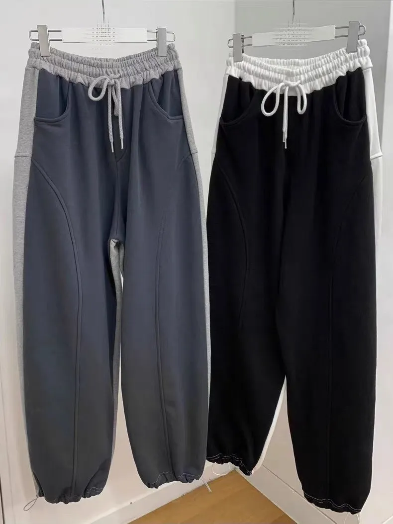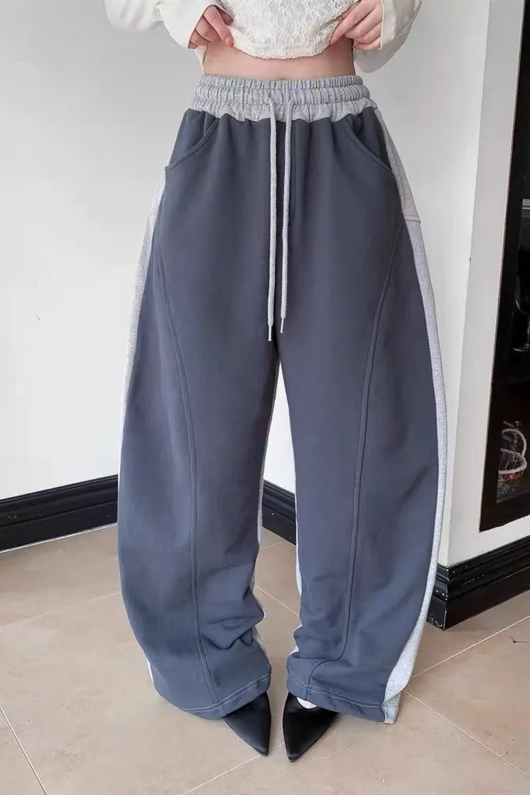 顯瘦配色彎刀棉褲